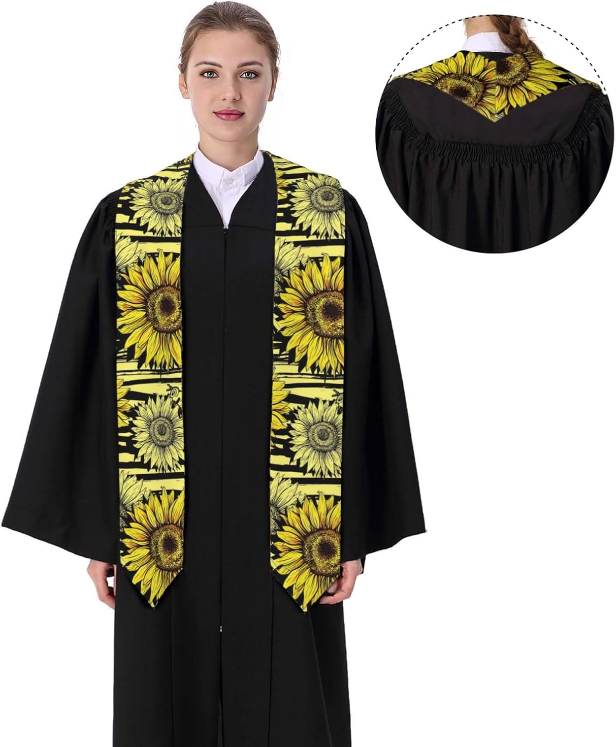 Stola per laurea con stampa di api e girasole, unisex, per adulti, tinta unita, con angoli affilati, taglia unica, Angolo acuto, taglia unica