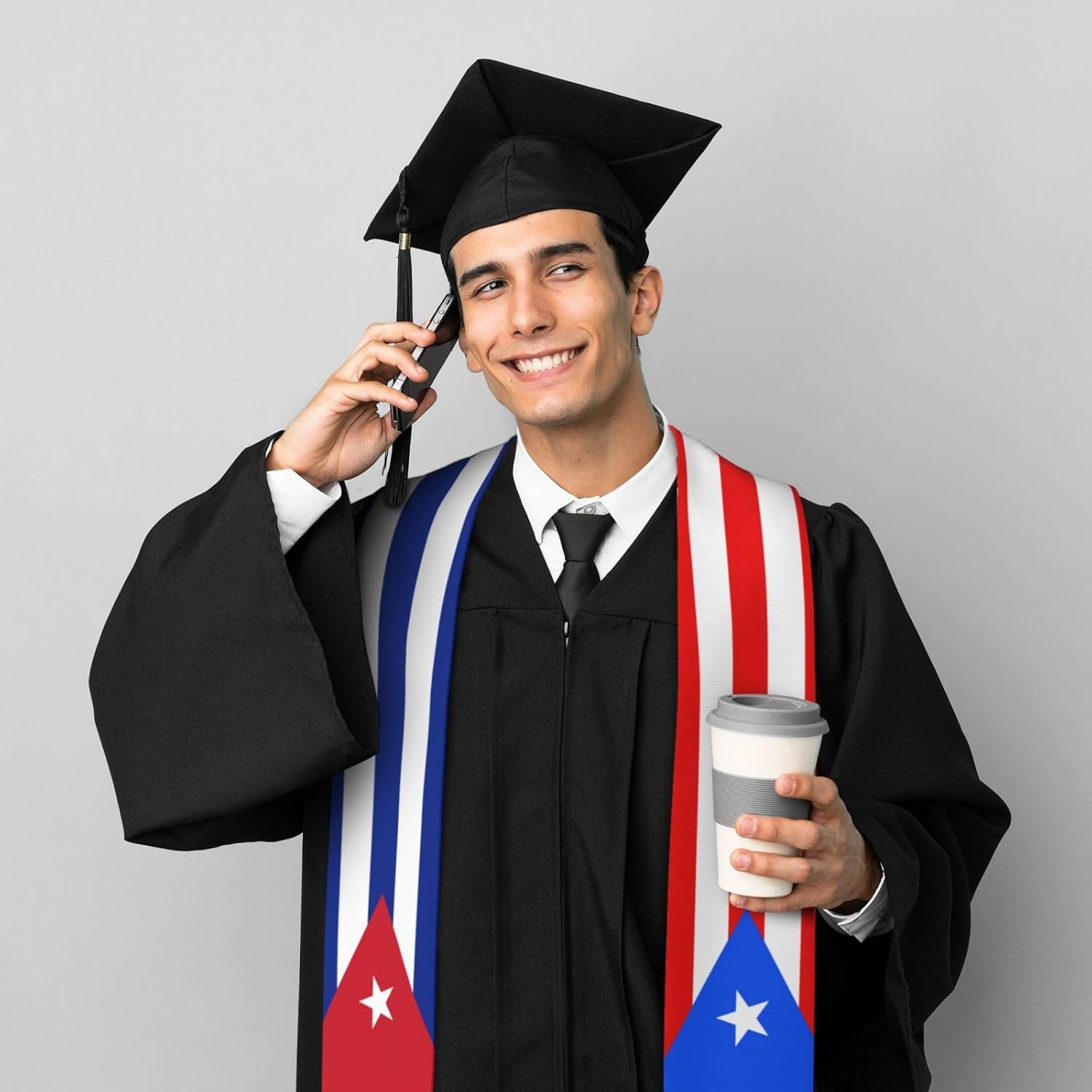 Una fascia di laurea, nota anche come stola, è un indumento decorativo indossato drappeggiato sulle spalle durante le cerimonie di laurea. In genere, completa il tocco e la toga e ha un significato simbolico o celebrativo. Caratteristiche principali: Forma e vestibilità: una lunga e stretta striscia di tessuto che cade sulle spalle con entrambe le estremità che cadono uniformemente sul davanti. È un regalo ideale per compagni di classe e studenti laureandi, adatto a studenti delle scuole medie e superiori, laureati, laureati magistrali e dottorandi, e adatto sia a uomini che a donne, ragazzi e ragazze.
