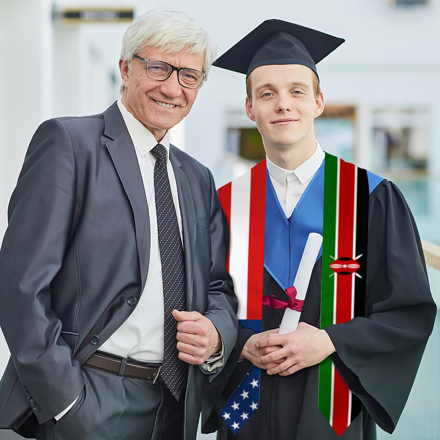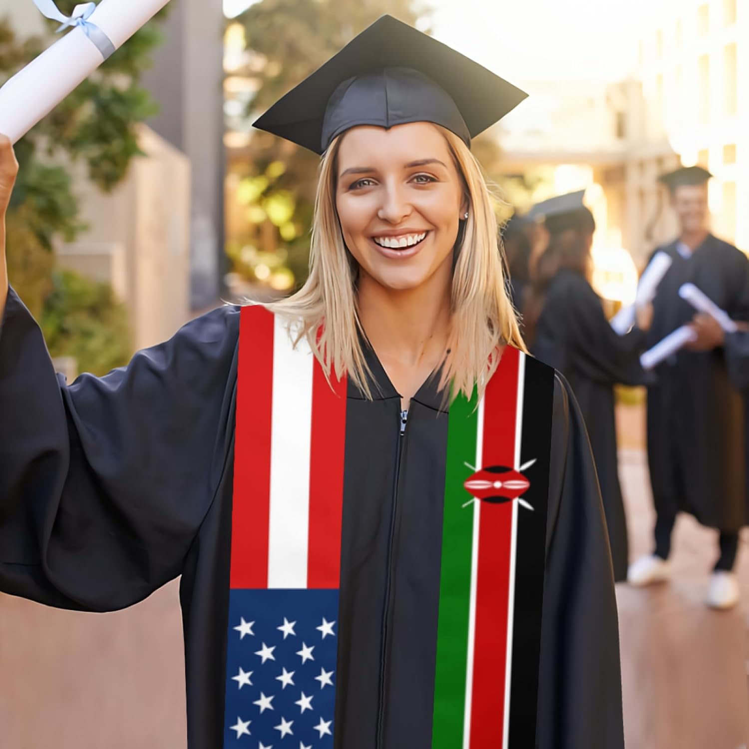 Una fascia di laurea, nota anche come stola, è un indumento decorativo indossato drappeggiato sulle spalle durante le cerimonie di laurea. In genere, completa il tocco e la toga e ha un significato simbolico o celebrativo. Caratteristiche principali: Forma e vestibilità: una lunga e stretta striscia di tessuto che cade sulle spalle con entrambe le estremità che cadono uniformemente sul davanti. È un regalo ideale per compagni di classe e studenti laureandi, adatto a studenti delle scuole medie e superiori, laureati, laureati magistrali e dottorandi, e adatto sia a uomini che a donne, ragazzi e ragazze.