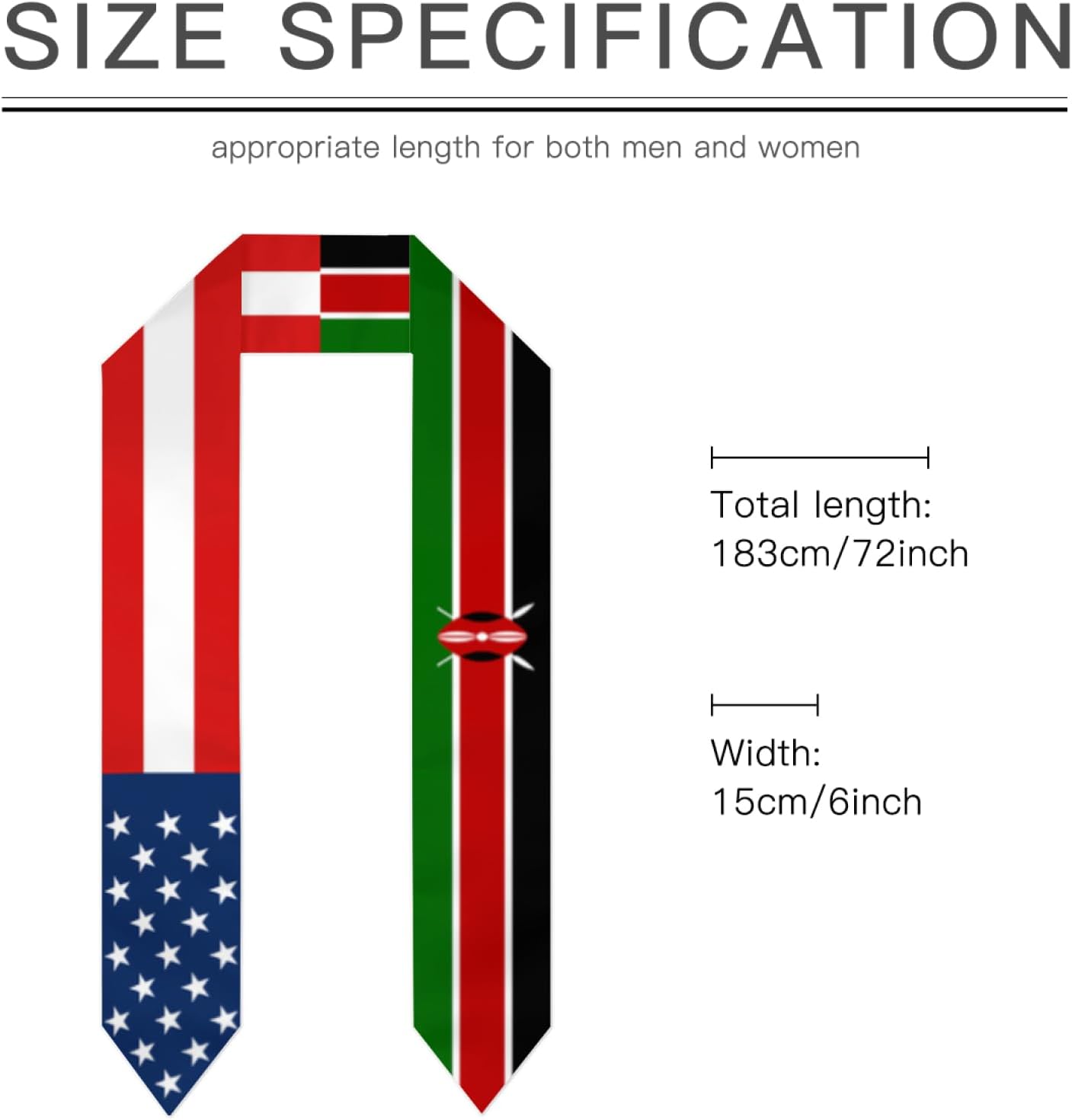 Stole di laurea stampate per studenti internazionali, USA e Colombia, lunghezza 72"