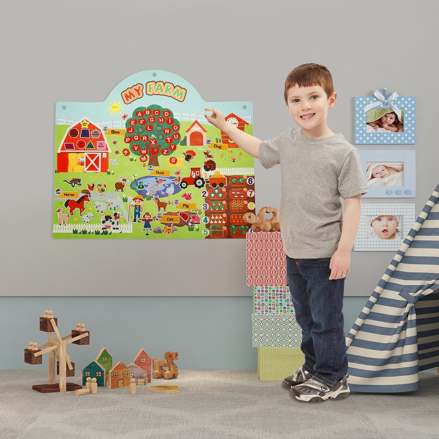 Pratica creatività: ravviva la tua creatività ed esplora nuovi orizzonti con il nostro set di storie di tavoli da feltro. Crea e interpreta varie storie agricole con una varietà di figure e oggetti di scena degli animali per promuovere la tua immaginazione e la tua creatività, per cui è in attesa una di storie Migliorare le tue capacità di narrazione: le nostre storie di storie di tavoli da feltro promuovono l'interazione, la comunicazione e la cooperazione tra famiglia e amici, mentre crei ed esegui storie eccitanti, perfette per coloro che vogliono sviluppare i tuoi talenti narrativi Sicuro e morbido: questo set di storie realizzati con set di feltro di alta qualità garantisce un gioco sicuro e morbido che né irrita né in modo che i bambini possano divertirsi a proprio agio Uso ampio: con le nostre storie di panel di feltro, tuo figlio migliora le sue prime capacità di lettura e scrittura attraverso storie eccitanti, giochi divertenti e impatto per contare e riconoscere i colori. È per l'educazione prescolare ed è versatile, il che lo rende una scelta ideale per genitori e insegnanti Strumento di apprendimento interattivo: con le nostre storie di panel di feltro ambientate in formato 81 68,5 cm, i bambini possono imparare qualcosa su animali da fattoria, numeri e ambienti. Incoraggiali ad immergersi in un mondo di apprendimento nella fattoria che è sia divertente che istruttivo. Lascia che acquisiscano conoscenza con il nostro affascinante panel di feltro e capisca i miracoli della vita contadina