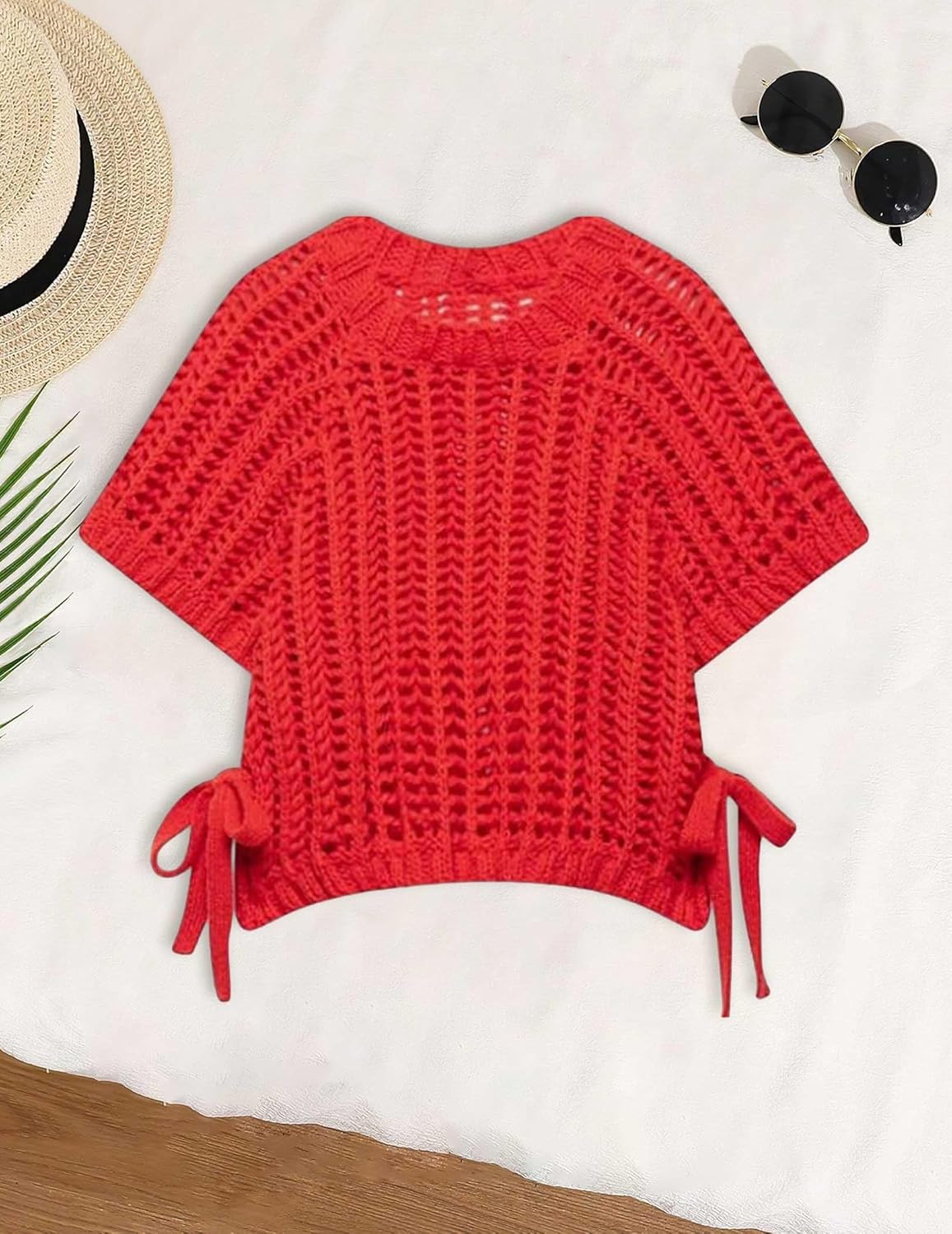 Stradata in Prua con Giubbotto per Maglione a Filo a cortola Sciolta a Corto di Maglia Autunno (Rosso m) (M Rosso)