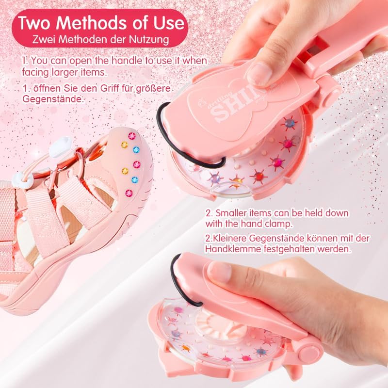 Materiale plastico ecologico: la trecciatrice è realizzata in materiale plastico ecologico, che può essere riutilizzato, riducendo i costi di utilizzo a lungo termine, è una scelta conveniente ed ecologica, garantendo la praticità del prodotto. Leggera e portatile: la macchina per strass per capelli è progettata per essere leggera, pesa solo 78 g, con dimensioni di 21 cm di lunghezza e 9,5 cm di larghezza, rendendola facile da trasportare, non importa dove ti trovi, puoi facilmente iniziare la tua creatività. Sostituibile fai-da-te: la colla sugli strass per capelli viene fornita con 24 tavolette e un totale di 360 diamanti, la quantità è sufficiente e i disegni sono vari, garantendo che le tue idee fai-da-te possano essere perfettamente realizzate e possano essere facilmente sostituite dopo l'uso. Installazione semplice: il meccanismo di pressione con un clic della macchina per strass può fissare i diamanti senza attrezzi, il che migliora notevolmente l'esperienza dell'utente, anche i principianti possono facilmente iniziare e completare rapidamente la decorazione. Ampia gamma di usi: lo styler per capelli con diamante è adatto per custodie di telefoni cellulari, laptop, abbigliamento, scarpe e cappelli, ecc., Che si tratti di un hobby personale o di una produzione professionale, può soddisfare le tue diverse esigenze.