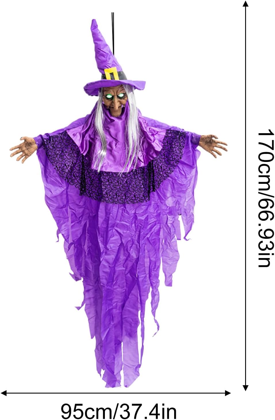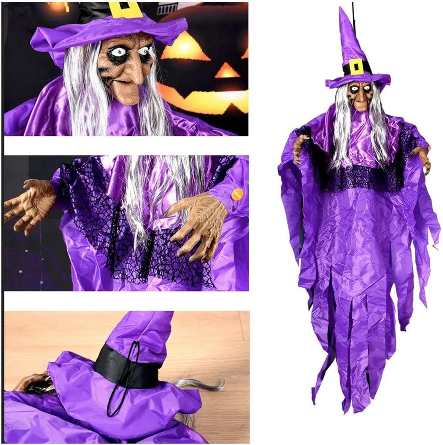 Punto di forza: la decorazione della strega dal design artistico arricchisce il tema di Halloween con una lavorazione magistrale e diventa un punto focale stagionale in qualsiasi composizione decorativa L'umore è garantito: la funzione vocale dinamica e l'intensa illuminazione degli occhi della strega di Halloween creano un'interazione coinvolgente – l'animatronica moderna garantisce facilmente feste coinvolgenti con un inconfondibile fascino spaventoso Decorazione riutilizzabile: grazie al materiale resistente ai raggi UV, il colore non sbiadisce. Facile da pulire e salvaspazio. Ogni anno crea un'atmosfera affascinante di Halloween per la casa e il giardino. Ampie possibilità di utilizzo: come attrazione principale decorativa, la statuetta della strega trasforma qualsiasi spazio esterno in uno scenario spaventoso. Perfetto per la decorazione di Halloween in giardini, terrazze o come parte di case infestate. Decorazione di Halloween ottimizzata: dotata di occhi verdi brillanti, questa strega appesa garantisce un effetto accattivante e terrificante e spaventoso, si integra perfettamente in ambienti interni ed esterni e crea autentici momenti di terrore di Halloween con poca luce.