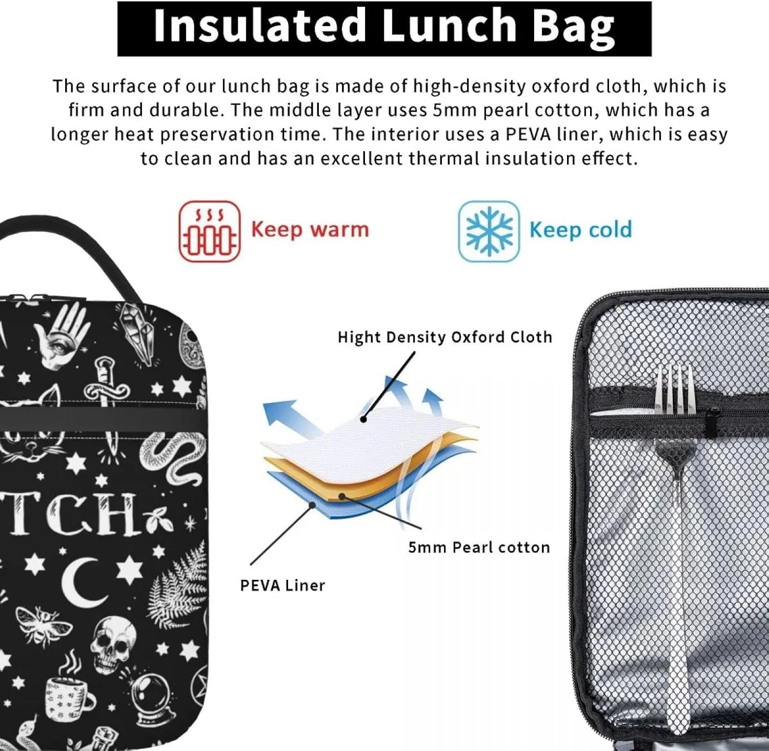 Strega Modello Isolato Pranzo Tote Bag per Le Donne Halloween Occulto Gotico Magia Resuable Termico Cooler Bento Box Bambini Scuola