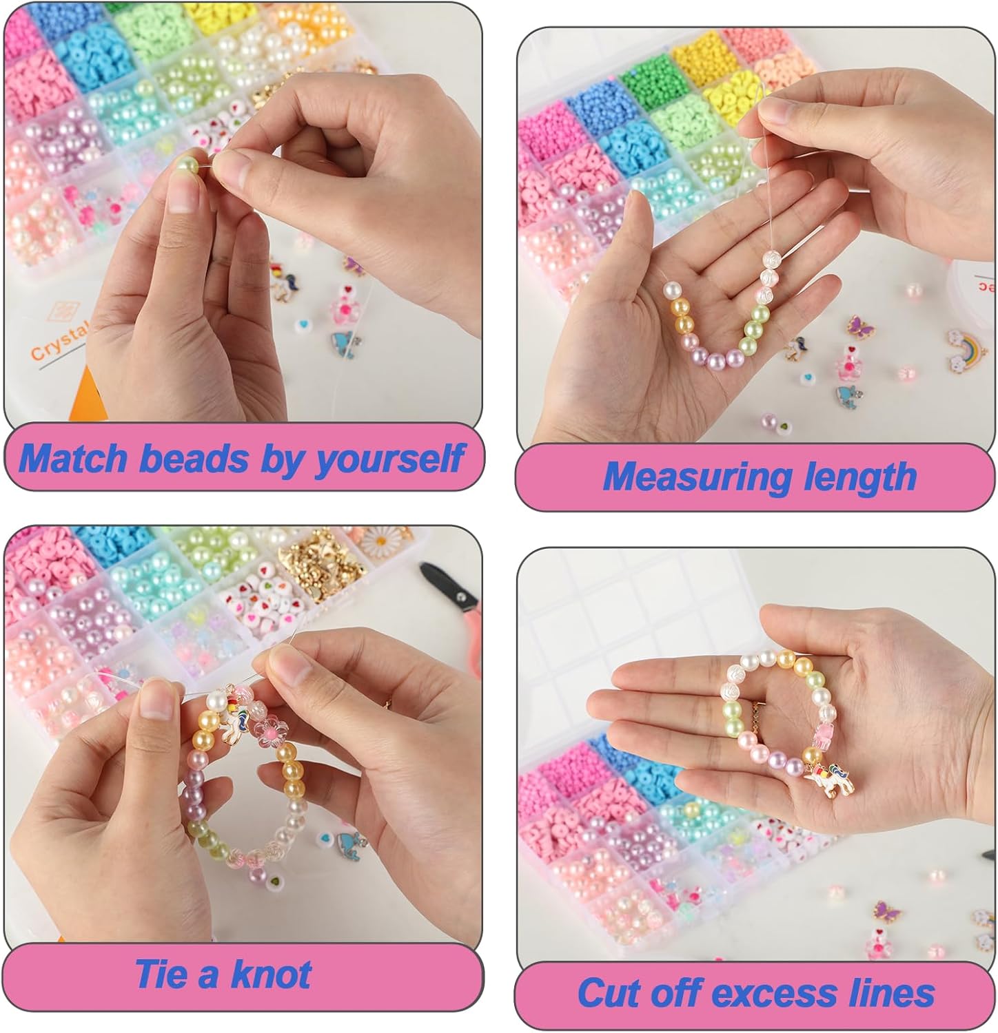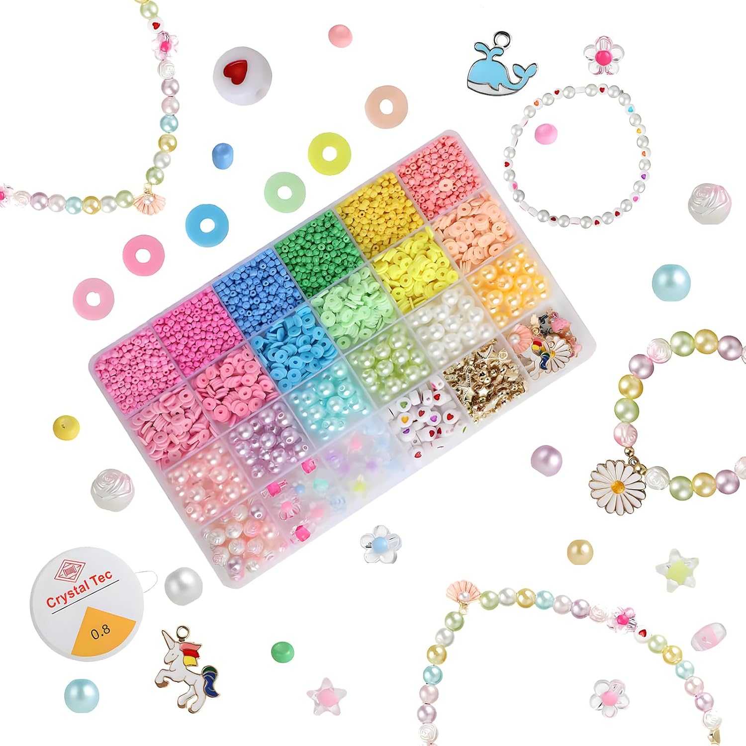 【Perline e ciondoli vari per creare senza limiti】: Il set contiene oltre 500 perline colorate e 12 simpatici ciondoli tra unicorni, sirene e cuori – perfetto per creare braccialetti, collane e fasce personalizzate. 【Materiali sicuri e a misura di bambino】:Tutte le perline sono realizzate in resina e lega di alta qualità, lisce, non tossiche e resistenti – ideali per bambine dai 4 anni in su. 【Stimola creatività e abilità motorie】: Filare e combinare perline e colori aiuta a sviluppare la motricità fine, il riconoscimento dei colori, la pazienza e il senso estetico in modo divertente. 【Divertimento genitore-figlio】:Genitori e figli possono creare insieme braccialetti e collane, rafforzando il legame e condividendo momenti preziosi. 【Regalo perfetto per le bambine】:Confezionato in una graziosa scatola con scomparti, ideale per compleanni, Natale o come sorpresa creativa per le bambine.