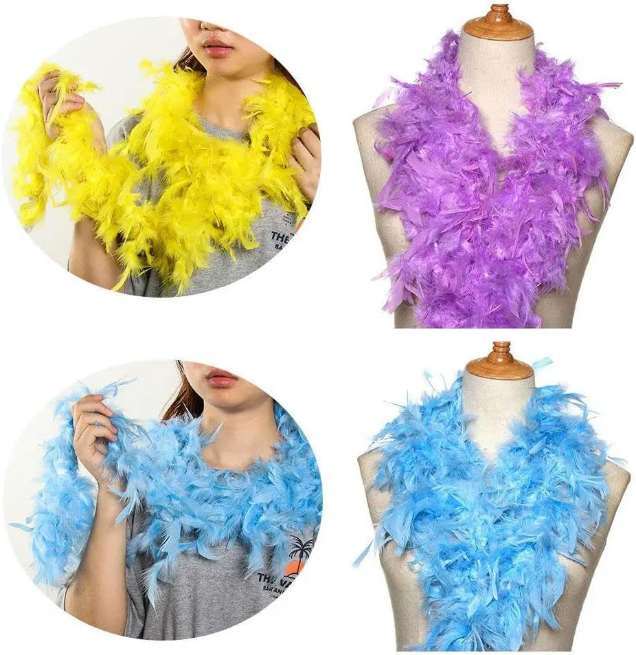 Alta qualità: il boa di piume è realizzato in soffice piuma di alta qualità. È cucito con vere piume naturali. Il nostro boa di piume non causerà danni a persone e animali. Lunghezza adatta: queste sciarpe di piume di alta qualità sono lunghe 2 metri e sono perfette da avvolgere intorno alle spalle o da attaccare ai vestiti quando si esce di notte per creare costumi o per scattare foto accattivanti. Occasione: questa sciarpa di piume è la scelta migliore per travestimenti da festa, spettacoli teatrali o servizi fotografici o altre occasioni speciali che ti rendono più lusinghiero Multiuso: sono perfetti per feste, matrimoni, Halloween, Natale, compleanni. Sono anche un'ottima scelta per spettacoli di danza sul palco, decorazioni per sfilate di carnevale, celebrazioni di Martedì Grasso, servizi fotografici, balli di fine anno e molto altro ancora! Istruzioni per la cura: quando ricevi questa piuma di boa, ti consigliamo di aprire la confezione all'aperto per rimuovere le piume in eccesso formatesi durante la lavorazione e la spedizione. Appendere la boa Chandelle per 3-4 ore e più, meglio se al sole, la aiuterà a rivitalizzarsi e a ritrovare la sua sofficità.