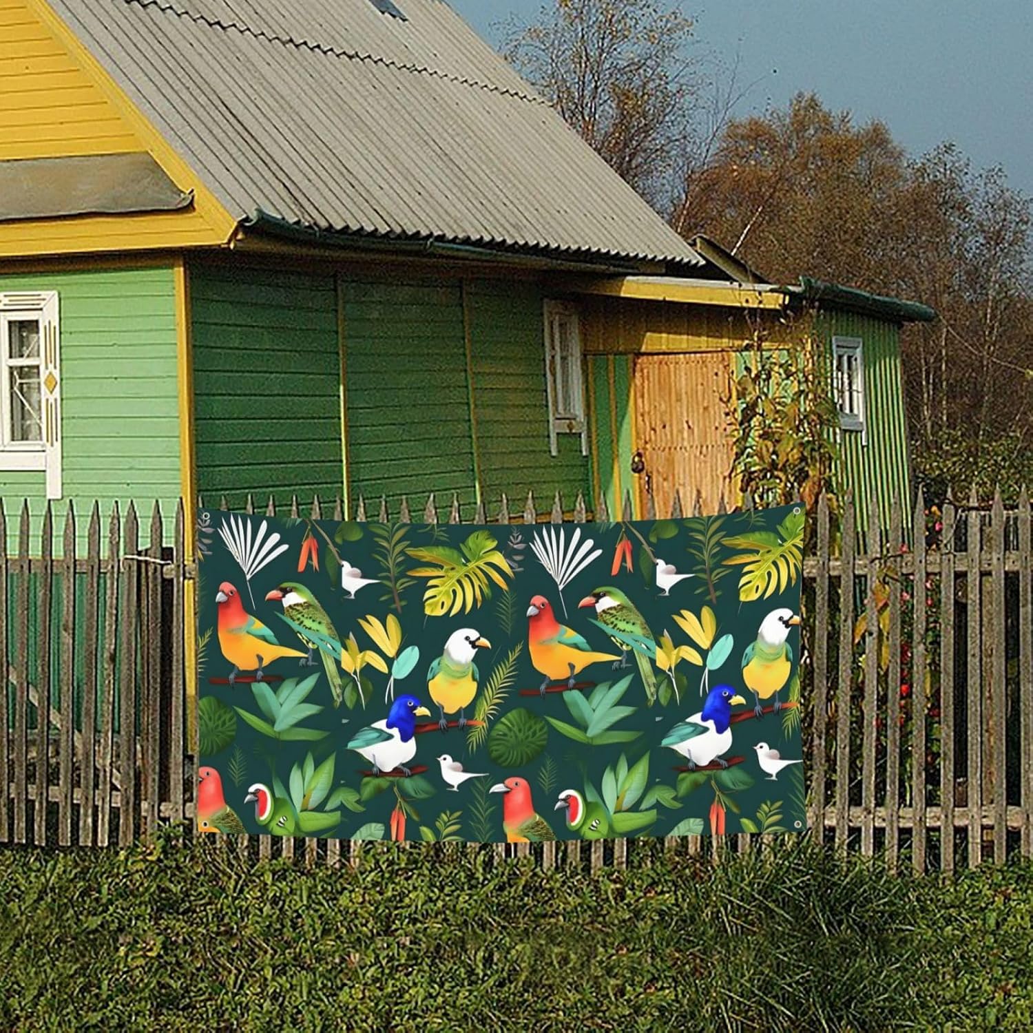 Con le sue dimensioni soddisfacenti di 90 x 180 cm, questo striscione funge da decorazione per varie feste. Set completo: ogni set include uno striscione per festival con un diametro di 1,2 cm fori rotondi ad ogni angolo, garantendo una installazione facile e sicura. Stampa su un solo lato: il nostro striscione vivace e accattivante presenta una stampa su un solo lato, che lo rende perfetto per decorazioni per feste. Illumina il tuo incontro con questi vivaci striscioni. Materiale: realizzato in poliestere robusto, questo striscione per feste con stampa di uccelli tropicali e foglie di piante è progettato per resistere ai raggi UV e allo sbiadimento. Nonostante l'uso a lungo termine, i colori vivaci rimangono luminosi e vivaci, promettendo longevità. Installazione conveniente: con fori rotondi in metallo su tutti e quattro gli angoli, questo banner offre una facile installazione. Basta legare una corda attraverso questi fori e puoi appendere lo striscione ovunque tu voglia, portando un'atmosfera gioiosa del festival ovunque. Applicazione versatile: perfetto per varie occasioni, tra cui Halloween, Natale, feste notturne e riunioni amichevoli. Può essere appeso su barche, auto, giardini, bar e molto altro ancora, creando un'atmosfera romantica per le tue celebrazioni festive.