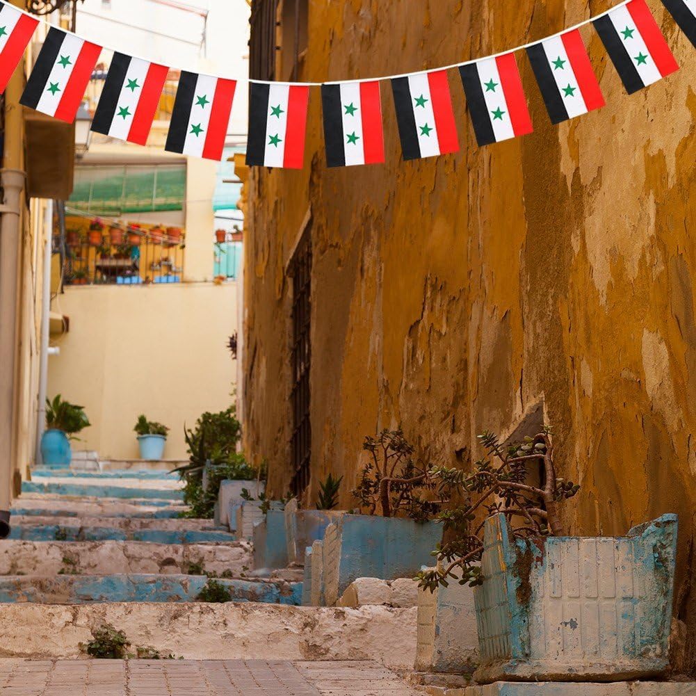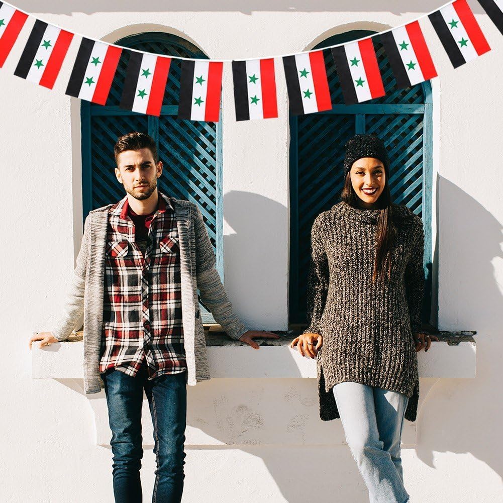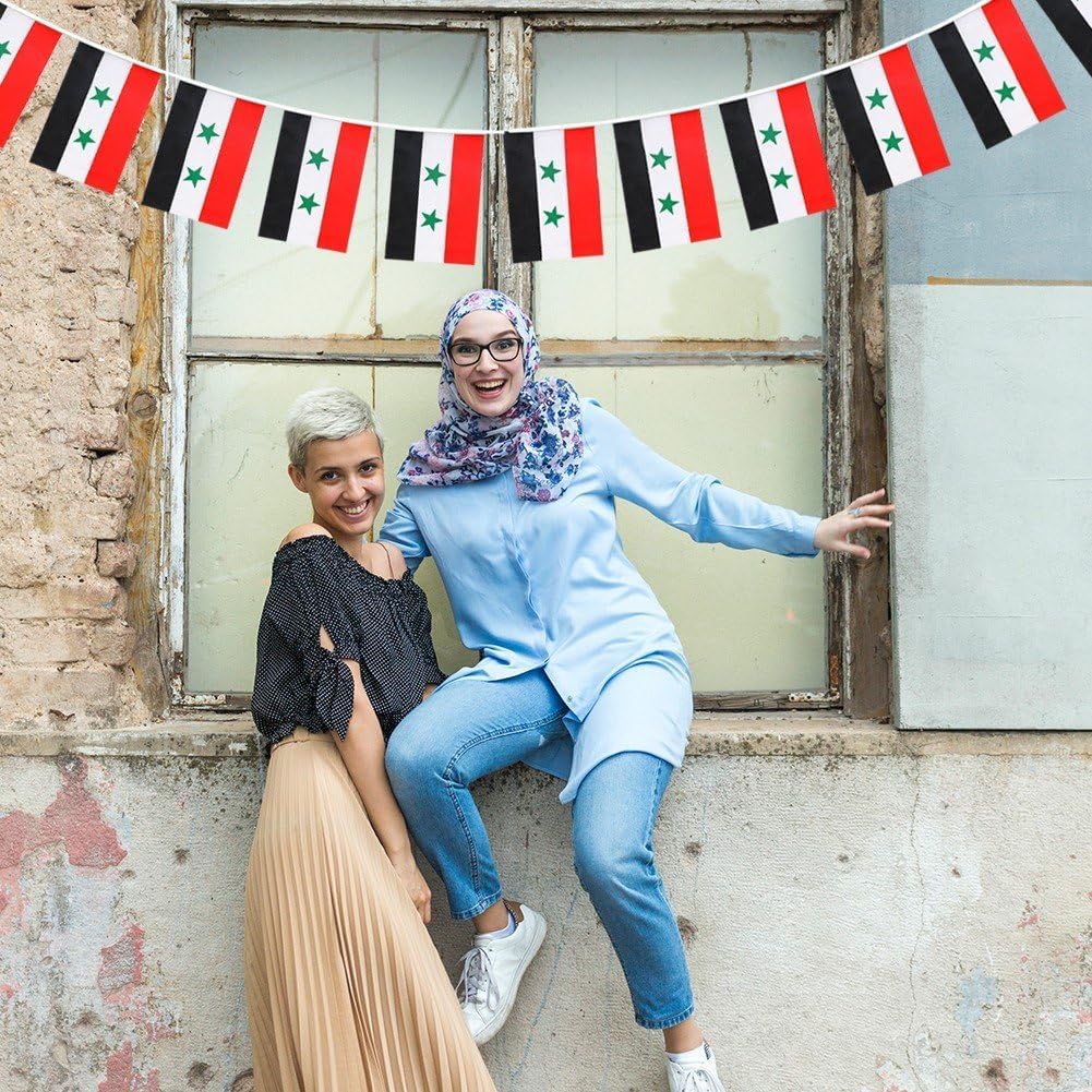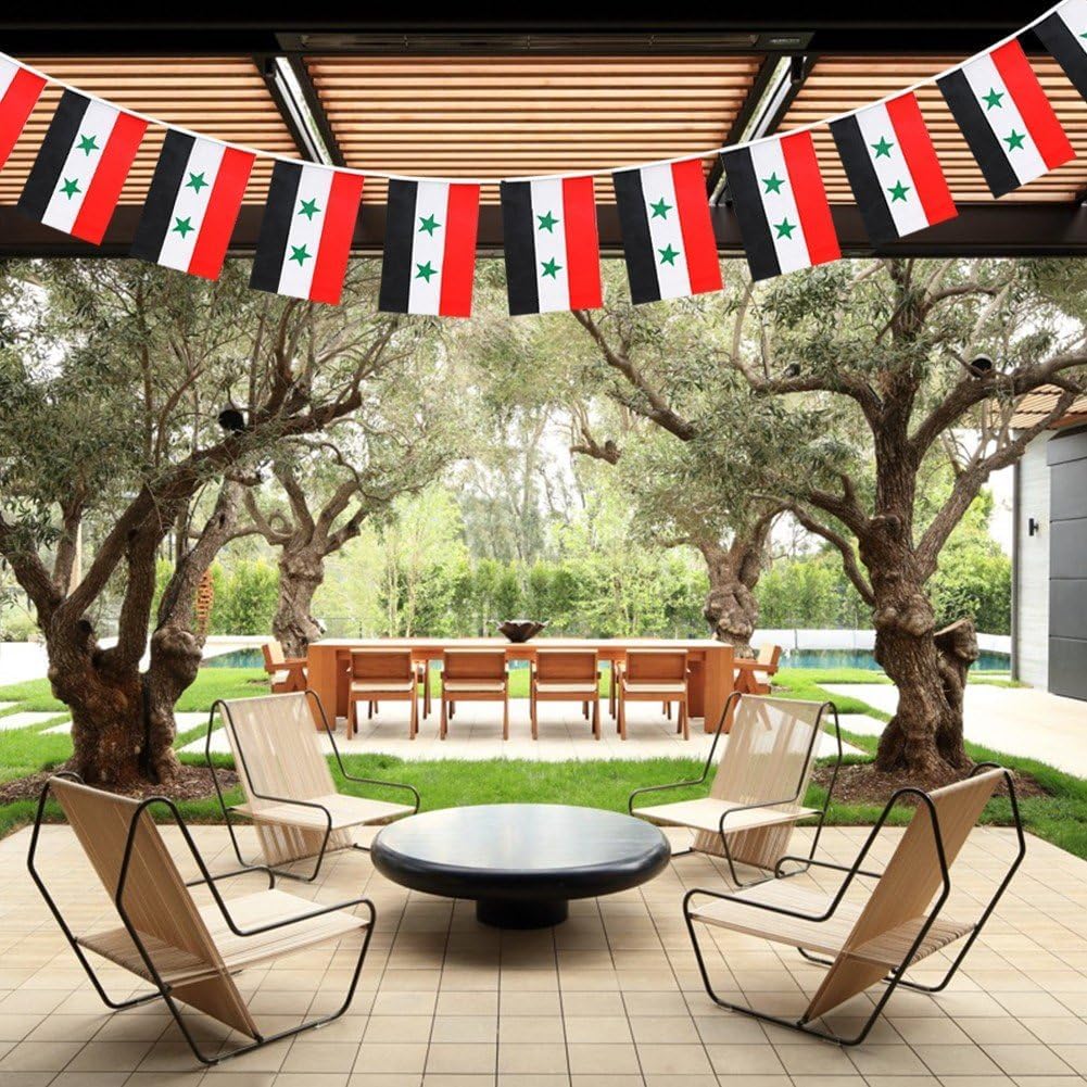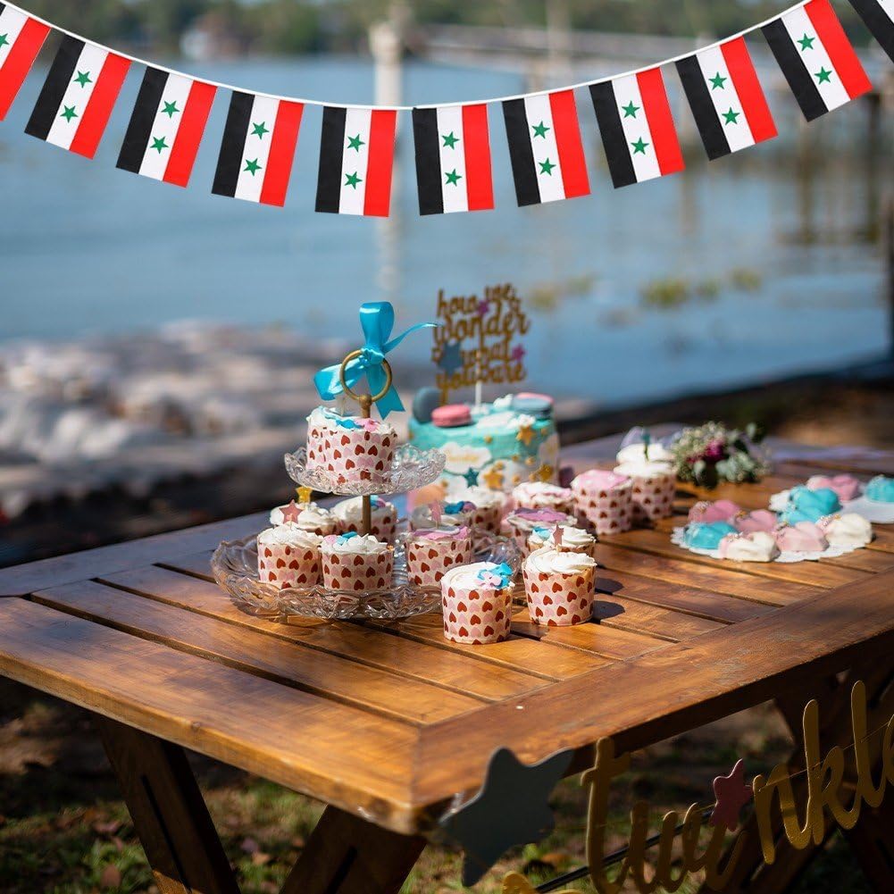 Come usare: Può soddisfare le tue esigenze di decorazione di feste su larga scala. Tante decorazioni: puoi appendere gli striscioni su tende, pareti, tavoli per feste, finestre o archi. Stringili su recinzioni e alberi in giorni speciali, aggiungi gioia alla tua festa. Illumina il giardino: lunghezza: 196,85 pollici/5 m. Ogni banner misura circa 5,51*8,27 pollici/14x21 cm. Attenzione ai dettagli: adatto per interni, esterni, riunioni, attività a tema, eventi sportivi, ecc. Resistente al colore impermeabile: gli stendardi sono realizzati in tessuto di tipo impermeabile, durevole e durevole. Queste bandierine non sbiadiscono, resistono bene al vento e alla pioggia.