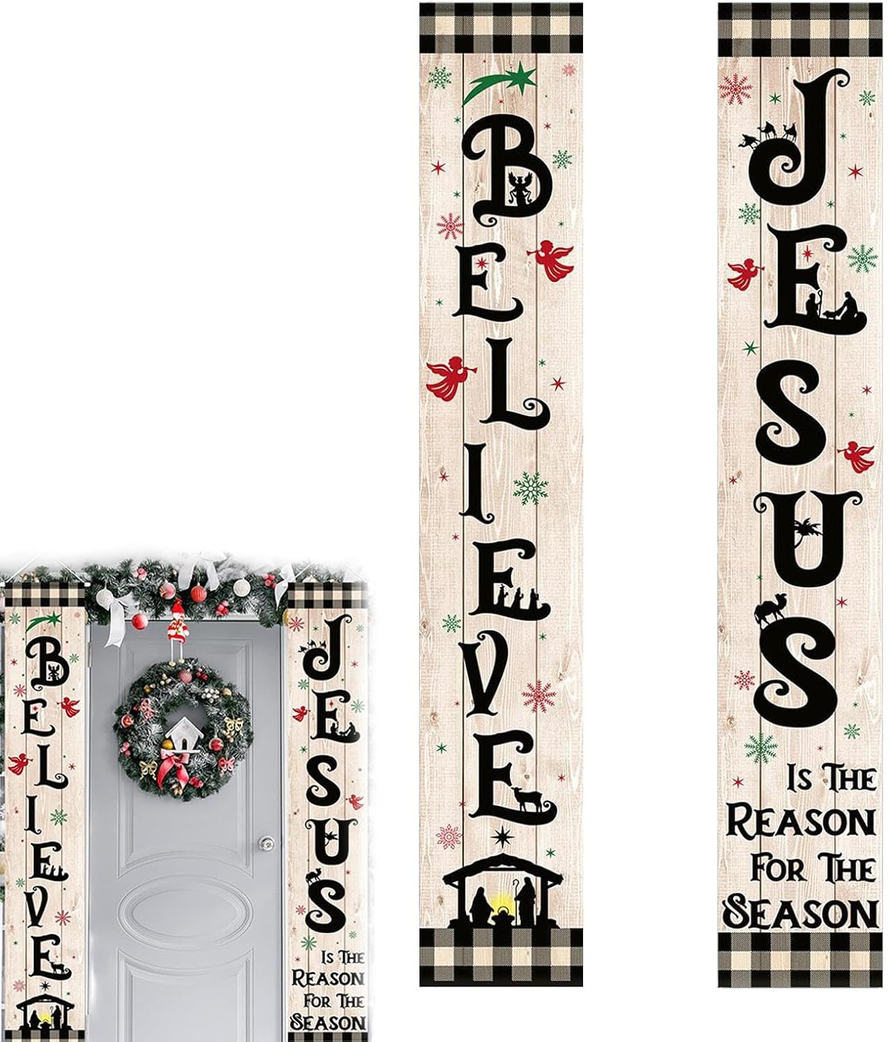 Cattura l'attenzione: decora il tuo spazio esterno con questo striscione per asilo nido all'aperto. Il plaid di bufalo bianco e nero si abbina perfettamente con un bellissimo tema di Gesù, creando un display accattivante e attraente che attirerà l'attenzione di tutti. Ampia applicazione: migliora le celebrazioni nel tuo quartiere esponendo lo striscione della cameretta all'aperto in vari luoghi, tra cui porte d'ingresso, porte di garage, ingressi, giardini, cortili e ingressi. Forte e affidabile: decorato con una scena della Natività, questo striscione per esterni è realizzato in affidabile tessuto di poliestere che resiste allo sbiadimento, fornendo decorazioni accattivanti che durano. Facile da installare: assicurati che il tuo striscione per presepe per esterni rimanga in posizione verticale nella brezza e sia facile da installare. Infila la corda attraverso i fori e legala a un oggetto pesante per un'esposizione sicura. Artigianato: questo stendardo per presepe all'aperto, realizzato con pregevole fattura e colori vivaci, presenta dettagli che migliorano magnificamente l'arredamento delle tue vacanze.
