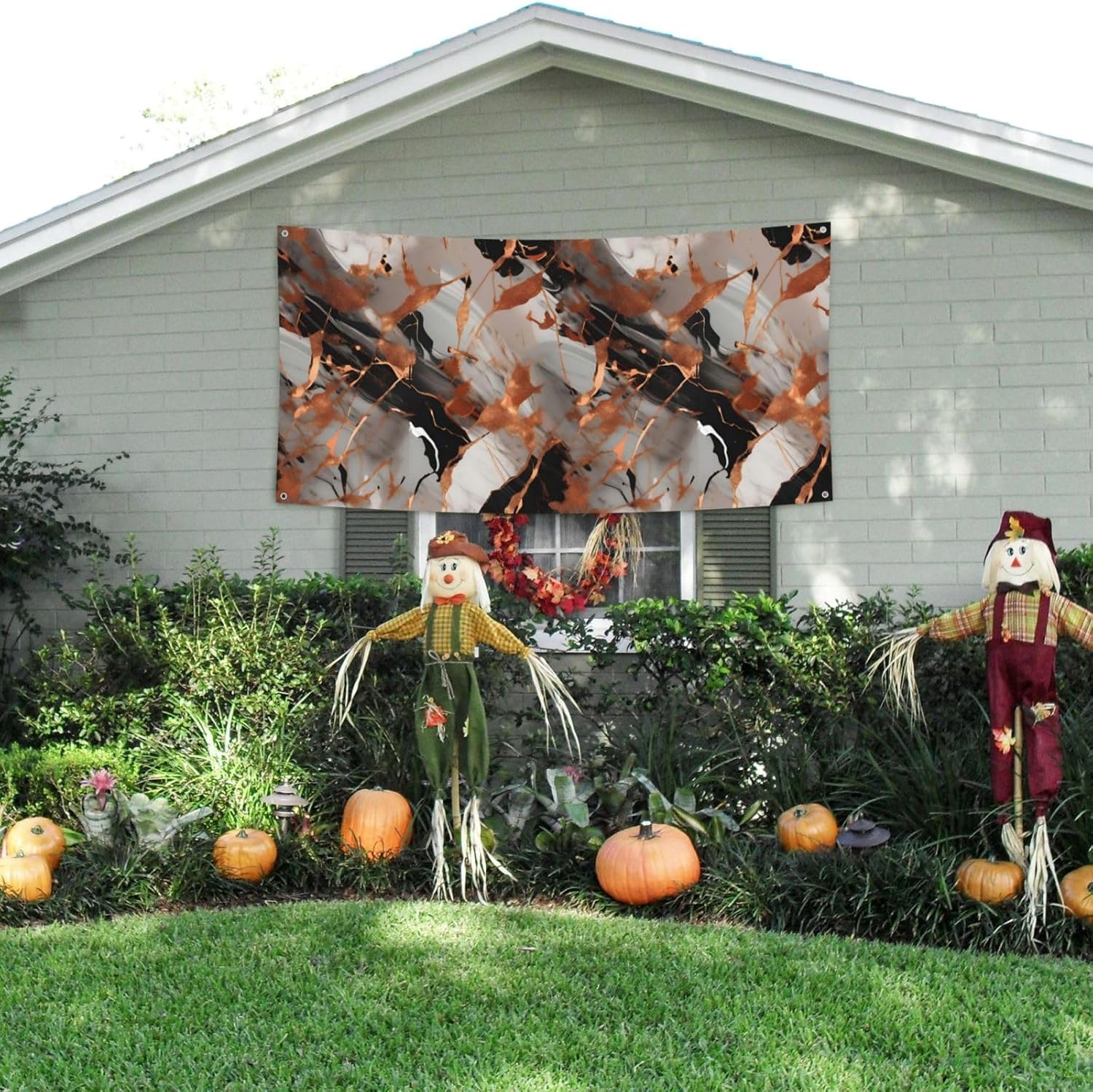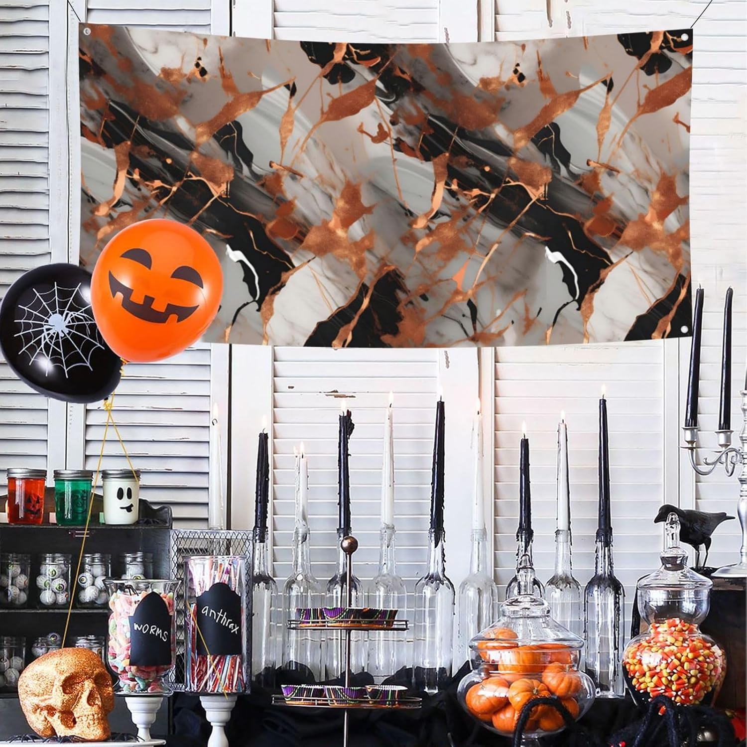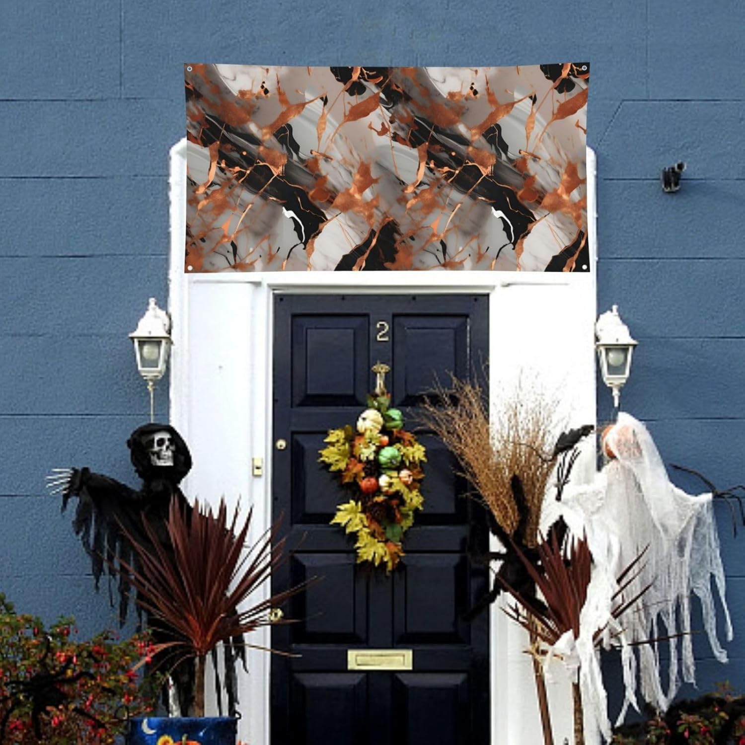 Dimensioni perfette: misura 90 x 180 cm, lo striscione in rame con texture in marmo è abbastanza grande per fare una dichiarazione, diventando una parte chiave delle decorazioni per feste, migliorando l'atmosfera della festa. Materiale: realizzati in poliestere, i nostri striscioni per feste in rame con texture marmorizzata non sono solo resistenti ai raggi UV, ma anche resistenti allo sbiadimento, garantendo colori vivaci e vivaci anche dopo un uso prolungato. Facile installazione: progettato con comodi occhielli metallici ad ogni angolo, basta un pezzo di corda per appenderlo ovunque tu voglia, aiutandoti a immergerti nelle vibrazioni festive senza sforzo. Ampia applicabilità: varie occasioni come Halloween, Natale, feste notturne, riunioni di amici e molto altro ancora. Può essere appeso su barche, auto, giardini, bar, rendendo memorabile ogni celebrazione. Contenuto della confezione: la nostra confezione include 1 striscione di Halloween con 4 fori circolari di 1,2 cm di diametro ciascuno agli angoli.