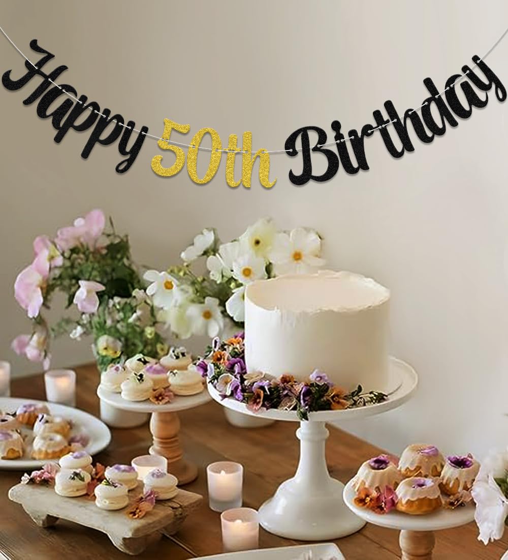 Striscione Happy 50th Birthday: perfetto per la decorazione della festa di compleanno. Per attirare l'attenzione, per la tua festa, crea un'atmosfera allegra. Adatto per: compleanno, anniversario, ecc. Decorazioni per feste per attirare l'attenzione, per la tua festa, creare un'atmosfera allegra. È un accessorio essenziale per la tua festa di compleanno. Rendi la tua festa una sorpresa perfetta. Viene utilizzato nella produzione di cartone alimentare e di alta qualità. Cartella colori di alta qualità, extra spessa ed ecologica. Qualità premium fatta a mano: ogni produzione che vendiamo è fatta a mano, assemblata a mano e controllata fisicamente da noi, impegnata a fornirti prodotti di qualità. Unisciti alla tua lista della spesa. Se riscontri problemi, contatta il nostro team e li risolveremo per te. Divertiti a fare shopping. Lascia che questo speciale e grazioso striscione sventoli la bandiera per perfezionare la tua celebrazione annuale. »