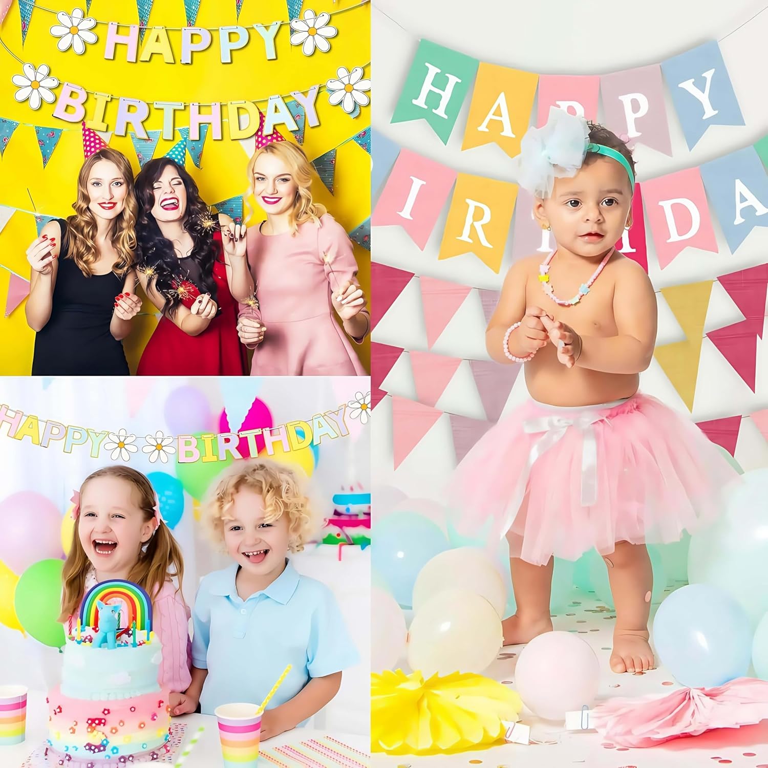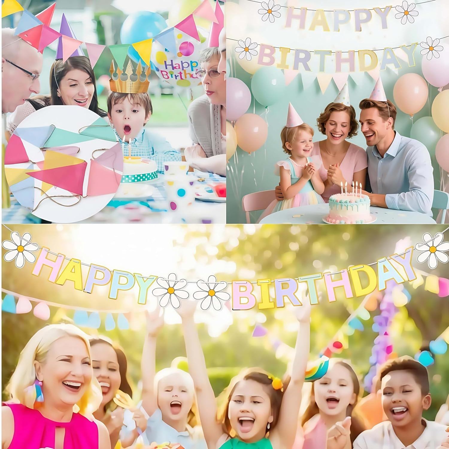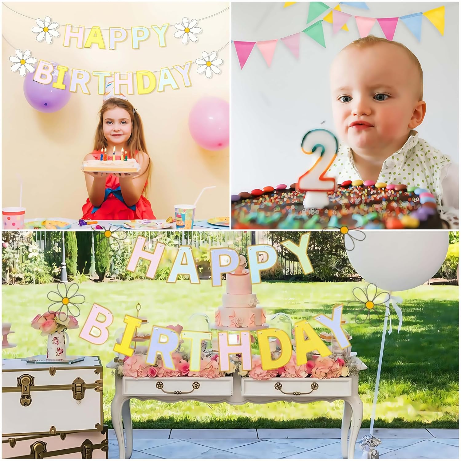 Set di 3 striscioni di compleanno: riceverai 1 striscione di buon compleanno (lettere: 13 x 17,8 cm) + 2 corde di bandiere triangolari colorate (ogni bandiera: 12,4 x 17 cm, 3 m di lunghezza per corda) - 3 pezzi in totale. Non sono necessari acquisti aggiuntivi; copre tutte le tue esigenze di decorazione di compleanno di base contemporaneamente. Facile da appendere e riporre: viene fornito con corde attaccate per appenderlo direttamente, nessun assemblaggio complesso! Regola liberamente lo spazio tra le bandiere per adattarlo al tuo spazio (ad esempio, pareti, porte). Dopo l'uso, piegalo in modo compatto per riporlo; risparmia spazio e rimane pronto per la tua prossima celebrazione. Design pastello macaron e margherita: presenta morbidi colori pastello macaron con graziosi accenti margherite, creando un'atmosfera calda e allegra. Perfetto per bambini, ragazze, donne e feste di compleanno per adulti: migliora istantaneamente l'aspetto della tua casa, giardino o sfondo per feste. Tessuto di alta qualità: resistente e impermeabile all'esterno: realizzato in tessuto di alta qualità, è robusto, resistente agli strappi e allo sbiadimento. Versatile per tutte le occasioni: ideale per decorare pareti, tavoli da dessert o come sfondo fotografico. Adatto per feste di compleanno, baby shower, anniversari e scene interne (casa/camino) e all'aperto (giardino) - aggiunge gioia ed eleganza a ogni momento speciale.