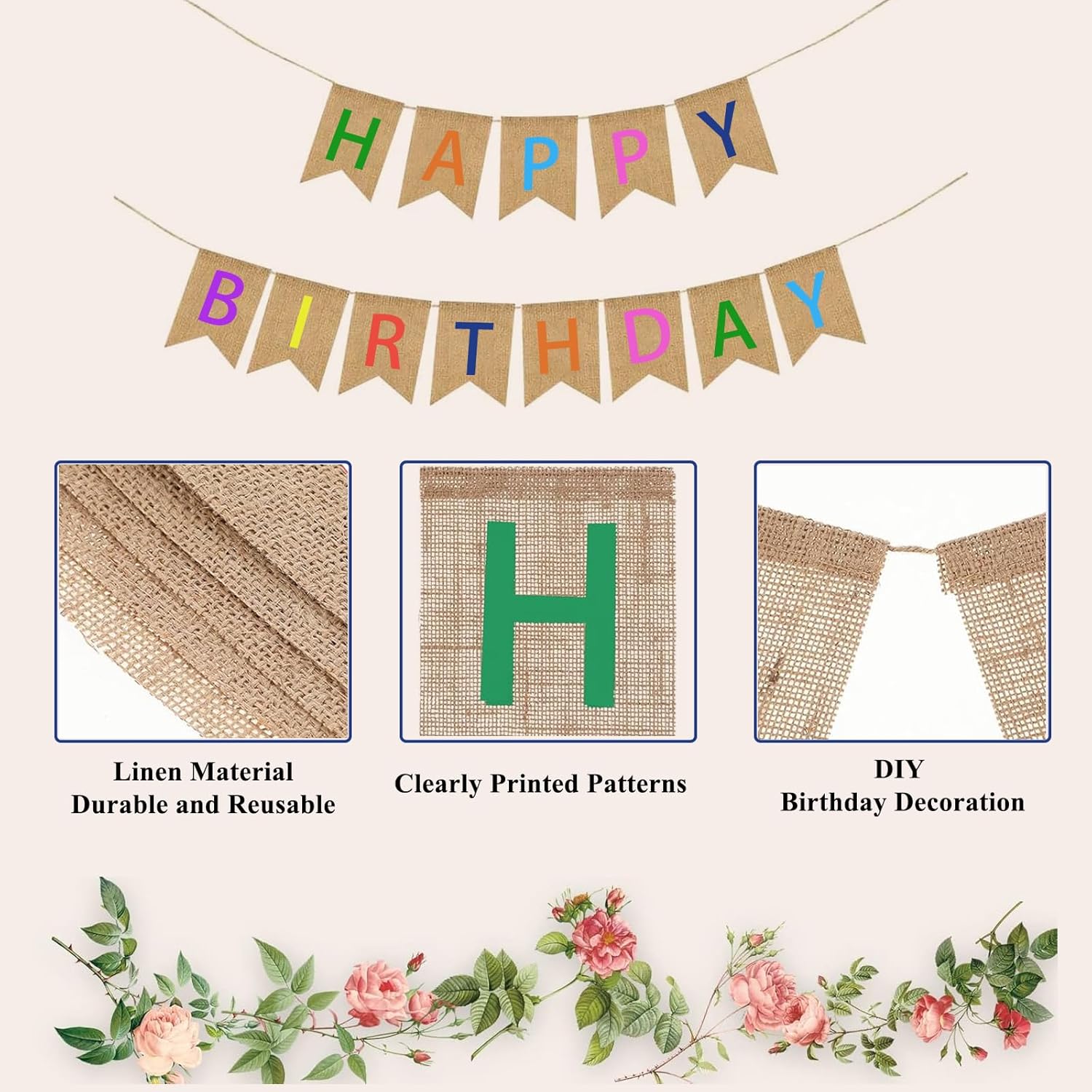 Die Happy Birthday Girlande aus Sackleinen ist eine charmante und rustikale Dekoration für Geburtstagsfeiern und andere festliche Anlässe. Wir haben die Girlande bisher zweimal verwendet. Dies Girlande lässt sich leicht verstauen und zusammenfalten. Wir mögen den zeitlosen und gleichzeitig rustikalen Look von der Girlande.