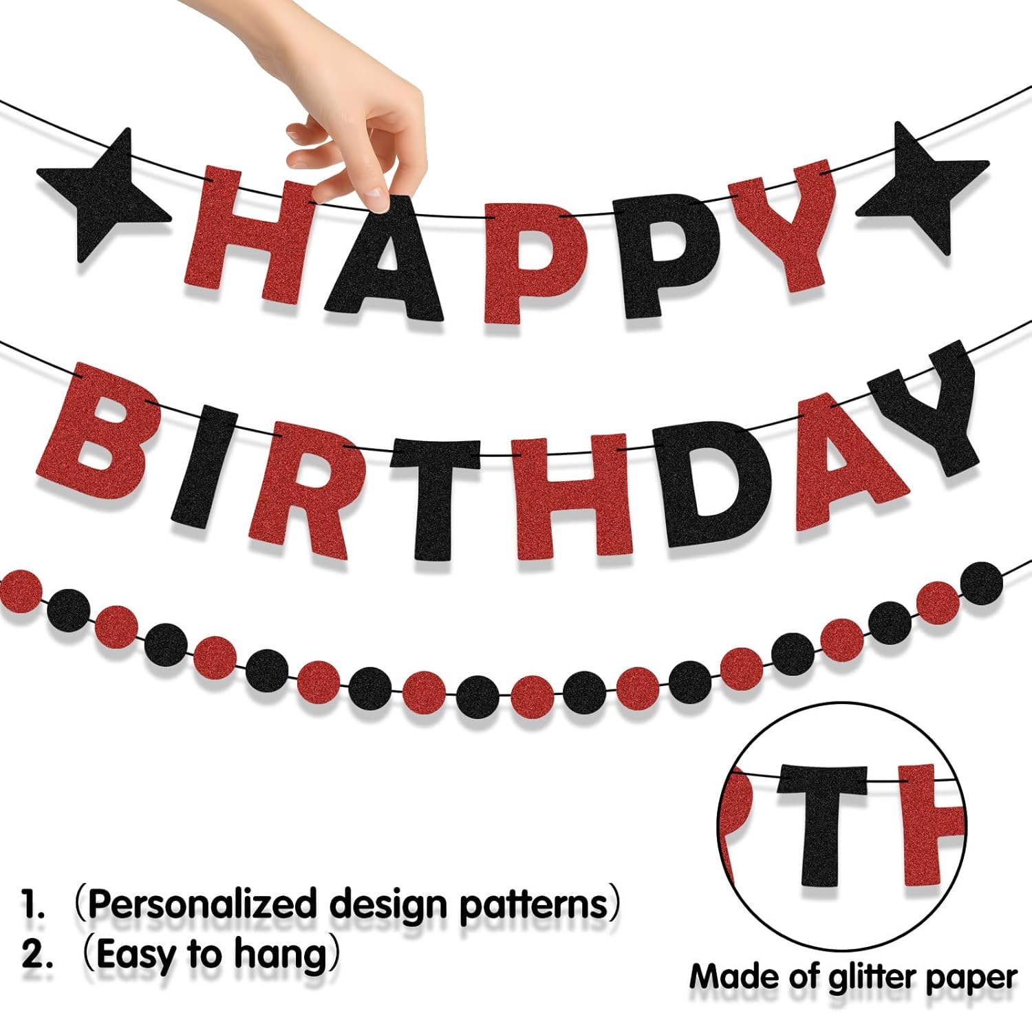 【Materiale di alta qualità】Questo striscione di buon compleanno è realizzato in carta glitterata resistente agli strappi, che lo rende riutilizzabile e adatto a una varietà di eventi. La sorprendente combinazione di colori rosso e nero è accattivante e si abbina a qualsiasi striscione di buon compleanno rosso. Aggiunge un tocco audace e festoso. Essendo una delle decorazioni di compleanno rosse e nere più popolari, è progettata per catturare l'attenzione e creare uno sfondo memorabile. 【Caratteristiche】Questo tessuto facile da usare presenta una splendida texture scintillante che si adatta perfettamente sia all'interno che all'esterno, sia che tu stia organizzando una festa in soggiorno o in giardino. È una scelta affidabile per le tue decorazioni di compleanno rosse e nere e i suoi bordi ben cuciti impediscono lo sfilacciamento, per un aspetto più professionale. Questo significa che non dovrai acquistare un nuovo striscione di compleanno ogni anno, risparmiando denaro a lungo. 【Facile da usare】Questo striscione di buon compleanno presenta un design semplice e facile da usare, che lo rende ideale per chi desidera risparmiare tempo nei preparativi per una festa. A differenza dei complessi striscioni di buon compleanno rossi che richiedono diversi strumenti o abilità per essere appesi, questo viene fornito con tutto il necessario: spago e fori preforati per appenderlo facilmente. Puoi appenderlo in pochi minuti senza bisogno di chiodi, nastro adesivo o colla che. 【Ampie applicazioni】Questo striscione di buon compleanno è più di una semplice decorazione per feste; è versatile e adatto a qualsiasi occasione, il che lo rende un ottimo investimento. Lo striscione rosso di buon compleanno è perfetto per una varietà di feste di compleanno a tema, dalle feste di supereroi e principesse per bambini alle cene eleganti per adulti. La sua classica combinazione di colori rosso e nero è senza tempo, il che lo rende un'ottima scelta per decorare la tua casa. 【Cosa riceverai】Riceverai uno striscione di buon compleanno nero e rosso splendidamente realizzato. Il nostro striscione "Happy Birthday" nero e rosso può essere un piccolo regalo per rafforzare l'amicizia e l'affetto. Se avete domande sui nostri prodotti durante l'uso, contattateci e risolveremo il problema il prima possibile. Ci auguriamo sinceramente di offrirvi un'esperienza piacevole.