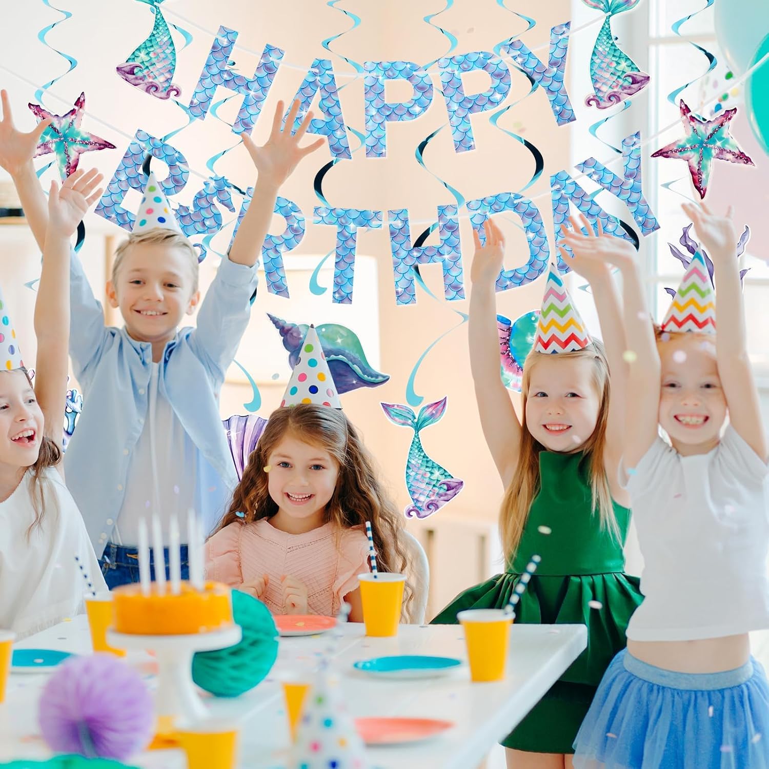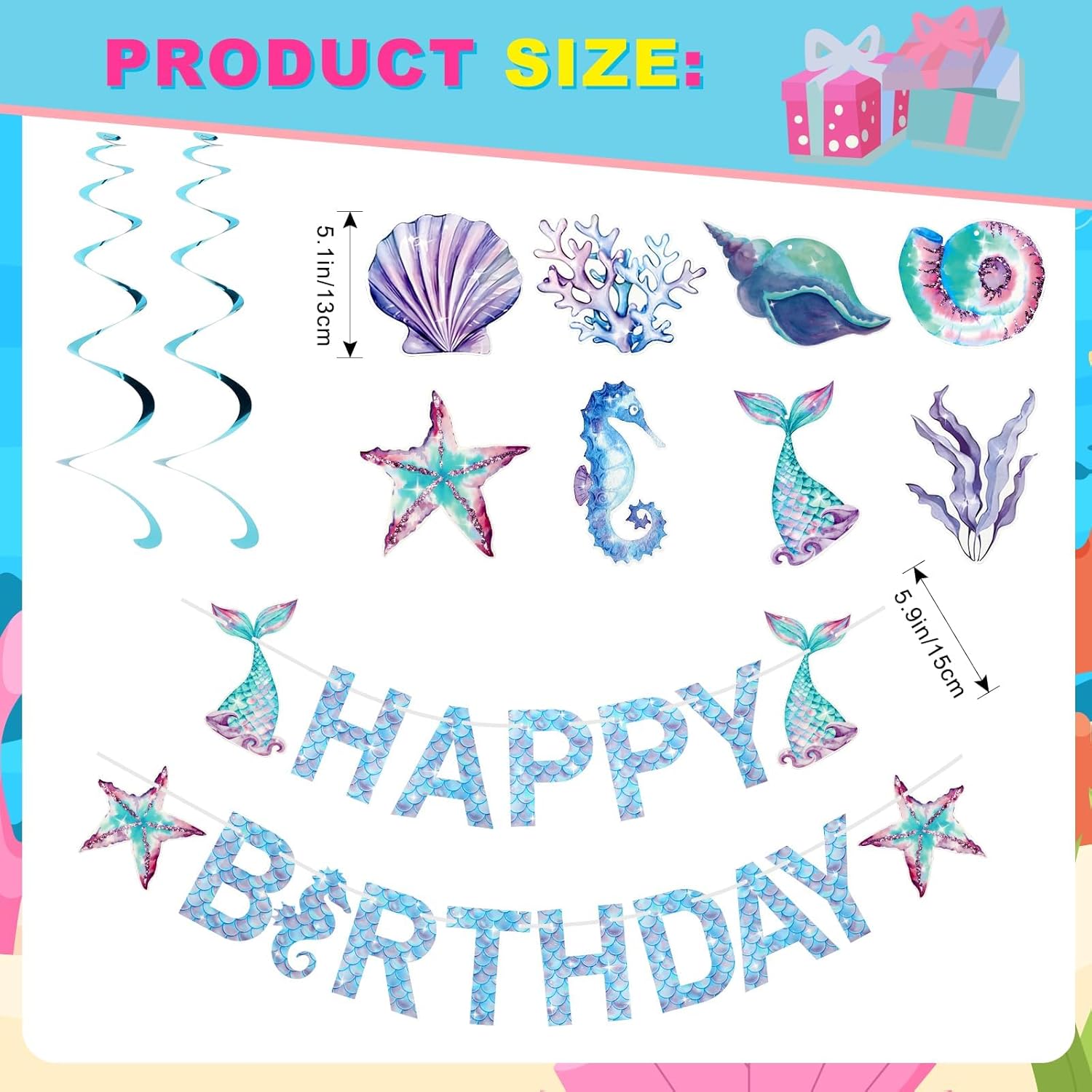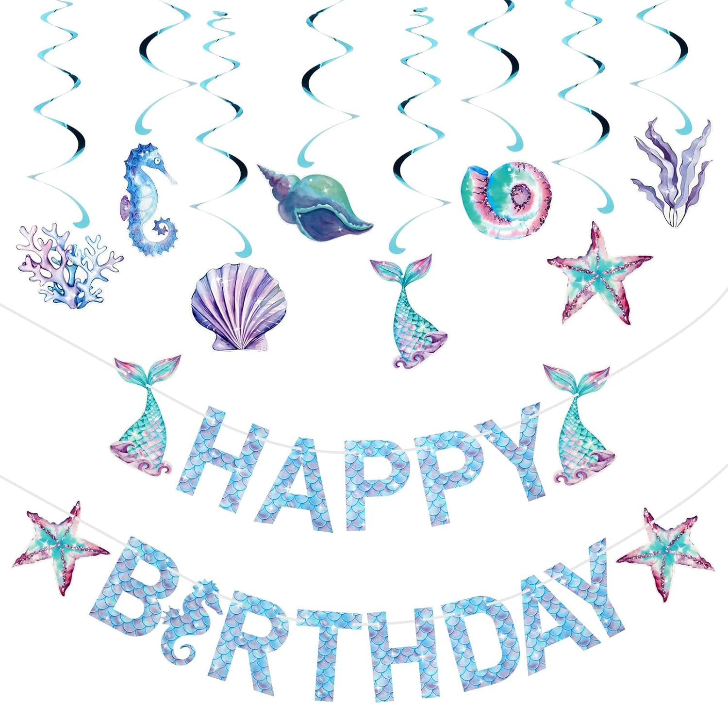 Decorazione per feste a sirena: crea un'atmosfera incantevole per la festa di compleanno dei tuoi bambini con i nostri striscioni di compleanno a sirena, realizzando i loro sogni da favola e creando bellissimi ricordi d'infanzia. Set di decorazioni di compleanno: il pacchetto include 1 striscione di buon compleanno (è richiesto un facile montaggio) e 8 decorazioni a spirale pendenti. Il banner presenta cartoncini singoli di dimensione 11×15 cm. Facile da montare: lo striscione di compleanno a sirena è semplice da montare e richiede solo pochi minuti. Puoi facilmente regolare la spaziatura tra le lettere in base alle tue preferenze. QUALITÀ PREMIUM: i nostri striscioni Happy Birthday sono realizzati con carta spessa di alta qualità, garantendo durata e riutilizzabilità. Sono abbastanza robusti da resistere a molteplici usi. Uso versatile: questa adorabile decorazione per feste a fumetti può essere utilizzata in vari ambienti come case, uffici, hotel a tema, ristoranti ed è perfetta per compleanni di bambini, baby shower e altre occasioni speciali.