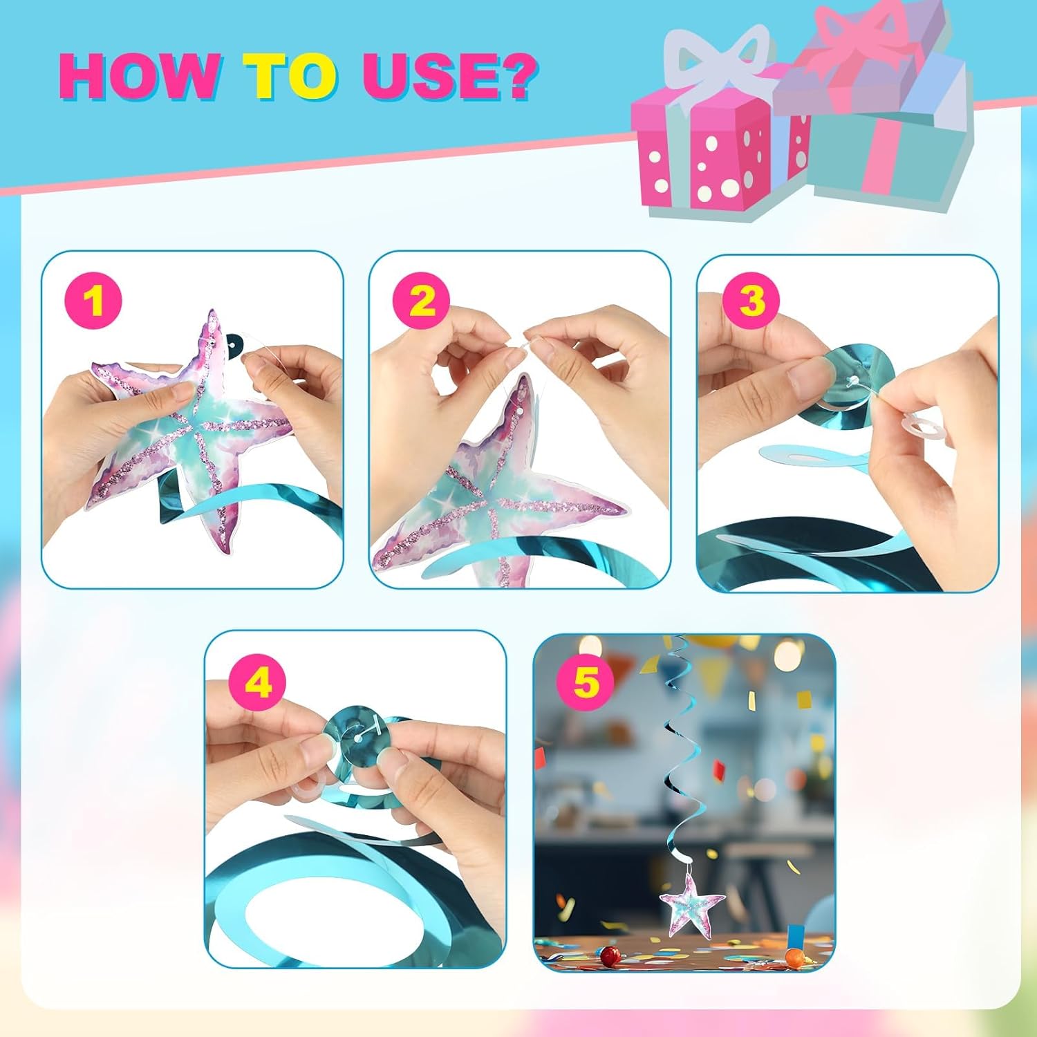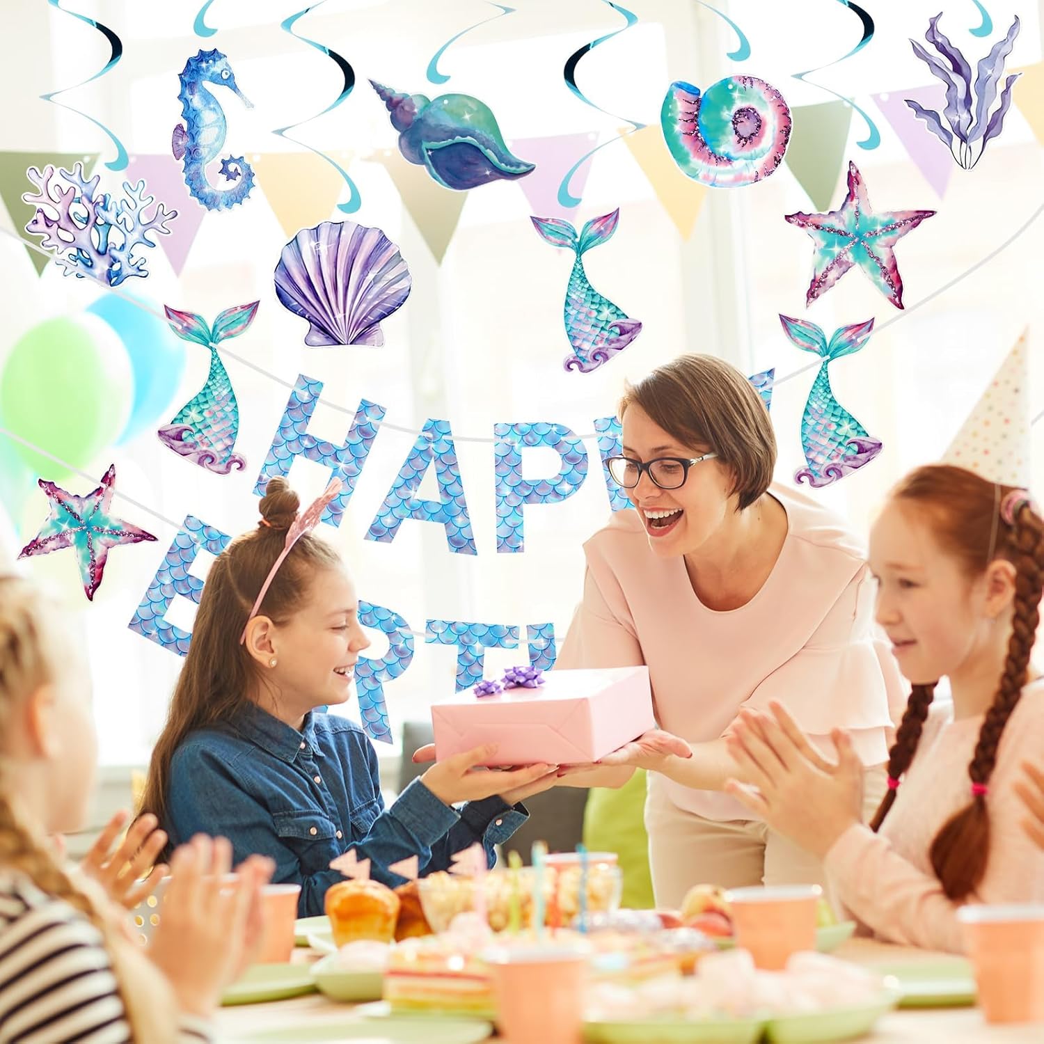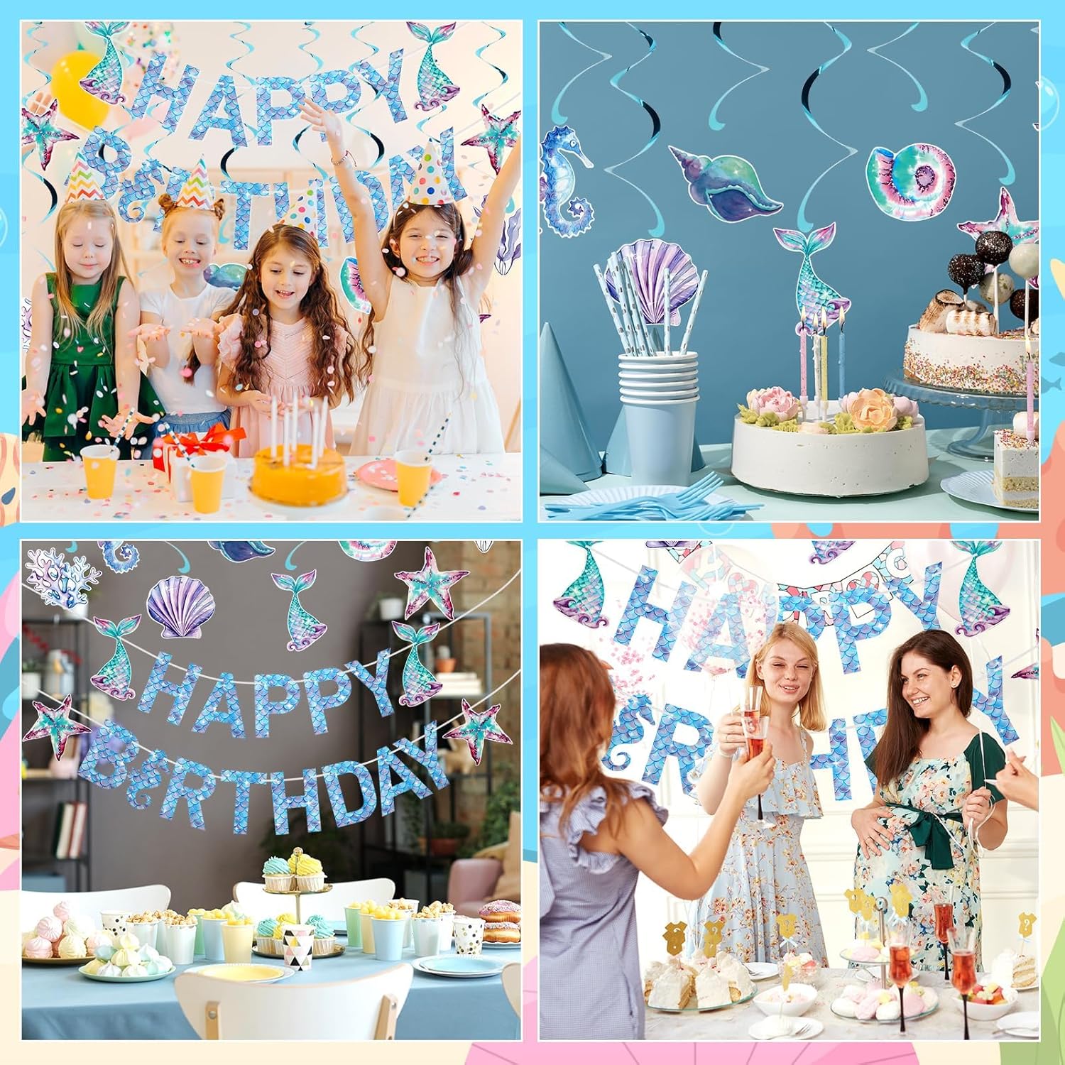 Decorazione per feste a sirena: crea un'atmosfera incantevole per la festa di compleanno dei tuoi bambini con i nostri striscioni di compleanno a sirena, realizzando i loro sogni da favola e creando bellissimi ricordi d'infanzia. Set di decorazioni di compleanno: il pacchetto include 1 striscione di buon compleanno (è richiesto un facile montaggio) e 8 decorazioni a spirale pendenti. Il banner presenta cartoncini singoli di dimensione 11×15 cm. Facile da montare: lo striscione di compleanno a sirena è semplice da montare e richiede solo pochi minuti. Puoi facilmente regolare la spaziatura tra le lettere in base alle tue preferenze. QUALITÀ PREMIUM: i nostri striscioni Happy Birthday sono realizzati con carta spessa di alta qualità, garantendo durata e riutilizzabilità. Sono abbastanza robusti da resistere a molteplici usi. Uso versatile: questa adorabile decorazione per feste a fumetti può essere utilizzata in vari ambienti come case, uffici, hotel a tema, ristoranti ed è perfetta per compleanni di bambini, baby shower e altre occasioni speciali.