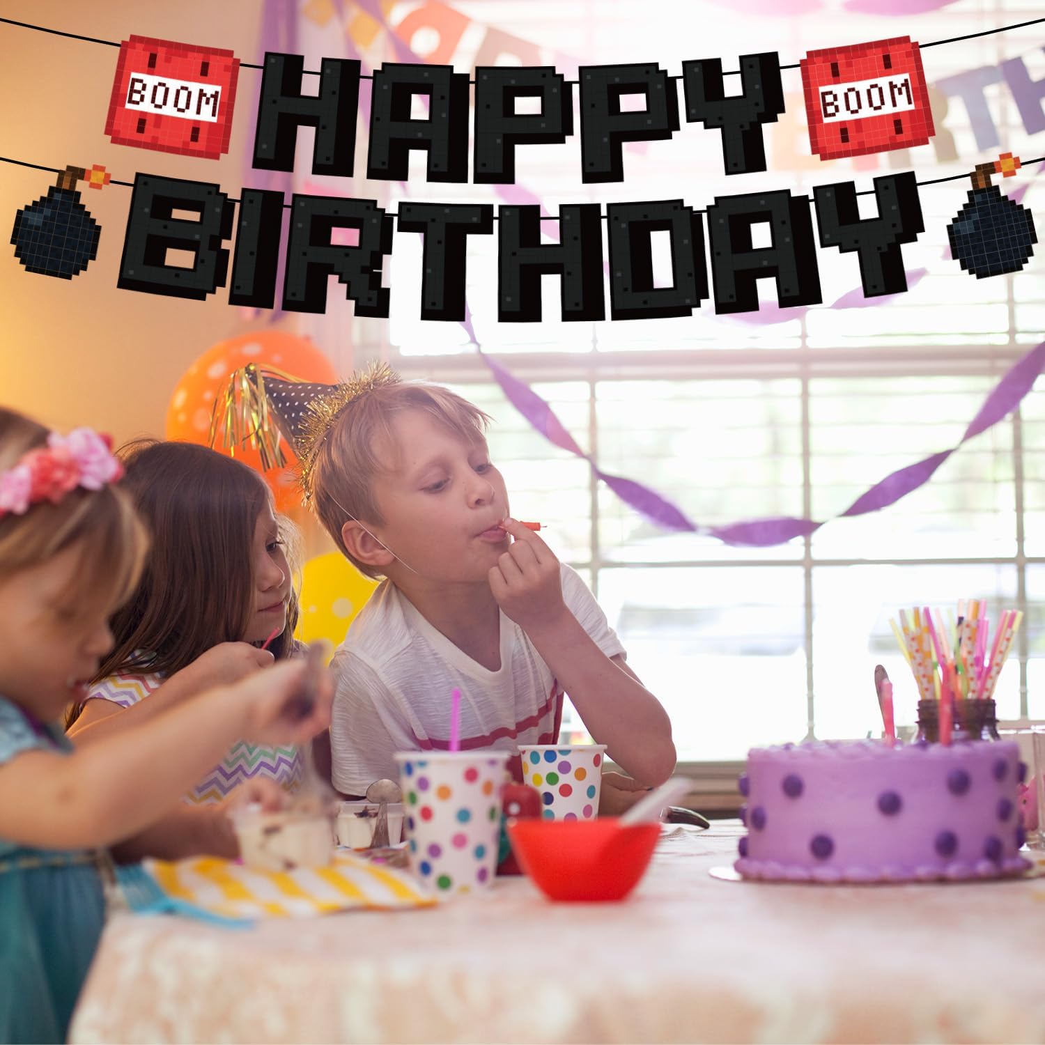 Il pacchetto include: riceverai 1 set di banner di compleanno pixel, la lunghezza totale del banner è di 3 m, sufficiente per soddisfare le tue esigenze di decorazione. Design del prodotto: i nostri stendardi per il compleanno presentano dettagli a tema pixel e un audace testo di "HAPPY BIRTHDAY" per creare un'atmosfera dinamica di festa e personalizzare la tua festa. Materiale: questi banner sono realizzati con carta di carta di buona qualità, che è densa, resistente, non facile da strappare e deformare e possono essere riutilizzati. Non è richiesto l'assemblaggio: il banner è già pre-stringo, non è necessario assemblarlo da solo, eliminarlo, regolare il divario tra il cartone secondo necessità e quindi appenderlo dove si desidera decorare. Forniture di compleanno: i nostri stendardi possono decorare pareti, porte, tavoli da pranzo, corridoi, ecc., Aggiungendo divertimento alle attività di festa e lasciando momenti fotografici indimenticabili. Sono adatti per feste di compleanno, feste a tema del gioco, attività a tema pixel, ecc.