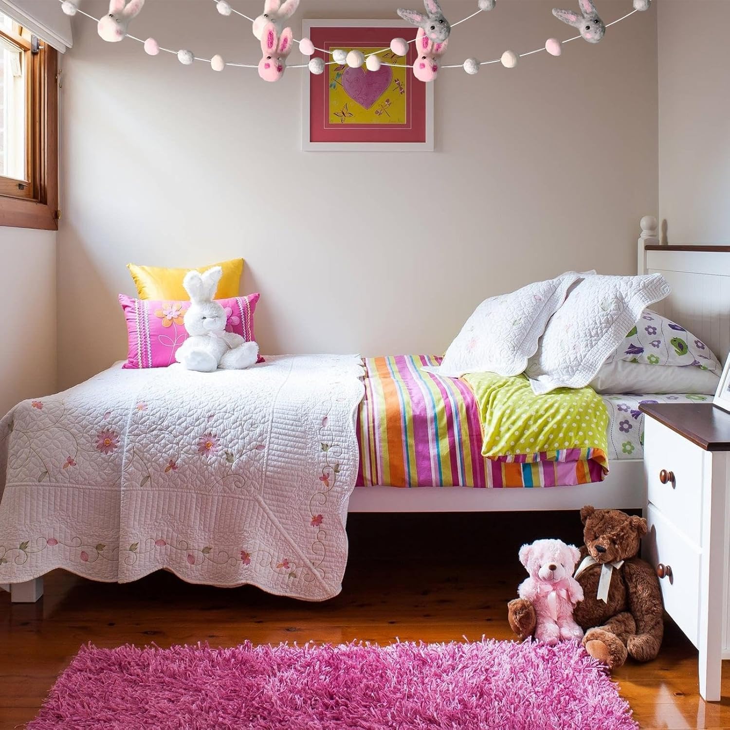 Maggiore durabilità: Realizzata in robusto materiale di feltro, questa ghirlanda di coniglietti pasquali leggera e resistente all'usura garantisce una lunga durata e mantiene la sua integrità nel tempo Ispirazione simbolica: la nostra ghirlanda è intrisa di un significato profondo, mostrando un'incantevole sequenza di colori che riflette il vibrante viaggio della vita e celebra la perseveranza e la speranza, accentuata da palline di feltro tra ogni adorabile coniglio Multiuso: adatta per feste di Pasqua, compleanni e matrimoni, questa incantevole ghirlanda di coniglietti migliora le tue celebrazioni e dona un'atmosfera calda e festosa a qualsiasi stanza, che si tratti di pareti, finestre, porte, portici, cortili o sponde. Tenerezza eccezionale: con immagini di conigli e colori pastello, questa affascinante aggiunta migliora senza sforzo le tue decorazioni pasquali e porta un tocco di fantasia nella tua stanza. 【Regalo eccellente】 Decora il tuo spazio con gioia festosa, eccellente come regalo affascinante per Pasqua, compleanni o vacanze
