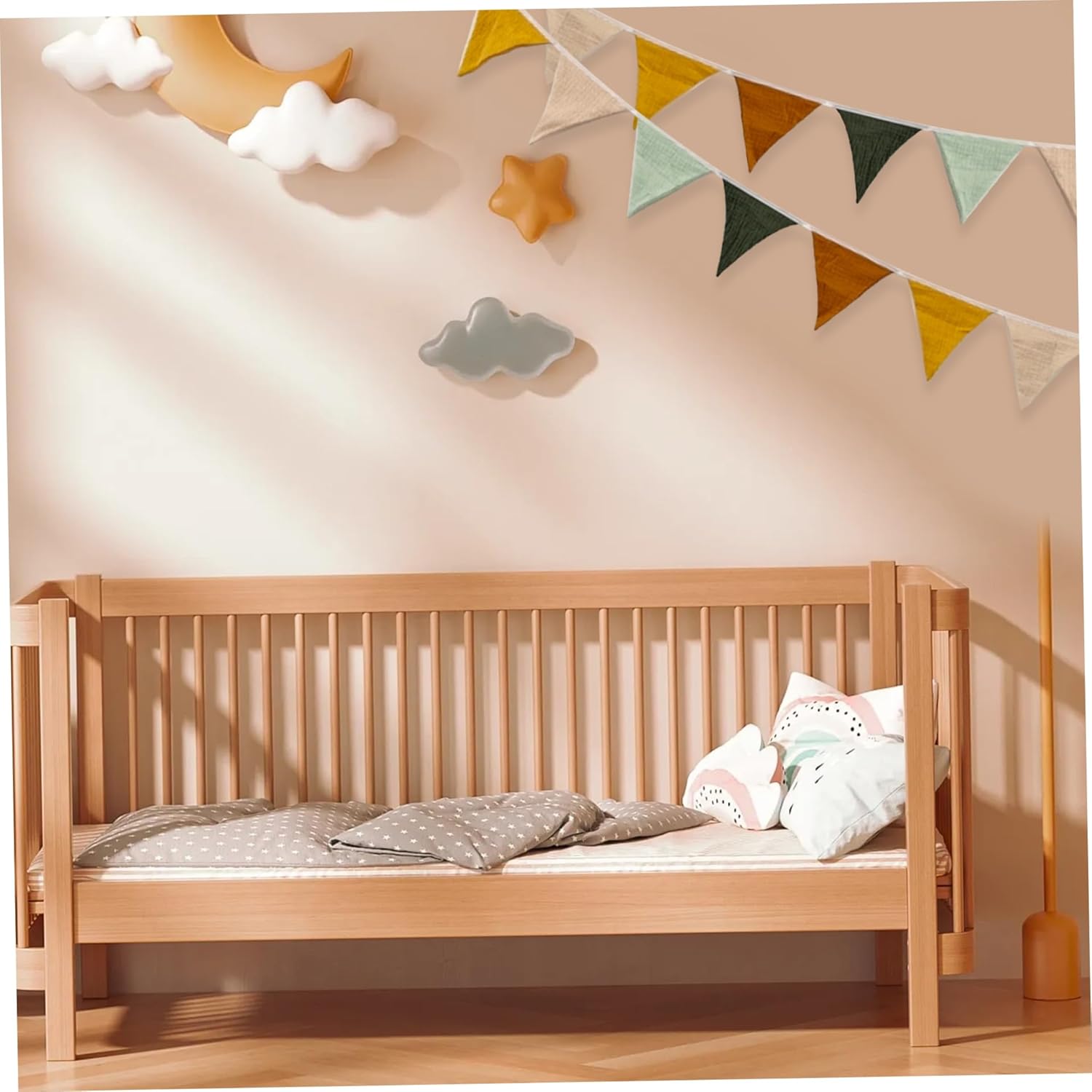 Design sospeso: la stamina in tessuto presenta un design sospeso che rende l'installazione un gioco da ragazzi. Basta attaccare la corda su ciascun lato a un punto alto e sarai pronto per appendere lo striscione senza sforzo, risparmiando tempo e fatica. Comodo e resistente: realizzato in materiale di cotone, questo striscione bruaster è morbido, confortevole e delicato sulla pelle. È facile da lavare e mantenere, consentendo un uso ripetuto per un lungo periodo di tempo senza perdere la sua qualità o il suo fascino. Dimensioni generose e facile da riporre: misura circa 2,7 metri (106,30 pollici) di lunghezza, questa bandierina è abbastanza lunga da soddisfare varie esigenze di decorazione. Inoltre, le bandiere possono essere facilmente impilate e riposte senza occupare molto spazio, garantendo praticità e versatilità. Applicazioni decorative versatili: questo striscione a bandiera è adatto per una varietà di ambienti decorativi, tra cui asili nido, feste di compleanno, sale giochi, camerette per bambini, soggiorni, ecc. Il suo design affascinante e i colori vivaci lo rendono un'aggiunta perfetta a vari spazi. Banner affascinante: lo striscione con bandiera triangolare è una decorazione in tessuto deliziosa, rustica e adorabile. Con colori tenui e ricchi e un design giocoso, questo banner è un'ottima scelta per aggiungere un tocco di fantasia a qualsiasi spazio.
