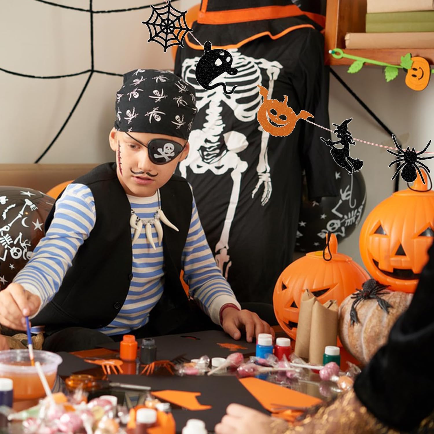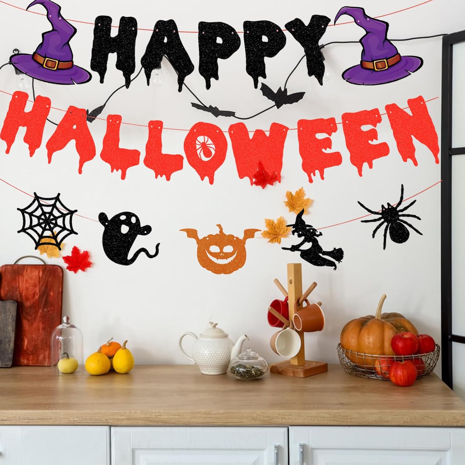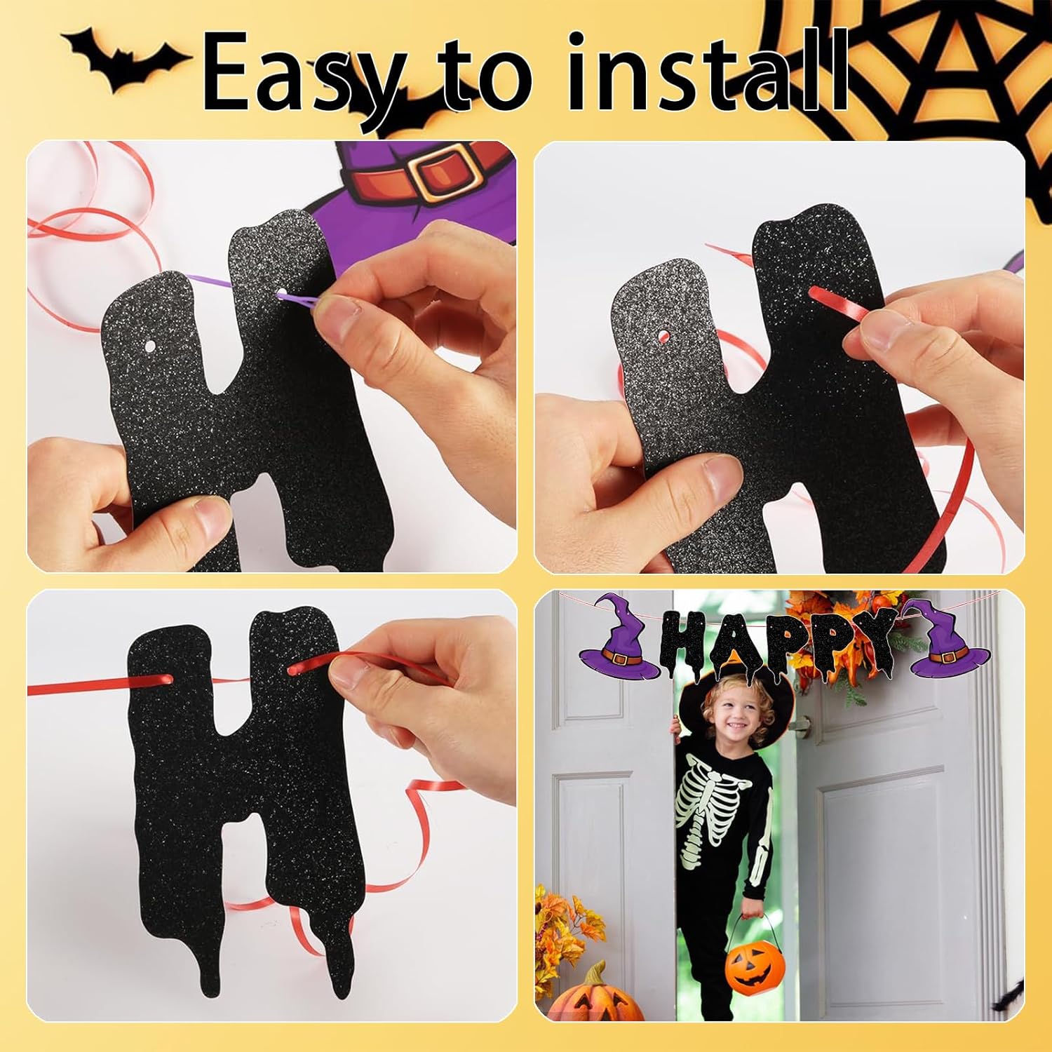 Materiali premium: questa decorazione per striscioni di Halloween è fatta di carta, con motivi chiari di zucca e ragnatela, colori vivaci ed è sicura e rispettosa dell'ambiente. Non facile da deformare o danneggiare, può essere riutilizzato. Facile da usare: basta aprire la confezione. Trova la corda, falla passare attraverso il foro nel cartone con un'asta di plastica e infine tira la corda. Puoi trasferirli rapidamente su alberi, muri, porte e qualsiasi luogo. Happy Halloween: Happy HALLOWEEN è decorato con lettere pinyin dello stesso colore che rendono la festa di Halloween piena di celebrazioni e rituali, lasciando un'indimenticabile notte di Halloween per amici e familiari. Unico e spaventoso: le nostre spaventose decorazioni di Halloween rendono unico il tuo Halloween, creano un'atmosfera forte e inquietante per rendere il tuo Halloween ancora più divertente. 【Ampiamente usato】 Perfetto per tutte le occasioni, gli striscioni di Halloween possono essere appesi su finestre, pareti, porte, fioriere, adatti per la decorazione domestica, centri commerciali, decorazioni da giardino.