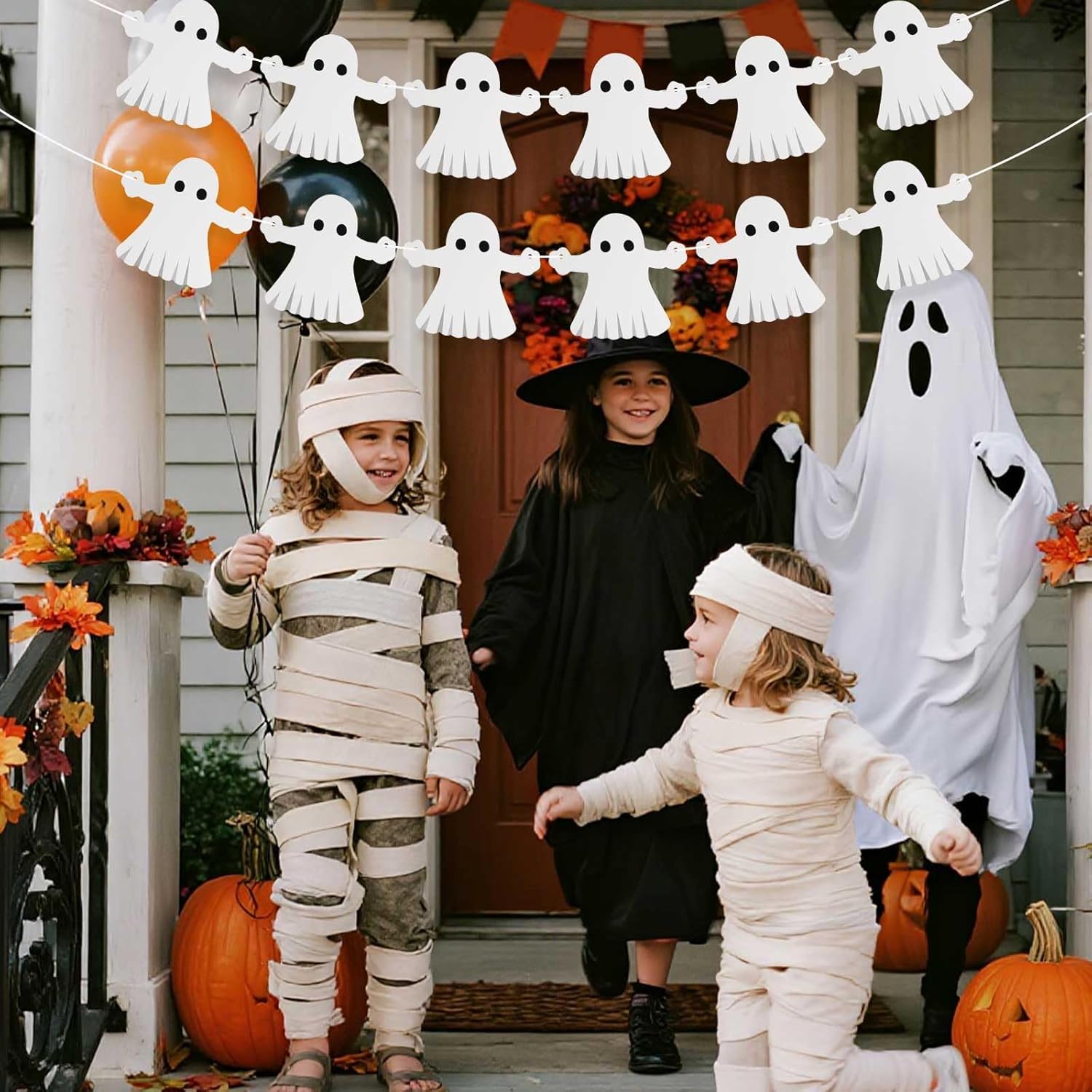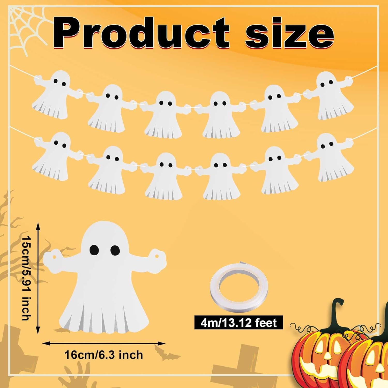Contenuto del pacchetto: riceverai 1 pezzo di kit banner fantasma di Halloween, tra cui 12 carte fantasma, 1 ago e 1 nastro. Abbinamento perfetto per soddisfare le tue esigenze di decorazione per le vacanze. Facile da montare: basta usare un ago per passare il nastro attraverso il foro sulla carta fantasma. Semplice e conveniente, aggiunge un'atmosfera spettrale alla tua celebrazione di Halloween. Design creativo: questa divertente ghirlanda di Halloween presenta 12 figure di fantasmi che aggiungono un tocco giocoso e spettrale a case infestate, feste e altri eventi a tema Halloween. Materiale affidabile: le decorazioni fantasma sono realizzate con carta di carta di buona qualità, che sono leggere e non facili da deformarsi e possono essere riutilizzate, in modo che possano essere utilizzate per molto tempo. Ampia applicazione: il nostro banner fantasma sospeso di Halloween può essere usato come oggetti di casa infestati o per decorare la tua casa, il camino, il giardino, il prato, il balcone e altri interni o esterni, possono anche essere un grande regalo per amici e familiari.