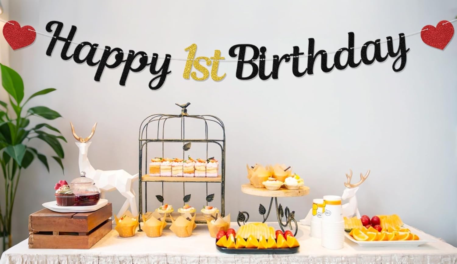 Esclusivo tema di compleanno: fai risaltare la tua festa di compleanno con le nostre decorazioni per il primo compleanno, aggiunge un tocco di fascino alla tua celebrazione. È il modo perfetto per infondere al tuo evento un'atmosfera rilassata. Contenuto della confezione: 1 striscione Happy 1st Birthday, aggiungendo un tocco di glamour alle decorazioni per feste di compleanno. Attireranno sicuramente l'attenzione e creeranno un'atmosfera festosa. Montaggio senza sforzo: il set di banner Happy 1st Birthday offre un facile montaggio fai da te, consentendo di personalizzare le decorazioni a tuo piacimento. Trascorri solo pochi minuti a metterlo insieme, e poi appenderlo dove vuoi: su pareti, finestre, porte, tavoli o persino recinzioni. Ampia applicazione: le nostre decorazioni per il primo compleanno sono adatte anche per compleanni e molto altro ancora. La loro ampia applicazione ti assicura di massimizzare il loro valore e versatilità. Ricordi indimenticabili: le decorazioni per il primo compleanno sono adatte per la decorazione di sfondo fotografico per rendere te e la tua famiglia e gli amici ricordi indimenticabili, che amerai per gli anni a venire.