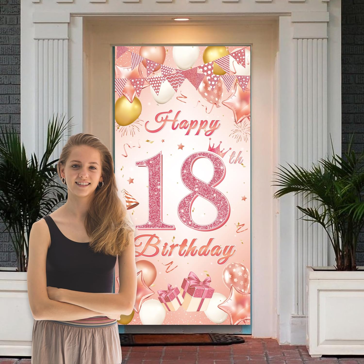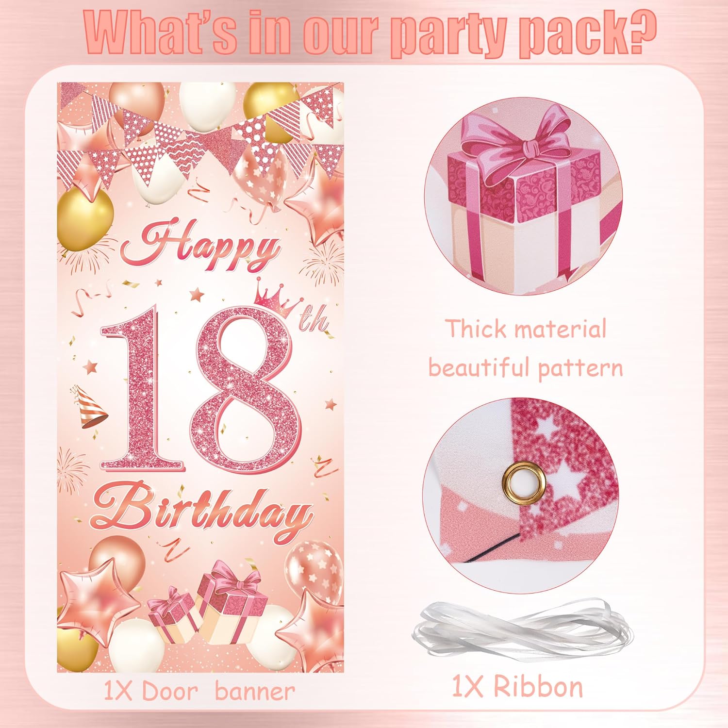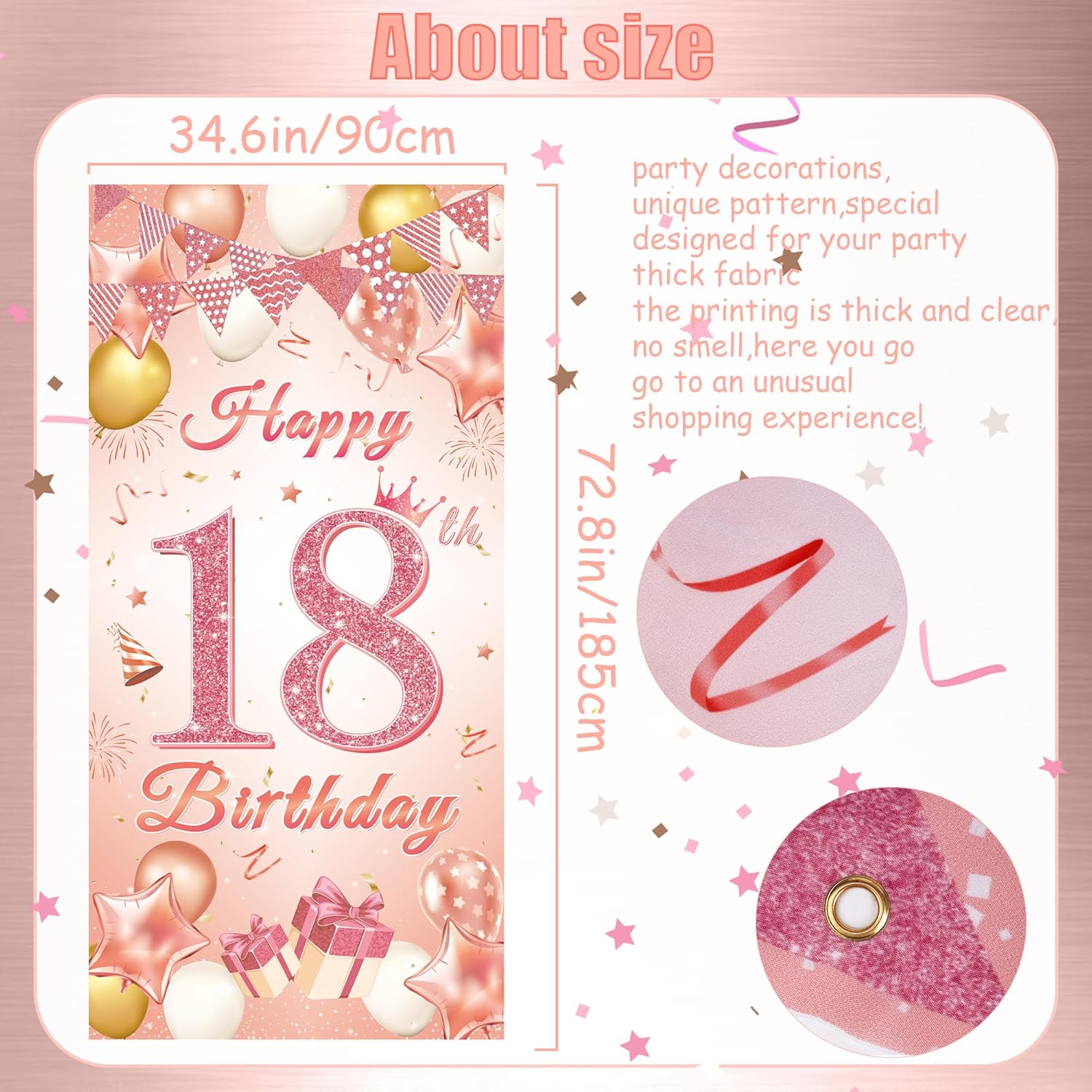 Decorazioni per il 18° compleanno ragazze: riceverai 1 grande tessuto per banner felice per il 18° compleanno in oro rosa (185 x 90 cm), un'ottima scelta per la festa di 18° compleanno di una ragazza Banner per 18° compleanno per ragazze: questo banner per porta di compleanno in oro rosa ben progettato è abbinato a saluti, scatole regalo, ghirlande triangolari, corone, cappelli di compleanno, stelle, coriandoli e altri elementi alla moda per creare un'atmosfera celebrativa. il design generale è pieno di gioia festiva, che è molto adatto per la celebrazione di compleanno di una giovane ragazza Banner per porta per 18° compleanno: questo sfondo decorativo per porte di 18 anni è realizzato con materiali di alta qualità e utilizza una tecnologia di stampa avanzata. I colori sono luminosi, non sbiadiscono facilmente, pieghevoli e riutilizzabili. Il numero 18 di polvere di oro rosa brilla al sole, lasciando una profonda impressione su di te, la tua famiglia e gli amici Decorazioni per il 18° compleanno in oro rosa: la nostra decorazione per il 18° compleanno è molto semplice da usare. devi solo appendere lo sfondo della porta con una corda, che richiede quasi pochissimo tempo, permettendoti di avere più tempo per goderti il momento felice della celebrazione del 18° compleanno con le tue sorelle Banner per porta in oro rosa: utilizzando il nostro banner per porta per 18° compleanno in oro rosa, la tua festa di 18° compleanno sarà un momento impressionante pieno di risate e ricordi. festeggiamo insieme questo giorno speciale e ti auguriamo un buon compleanno