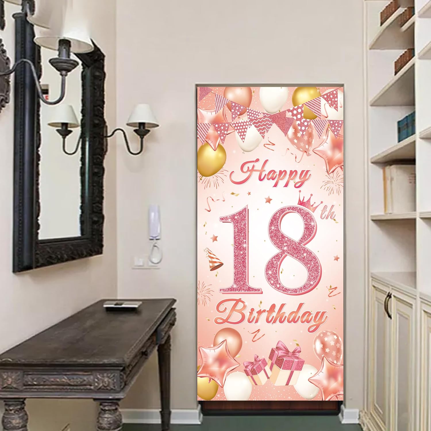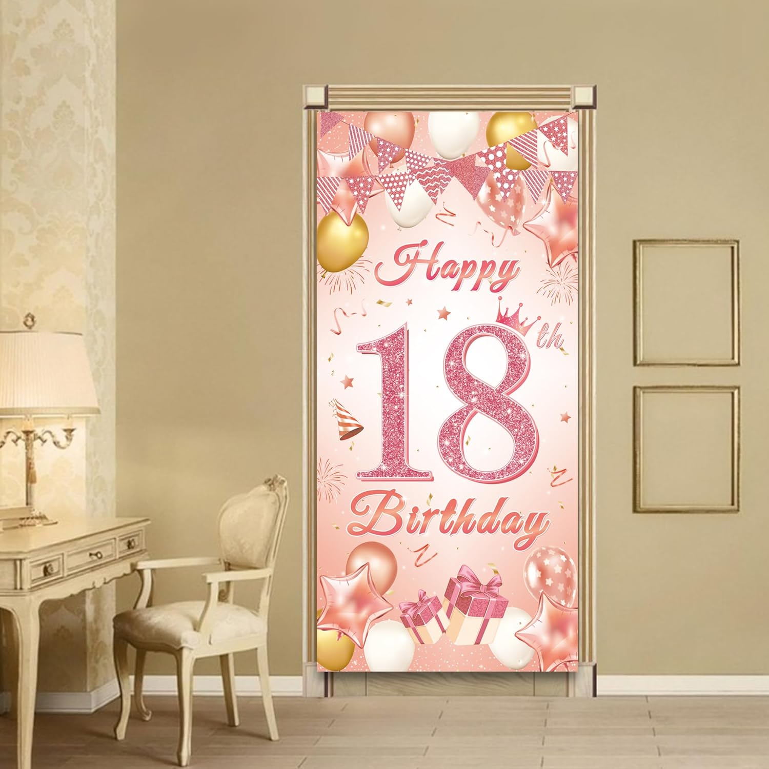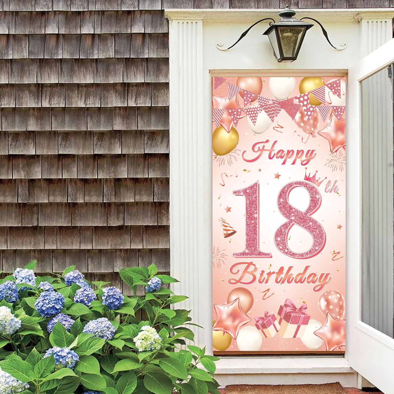 Decorazioni per il 18° compleanno ragazze: riceverai 1 grande tessuto per banner felice per il 18° compleanno in oro rosa (185 x 90 cm), un'ottima scelta per la festa di 18° compleanno di una ragazza Banner per 18° compleanno per ragazze: questo banner per porta di compleanno in oro rosa ben progettato è abbinato a saluti, scatole regalo, ghirlande triangolari, corone, cappelli di compleanno, stelle, coriandoli e altri elementi alla moda per creare un'atmosfera celebrativa. il design generale è pieno di gioia festiva, che è molto adatto per la celebrazione di compleanno di una giovane ragazza Banner per porta per 18° compleanno: questo sfondo decorativo per porte di 18 anni è realizzato con materiali di alta qualità e utilizza una tecnologia di stampa avanzata. I colori sono luminosi, non sbiadiscono facilmente, pieghevoli e riutilizzabili. Il numero 18 di polvere di oro rosa brilla al sole, lasciando una profonda impressione su di te, la tua famiglia e gli amici Decorazioni per il 18° compleanno in oro rosa: la nostra decorazione per il 18° compleanno è molto semplice da usare. devi solo appendere lo sfondo della porta con una corda, che richiede quasi pochissimo tempo, permettendoti di avere più tempo per goderti il momento felice della celebrazione del 18° compleanno con le tue sorelle Banner per porta in oro rosa: utilizzando il nostro banner per porta per 18° compleanno in oro rosa, la tua festa di 18° compleanno sarà un momento impressionante pieno di risate e ricordi. festeggiamo insieme questo giorno speciale e ti auguriamo un buon compleanno