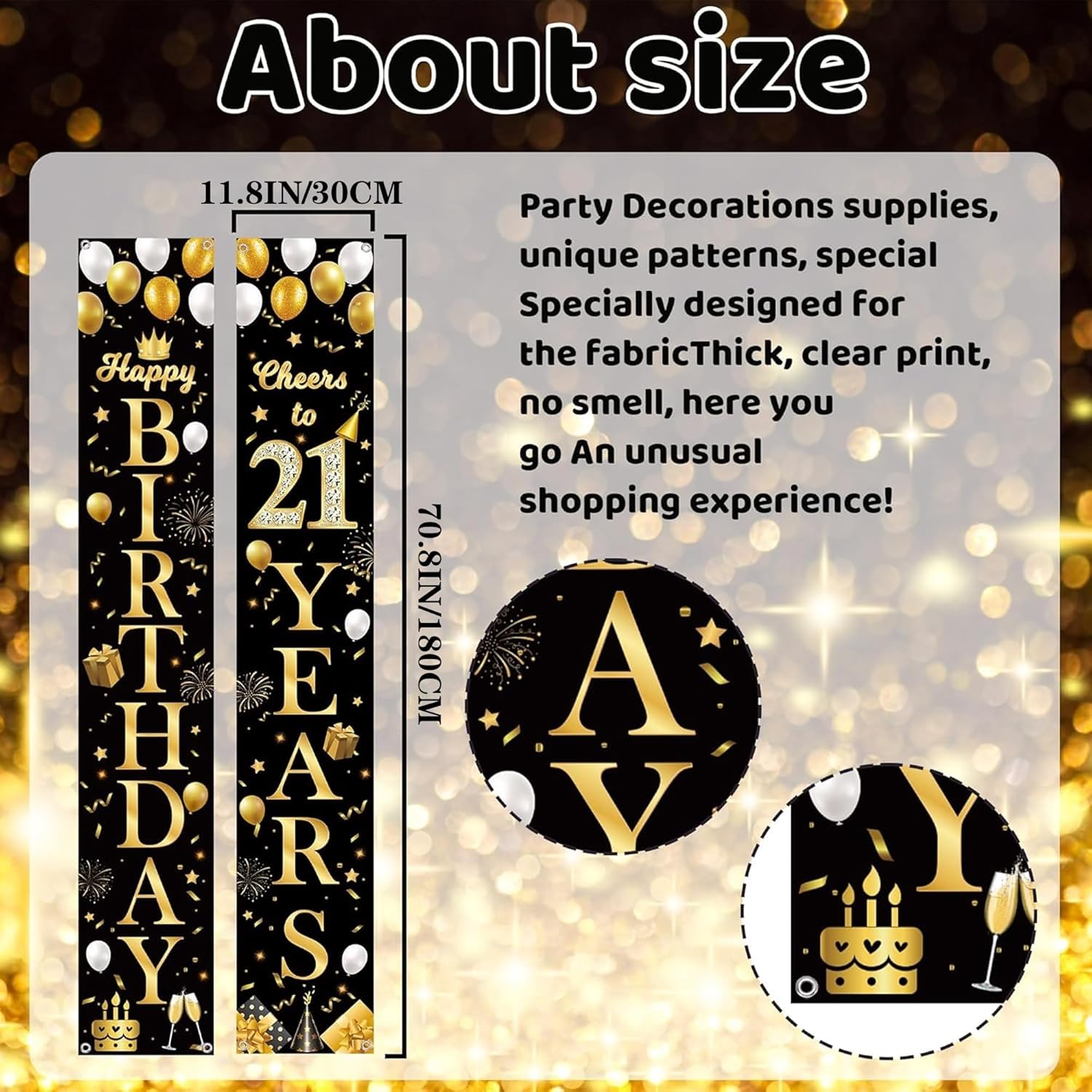 Banner di compleanno: il set include 2 striscioni in oro nero, dimensioni 180 x 30 cm, il nostro banner per portico di compleanno è sufficiente per decorare la tua porta Facile da usare: il nostro banner per porta da 21 anni può essere facilmente appeso davanti alla porta, alla finestra, al portico, alla parete, in giardino, consentendo di risparmiare tempo ed energia decorando ovunque all'interno e all'esterno e godersi il tempo di relax Decorazione per feste di 21° compleanno: il design del banner per portico per il 21° compleanno ha molti elementi eleganti, come: stelle, torte, cupcake, scatole regalo, fuochi d'artificio, corona, nastri, decorazione perfetta per la festa del 21° compleanno e la festa del 21° anniversario, per le tue attività per creare un'atmosfera felice Decorazione per il 21° compleanno: questi striscioni decorativi per feste neri e dorati sono realizzati in tessuto di alta qualità. Utilizzando una tecnologia di stampa avanzata, non è facile da sbiadire. può essere utilizzato ripetutamente. Decora facilmente ovunque tu voglia Ampia applicazione: la decorazione per feste in oro nero per 21° compleanno è adatta per una varietà di occasioni di celebrazione, come: feste di compleanno, celebrazioni di anniversario. lo sfondo nero low-key e i lussuosi caratteri dorati creano un'atmosfera di festa di fascia alta