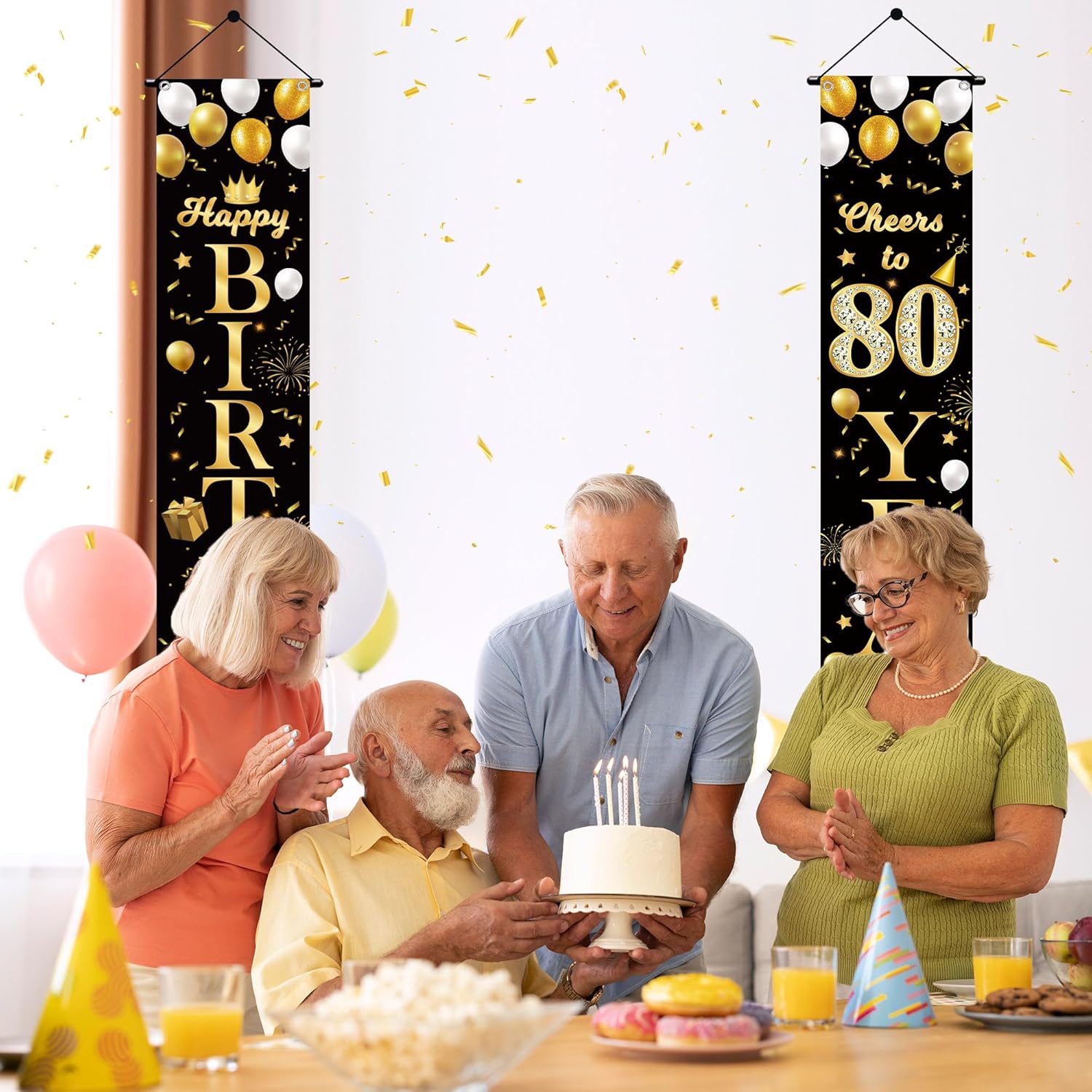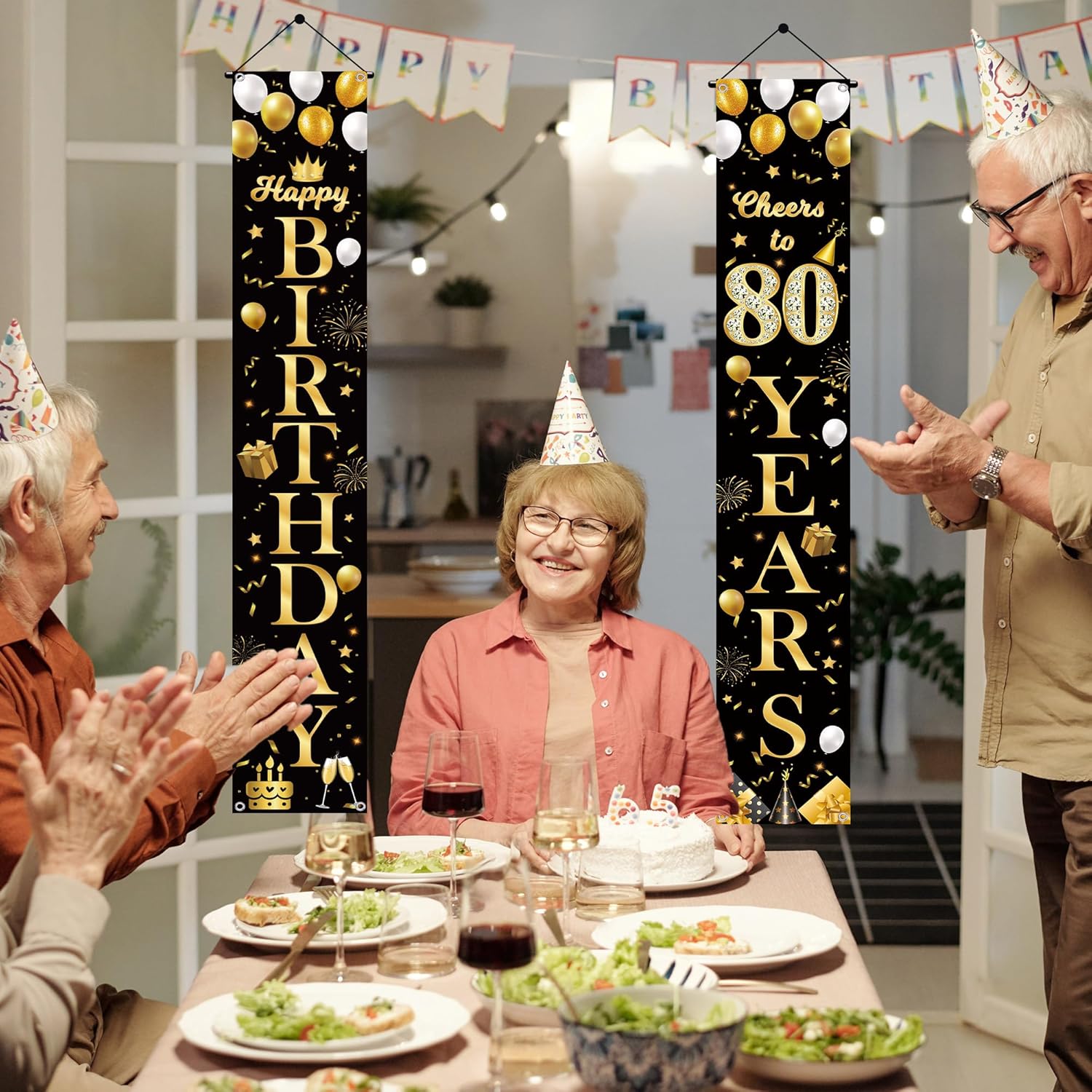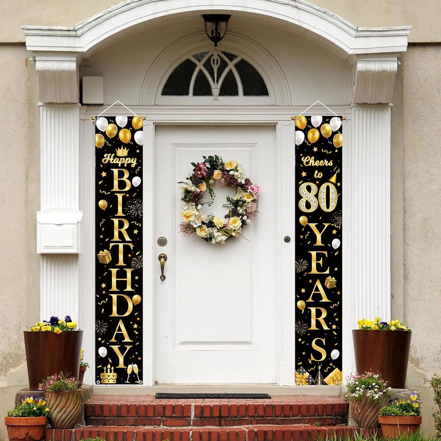 Banner di compleanno: il set include 2 striscioni in oro nero, dimensioni 180 x 30 cm, il nostro banner per portico di compleanno è sufficiente per decorare la tua porta Facile da usare: il nostro banner per porta da 80 anni può essere facilmente appeso davanti alla porta, alla finestra, al portico, alla parete, in giardino, consentendo di risparmiare tempo ed energia decorando ovunque all'interno e all'esterno e godersi il tempo di relax Decorazione per feste di 80° compleanno: il design del banner per portico per 80° compleanno ha molti elementi eleganti, come: stelle, torte, cupcake, scatole regalo, fuochi d'artificio, corona, nastri, decorazione perfetta per festa di 80° compleanno e festa dell'80° anniversario, per le tue attività per creare un'atmosfera felice Decorazione per 80° compleanno: questi striscioni decorativi per feste neri e dorati sono realizzati in tessuto di alta qualità. Utilizzando una tecnologia di stampa avanzata, non è facile da sbiadire. può essere utilizzato ripetutamente. Decora facilmente ovunque tu voglia Ampia applicazione: la decorazione per feste in oro nero per 80° compleanno è adatta per una varietà di occasioni di celebrazione, come: feste di compleanno, celebrazioni di anniversario. lo sfondo nero low-key e i lussuosi caratteri dorati creano un'atmosfera di festa di fascia alta