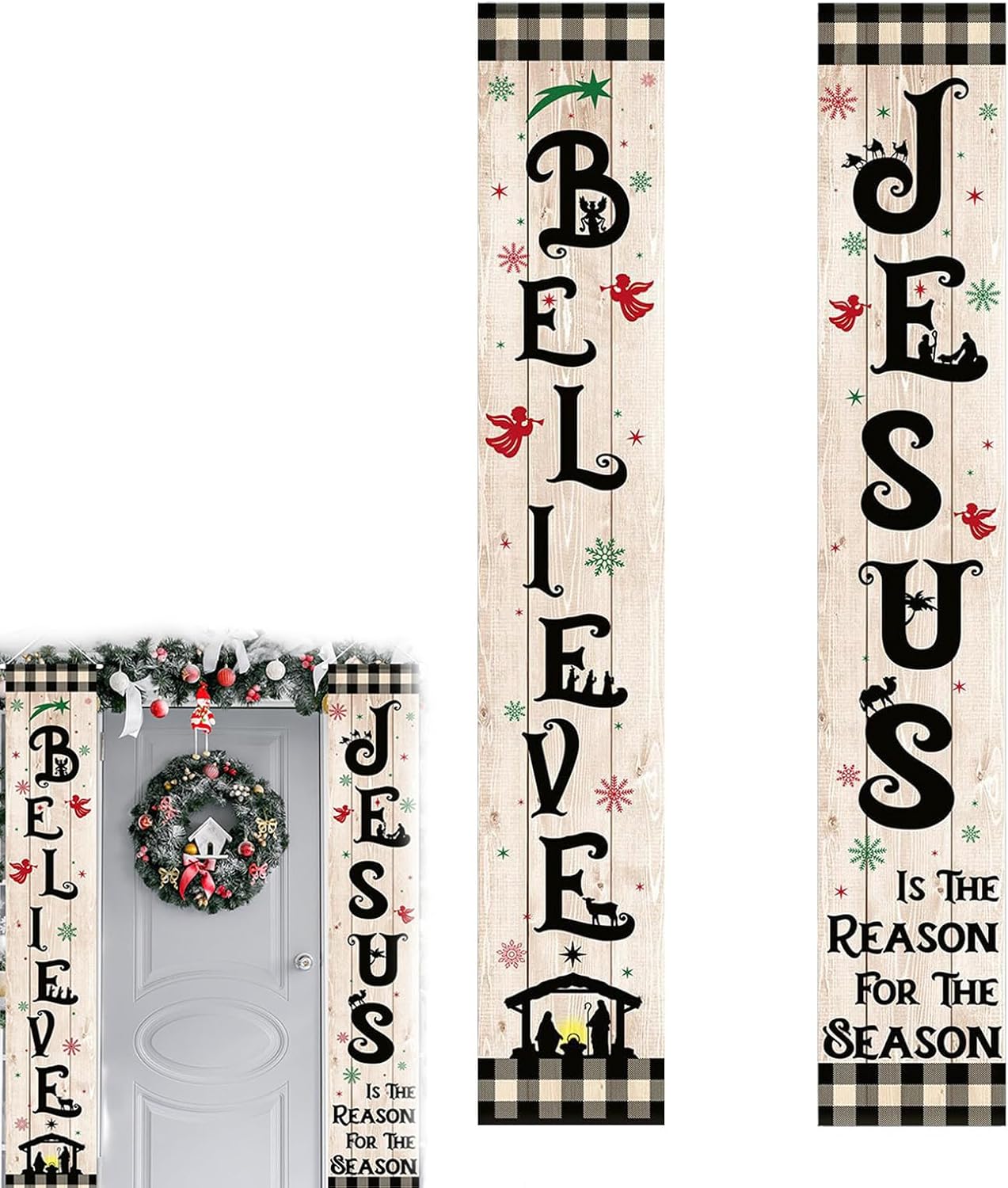 Celebra il vero significato: aggiunge fascino alla tua porta d'ingresso con gli stendardi del presepe che diffondono calore e riflettono devozione, supportati da semplici strumenti per appenderli facilmente. Migliora l'atmosfera festosa: presenta scene sacre di Gesù su uno sfondo in legno in stile fattoria, splendidamente progettato con motivo a quadretti di bufalo per migliorare l'atmosfera festosa e abbinarsi naturalmente ai temi di decorazione delle vacanze. Costruzione pronta per l'esterno: realizzato in poliestere leggero, questo stendardo del presepe di Natale è resistente alle intemperie, si asciuga rapidamente dopo la pioggia e include un palo per una facile esposizione all'aperto, garantendo un uso duraturo in un varietà di condizioni Design resistente al vento: presenta corde per stabilizzare gli striscioni in caso di vento leggero, aiutando a mantenere l'allineamento con un processo di installazione semplice e senza attrezzi per risultati affidabili all'aperto Decorazioni festive per la casa: decora facilmente luoghi diversi, ideale come regalo stagionale, diffonde l'allegria religiosa del Natale e funge da sfondo fotografico per i momenti festivi