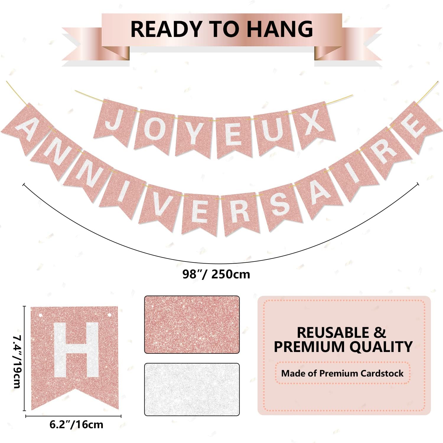 Decorazioni per striscioni di buon compleanno in oro rosa - Lo striscione di buon compleanno presenta uno striscione di compleanno glitter oro rosa con lettere di buon compleanno luccicanti e scintillanti, bellissime decorazioni che hanno reso perfetta questa festa di compleanno. Design brillante - Ghirlanda di compleanno Questo striscione di compleanno glitter oro rosa è colorato e abbagliante per rendere la tua festa di compleanno distinta e impressionante; Potrebbe anche essere abbinato ad altri ornamenti per decorare l'ambiente della tua festa. Facile da usare: lo striscione di buon compleanno viene fornito preassemblato. Puoi aggiungerli facilmente a mensole, ringhiere, finestre e tavoli da dessert o persino utilizzarli come sfondi fotografici. Le opzioni sono infinite! Questa sarebbe un'ottima decorazione per la festa. ALTA QUALITÀ - Ghirlanda di buon compleanno realizzata in resistente cartoncino dorato, decorata con lettere chiare, non facile da strappare o deformare, materiali di alta qualità sicuri ed ecologici da conservare per il riutilizzo. Potrebbe durare a lungo per la festa. Ampie applicazioni: le decorazioni di buon compleanno potrebbero evidenziare rapidamente il tema della festa, fungendo da meraviglioso sfondo fotografico; È bello per la decorazione della festa di compleanno. Striscione di compleanno.