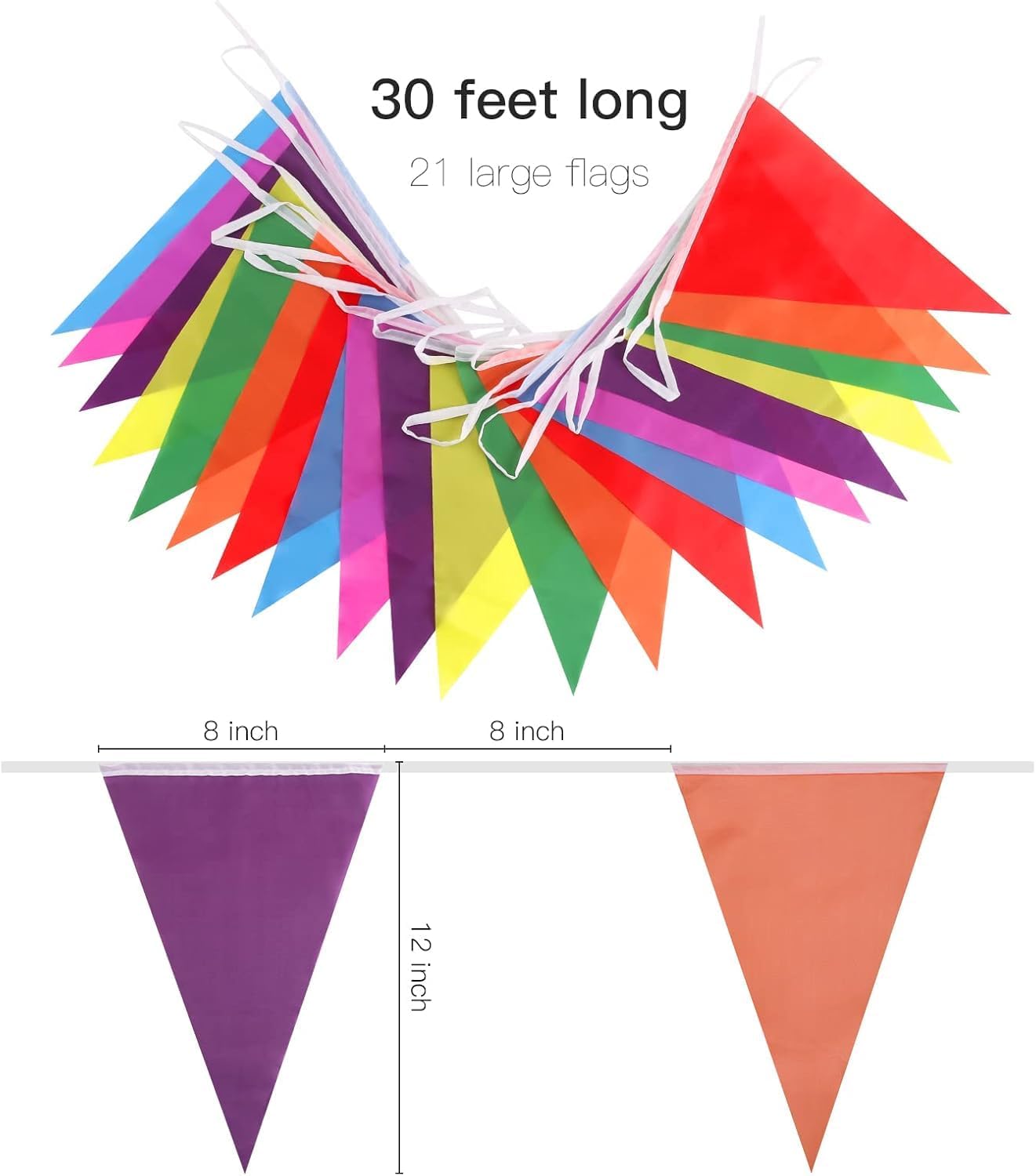 Poliestere Bandiera riutilizzabile per feste: questa bandiera lunga 9 m è realizzata in poliestere resistente, tutte le bandiere sono tagliate al laser e le cuciture di alta qualità sono fatte su una corda bianca per un uso ripetuto Colori arcobaleno accattivanti: contiene 7 colori vivaci, tra cui rosso, rosa, verde, giallo, blu, arancione e viola, rendendo facile aggiungere attrazione e colori emozionanti a qualsiasi festa Bandiera resistente alle intemperie: include 21 bandiere triangolari resistenti alle intemperie, con una larghezza di 20,3 cm e un'altezza di 30,5 cm. Ha funzione anti UV sbiadimento ed è adatto per uso interno ed esterno Decorazione essenziale di compleanno: le bandiere colorate possono aggiungere istantaneamente colore alle feste e sono elementi decorativi essenziali per le feste di compleanno. Possono essere appesi alla porta, su alberi, corde e finestre. Abbinato a decorazioni di carnevale, crea eccellenti idee decorative per feste di compleanno per i bambini piccoli. Crea una festa a tema carnevale o circo per compleanni con file di bandiere dai colori vivaci. Ampiamente usato: feste di compleanno, matrimoni, festival, grandi aperture, campeggio, vendite di garage e qualsiasi altra occasione speciale di celebrazione