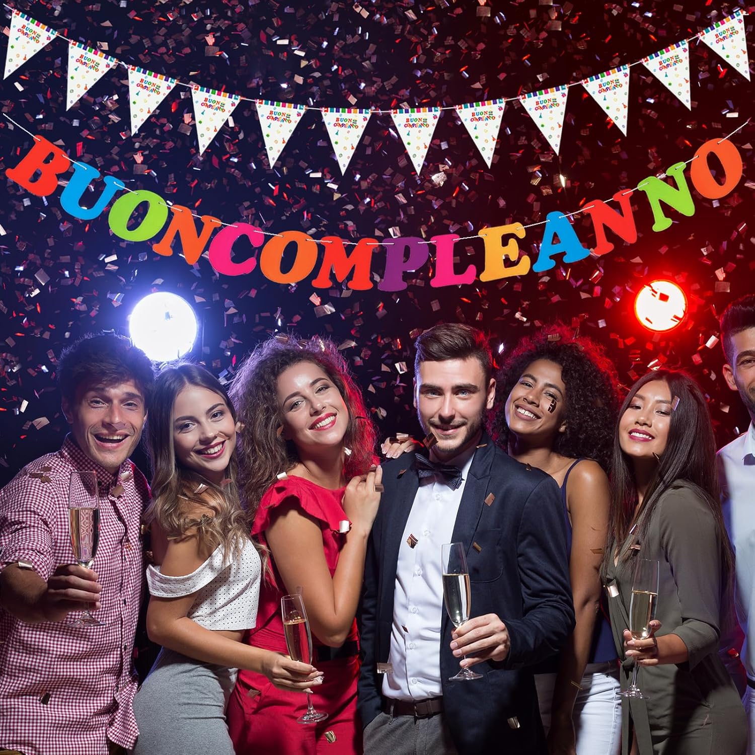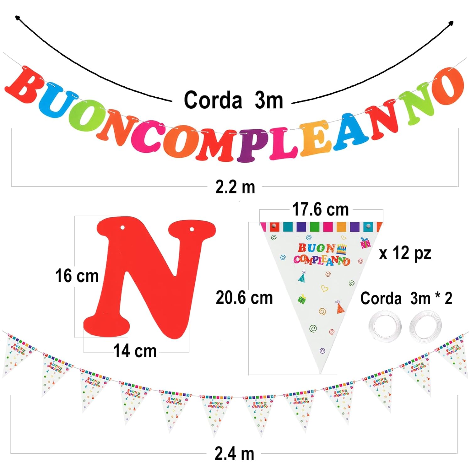 Contenuto della confezione: ghirlanda con scritta "Happy Birthday" alta circa 16 x 14 cm, in 7 colori diversi: giallo, blu, arancione, fucsia, verde, rosso, viola e nastro da 3 metri; 12 ghirlande triangolari misurano circa 21 x 17 cm e nastro da 3 metri. Protezione dell'ambiente e della salute: gli striscioni di compleanno e le bandiere triangolari sono fatti di carta. Bellissimo design: il set Happy Birthday è perfetto come decorazione per le feste di compleanno e può essere facilmente combinato con altre decorazioni. Colori vivaci e bella stampa di gagliardetti Facile da installare: puoi appenderli ovunque con estrema semplicità e in pochi istanti: sia all'interno che all'esterno della casa, soffitto, parete, finestre, alberi, porte, interni, esterni, ecc. Ogni lettera e ghirlanda triangolare con 2 piccoli fori. Puoi collegarli utilizzando la corda che offriamo. Attenzione: potrebbe esserci qualche differenza dovuta alla misurazione manuale. Il colore potrebbe presentare una leggera differenza a causa dei diversi display. Se hai dubbi sui nostri prodotti o servizi, non esitare a contattarci tramite il sistema di Amazon.