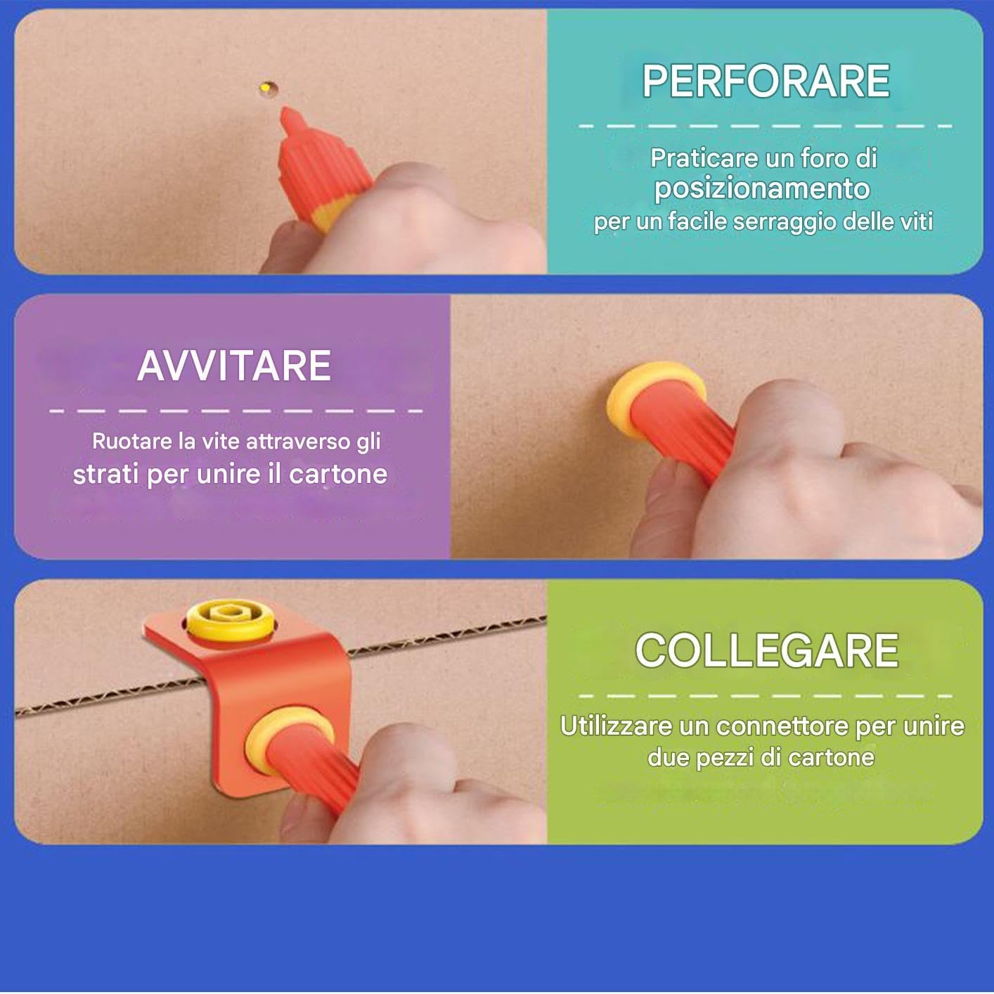 Design dalla Lavorazione : Realizzato con materiali resistenti all'per durabilità in caso di utilizzo frequente, migliora l'esperienza craft complessiva assicurando affidabilità costruttiva a lungo termine e prestazioni consistenti Educativo e Pratico: Questo kit per costruzioni in cartone è ideale per progetti scolastici e attività creative in famiglia, favorendo lo sviluppo di competenze pratiche essenziali e incoraggiando il lavoro di durante la realizzazione di progetti immaginativi con materiali resistenti ed ecologici. Gioco Creativo senza Rischi: Le protezioni per le dita garantiscono la sicurezza dei bambini durante l'uso del kit di costruzione in cartone, assicurando meccanismi di prevenzione di incidenti e serenità per i genitori durante le attività creative Combo gioco creativo: Incentiva la creatività con decorazioni animali portatili, versatilità nei robot artigianali e costruzioni di castelli per gatti, per un playset che favorisce naturalmente lo sviluppo di immaginazione illimitata e abilità pratiche Ispirare le Giovani Menti: Ideale per ragazzi, ragazze e bambini, questo kit di costruzione libera la creatività in qualsiasi momento, supportando attività divertenti a casa, a scuola o durante gli spostamenti, promuovendo l'apprendimento hands-on e lo sviluppo cognitivo