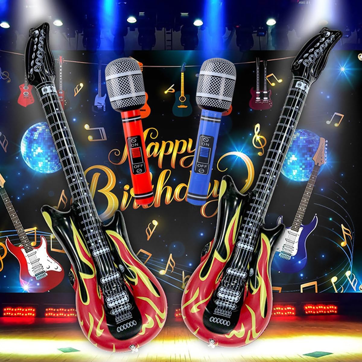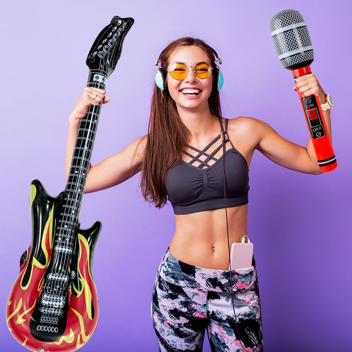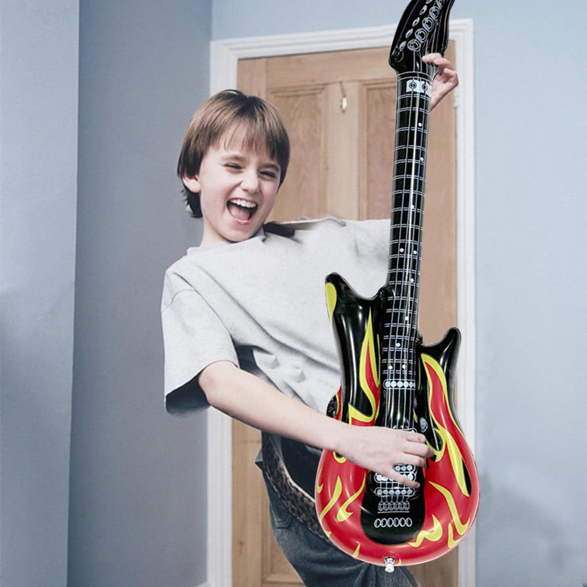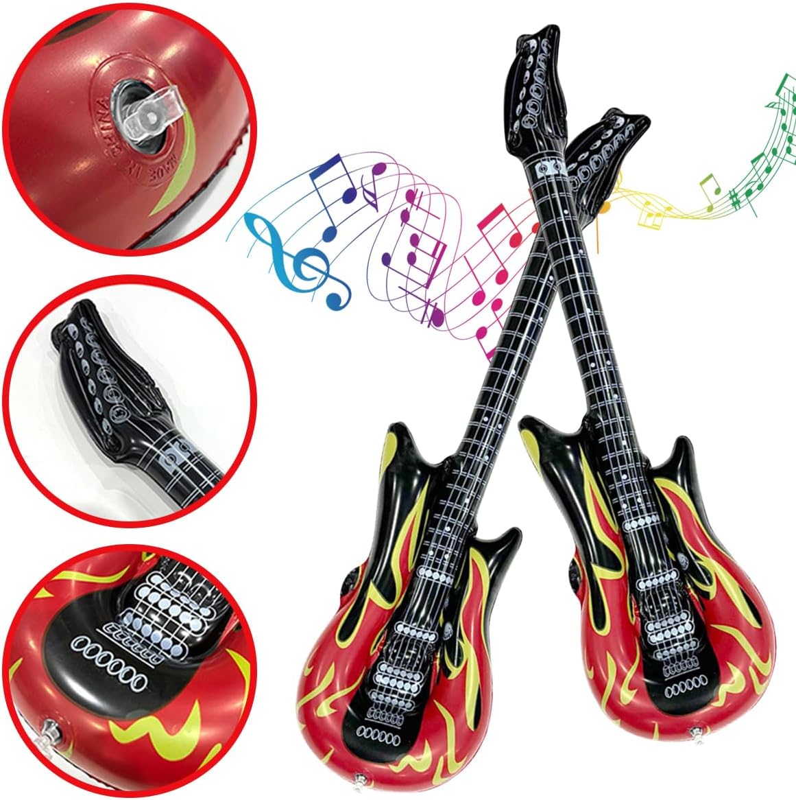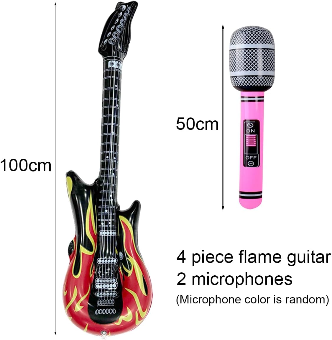 🎶La dimensione del prodotto della chitarra a fiamma è di 100 cm e la dimensione del microfono gonfiabile è di 50 cm. C'è un certo margine di errore nel prodotto gonfiabile stesso, per favore non preoccuparti. 🎶Questo accessorio è realizzato in materiale PVC di alta qualità, sicuro ed ecologico. 🎶Giocattolo gonfiabile da rock star, la valvola di alta qualità può mantenere l'aria per molti giorni, durevole e a prova di perdite. 🎶Le chitarre gonfiabili sono perfette per feste di compleanno, matrimoni, Halloween, Natale, feste in maschera e altre feste o come oggetti di scena per cabine fotografiche. 🎶Questo set di strumenti musicali gonfiabili contiene 6 chitarre gonfiabili.