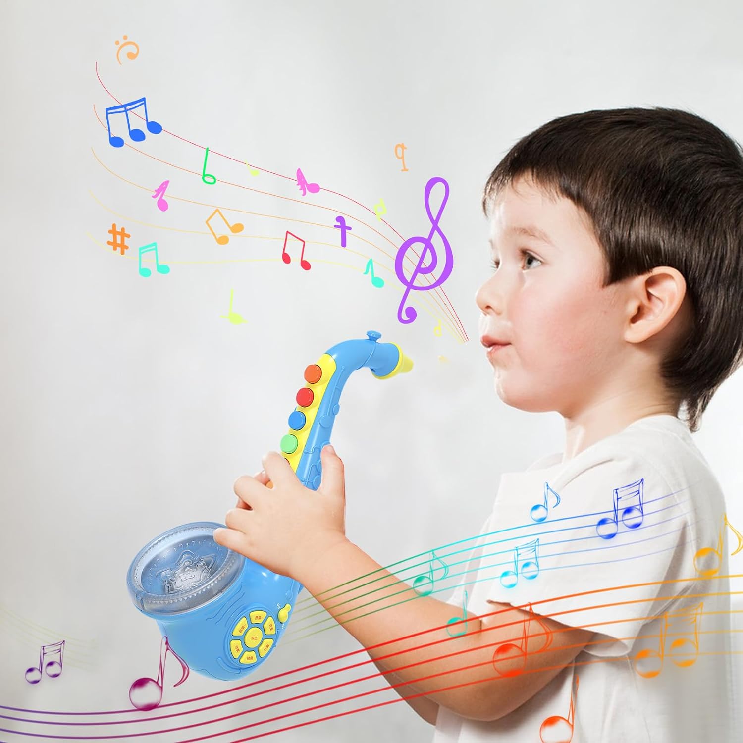 Sviluppo delle capacità motorie fini: il sassofono per bambini è un giocattolo versatile che promuove l'apprendimento e lo sviluppo del tuo bambino. Stringere e toccare lo strumento sviluppa le loro capacità motorie e la consapevolezza spaziale, creando un'esperienza divertente ed educativa che ispira le giovani menti Non facile da rompere: costruito con robusti muscoli addominali e un design leggero, questo sassofono per bambini consente ai bambini di provare la stessa eccitazione di un vero sassofono mentre imparano i fondamenti della musica Sviluppa il talento musicale dei bambini: con 8 tasti scala e 8 tasti funzione Questo sassofono per bambini scatena più combinazioni di note e suoni. I bambini possono sperimentare ritmi, creare le proprie melodie ed espandere il loro potenziale musicale. Vieni con suono e luce: i vivaci effetti di luce di questo sassofono per bambini, abbinati a musica emozionante, possono attirare e stimolare l'attenzione dei bambini, stimolare la loro curiosità e creare un piacevole ambiente di apprendimento. Buona scelta per gli amici: delizia amici e familiari con il suo design unico e il suo bellissimo aspetto; Questo sassofono per bambini è perfetto come regalo creativo per esprimere il tuo amore e la tua cura