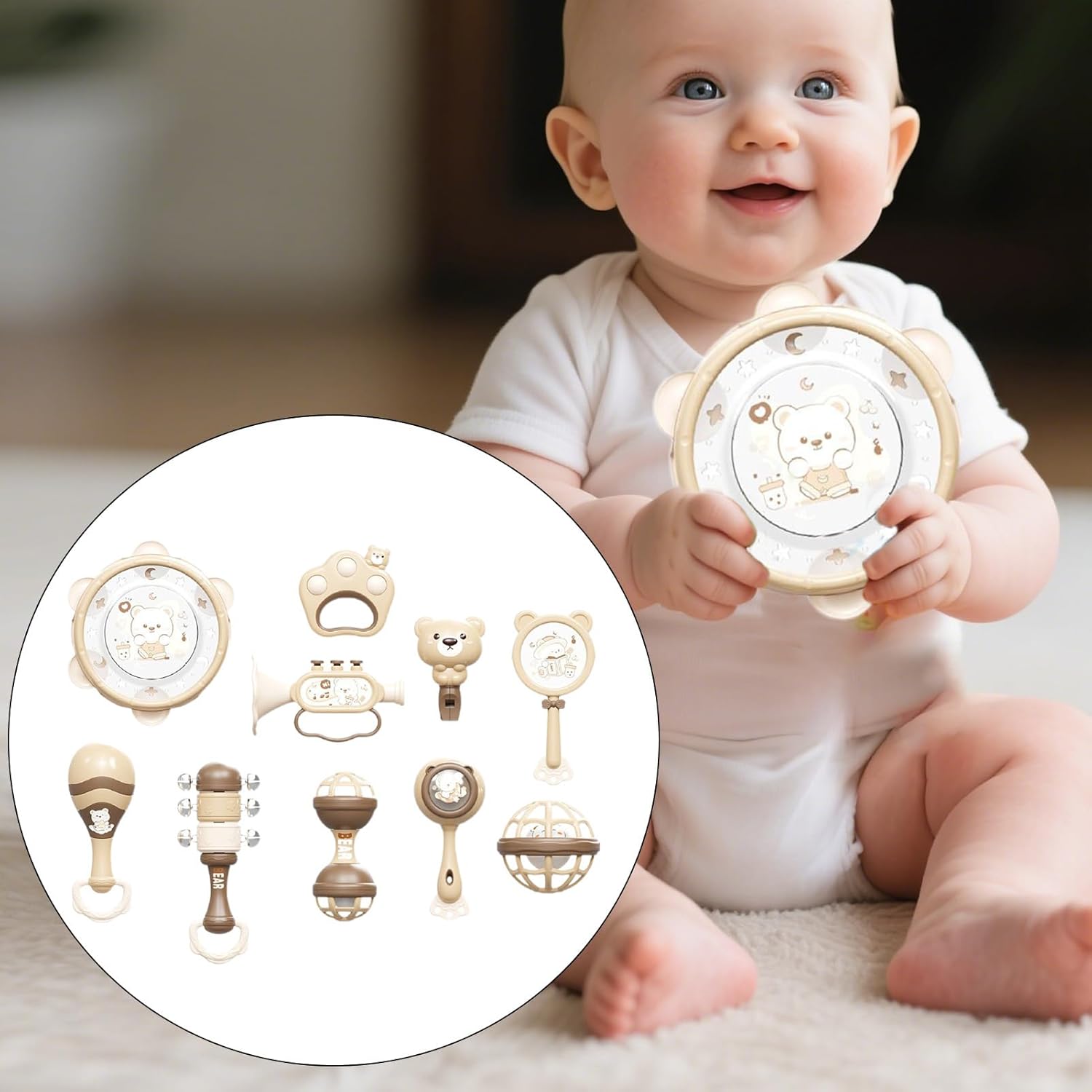 Costruttore di Emozioni: Rafforza i legami familiari con esperienze musicali interattive progettate per esplorare ritmi e godere momenti di apprendimento condiviso in un ambiente giocoso Materiale resistente: Prodotto in ABS di alta qualità, presenta bordi arrotondati anti-graffio e una struttura robusta ideale per l'uso quotidiano da parte dei bambini, mantenendo integrità nel Praticità Portatile: Unisce conservazione compatta e portabilità , garantendo riordino semplice e accesso immediato al divertimento musicale ovunque il bambino esplori Benefici Multifunzionali: Include 10 strumenti che aiutano sviluppo ritmico uditivo dei bambini. Funge da strumento per l'avvicinamento alla musica, stimolando naturalmente l'esplorazione sonora e potenziando il gioco sensoriale per piccoli apprendisti. Supporto Sviluppo Precoce: Progettati per aiutare lo sviluppo cerebrale, promuovono l'engagement multisensoriale migliorando le capacità uditive, tattili e visive dei bambini insieme alla coordinazione occhio-mano durante l'uso pratico
