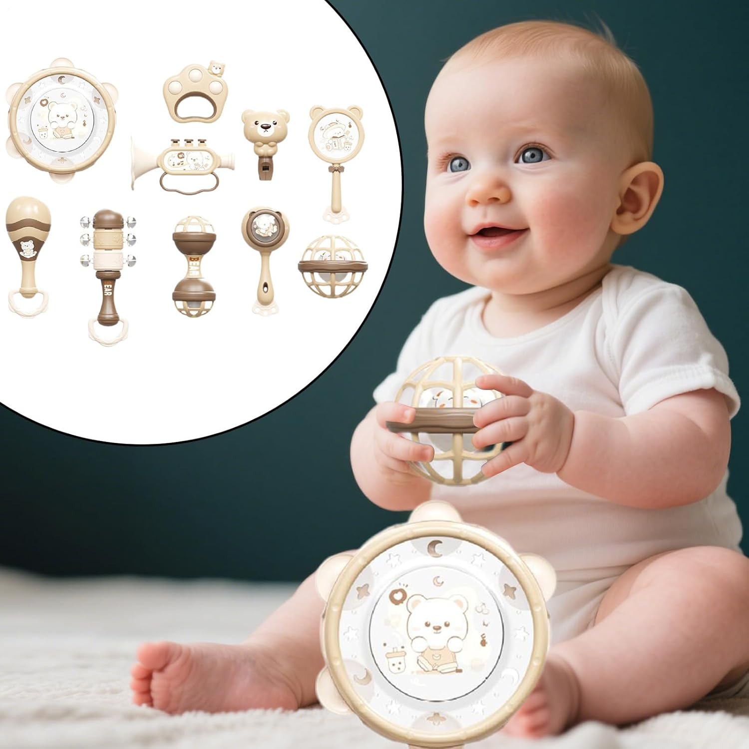 Gioco Musicale Interattivo: Attrae i bambini con esplorazione ritmica interattiva ed esperienze di apprendimento condivise che favoriscono legami familiari e connessioni emotive attraverso il gioco musicale in modo coinvolgente per tutta la famiglia Materiale di alta qualità: Realizzato in ABS premium, questi strumenti musicali per bambini garantiscono durabilità a lungo termine con bordi arrotondati che prevengono e assicurano una costruzione sicura per i più piccoli Concept : Offre di conservazione integrato con portabilità ottimizzata, permettendo trasporto senza e accesso organizzato a strumenti musicali coinvolgenti per l'infanzia Benefici Multifunzionali: Include 10 strumenti che aiutano sviluppo ritmico uditivo dei bambini. Funge da strumento per l'avvicinamento alla musica, stimolando naturalmente l'esplorazione sonora e potenziando il gioco sensoriale per piccoli apprendisti. Apprendimento Multisensoriale: Questi strumenti coinvolgono udito, e vista per favorire lo sviluppo cerebrale infantile, creando solide per l'apprendimento precoce e potenziando efficacemente la coordinazione motoria