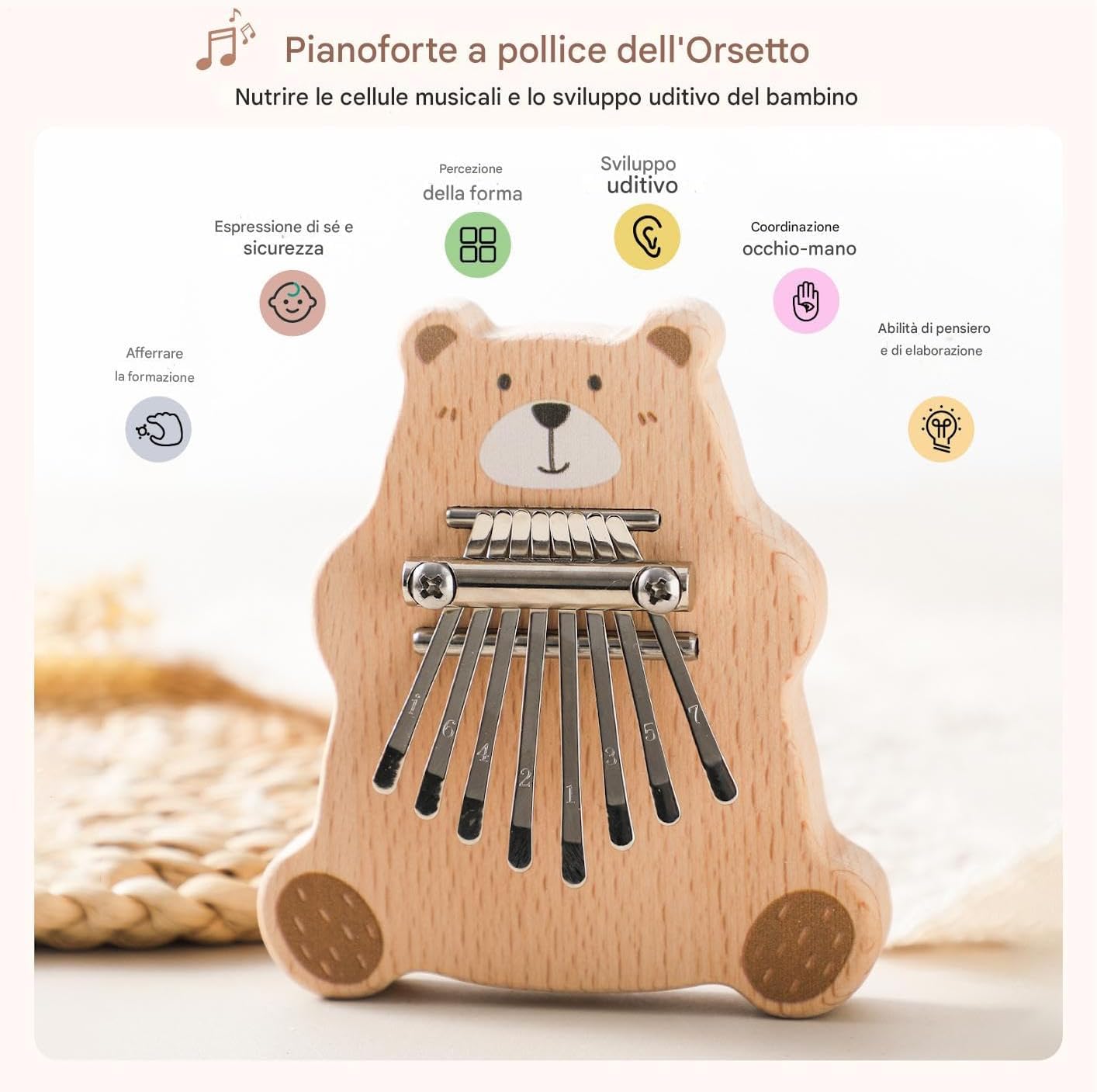 Piano delicato di : con 8 tasti per la creazione di melodie rilassanti, questo pianoforte portatile trasuda atmosfere pacifiche, simile a una deliziosa esperienza di scatola musicale Look delicato: ispira l'immaginazione dei bambini con questo pianoforte in un adorabile design 'orso, combinando musica, tocco e elementi visivi, migliorando le capacità cognitive Carriage facile: pianoforte facile da trasportare con un design portatile e compatto; L'accompagnamento per le avventure all'aperto e i momenti musicali quotidiani Uso a lungo termine: realizzato a mano in legno robusto con bordi e angoli lisci e piatti, questo pianoforte è costruito per resistere all'usura, garantendo una performance musicale duratura Ottimo per il donazione presente: ideale per principianti e professionisti, questo pianoforte è un regalo unico e ponderato per amici e familiari