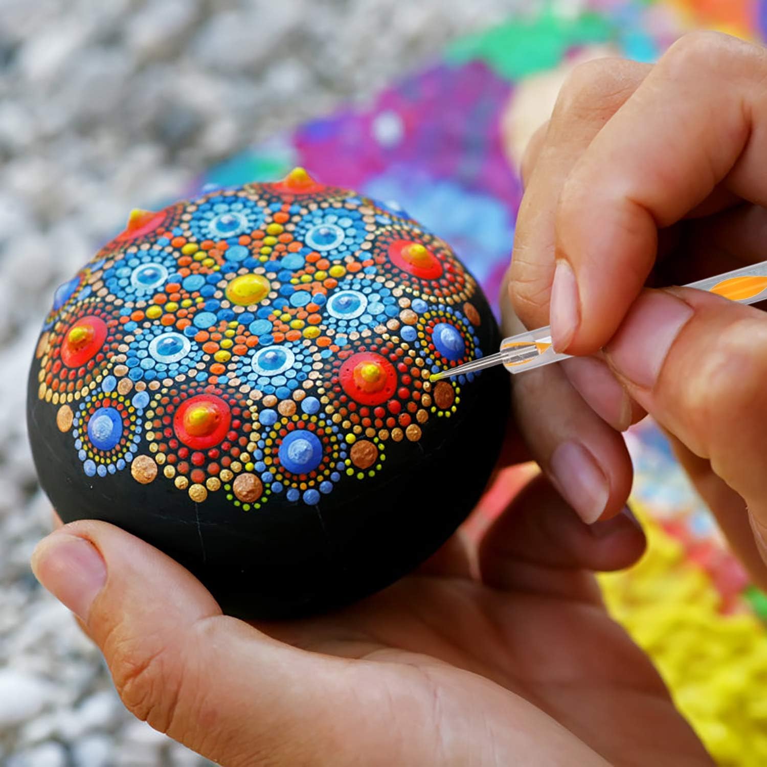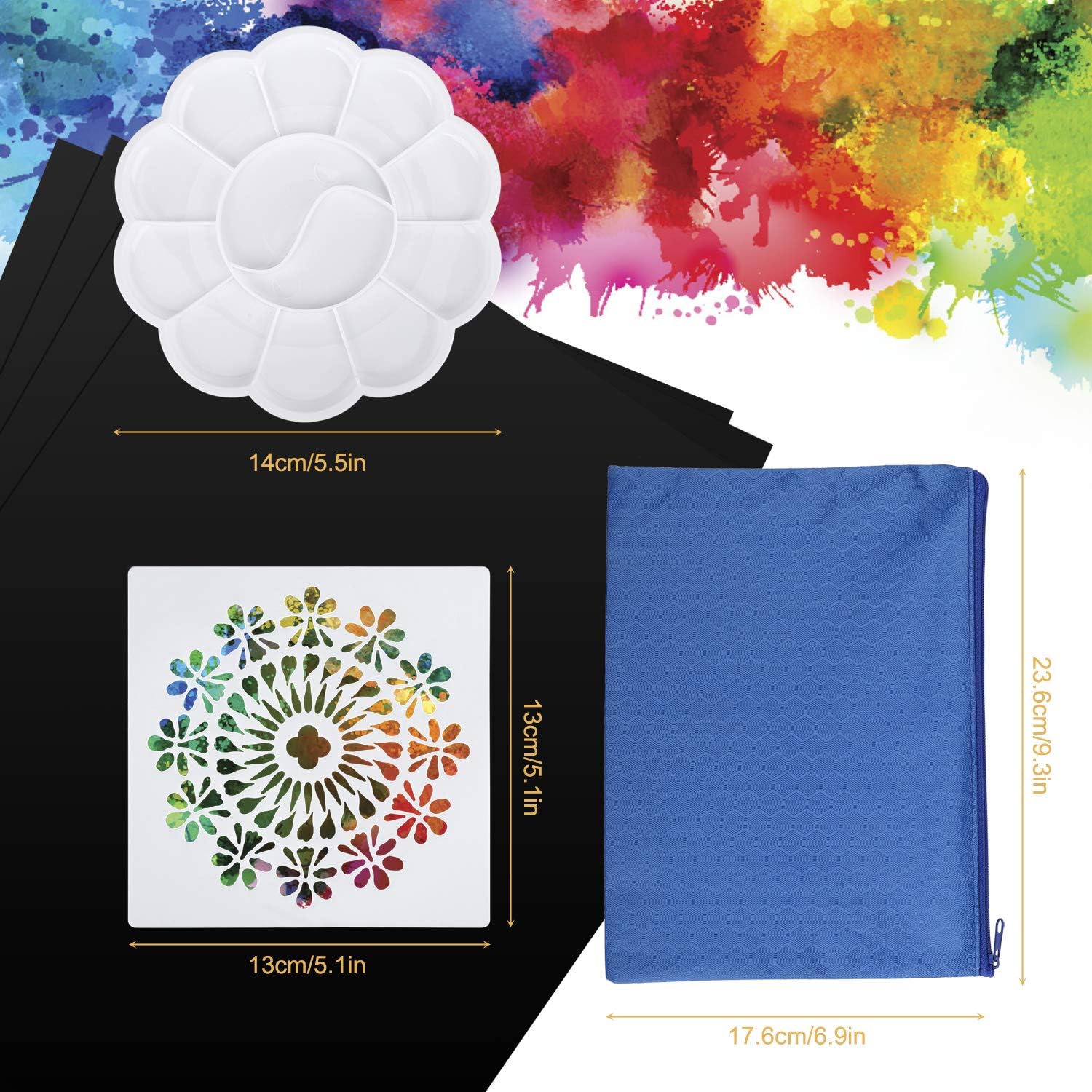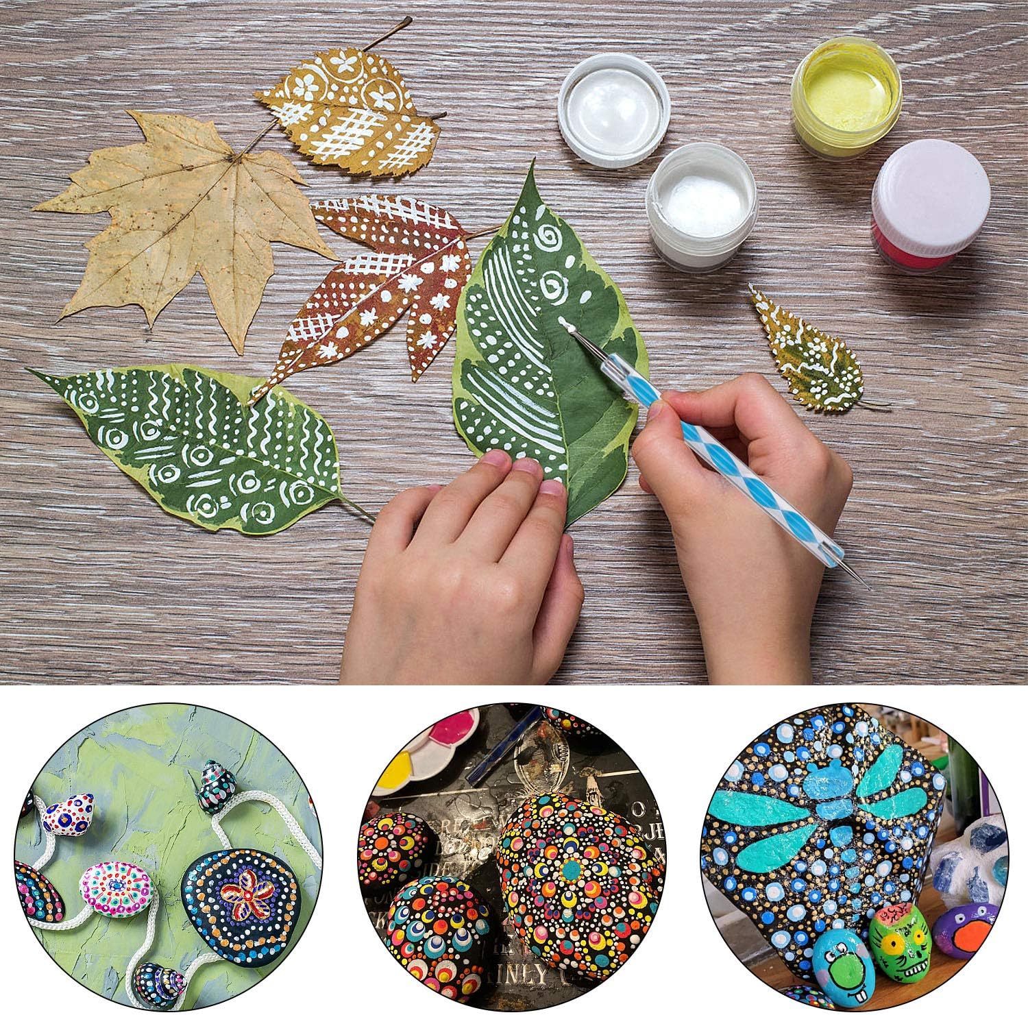 Strumenti per punteggiare mandala: la confezione include 4 penne a sfera, 5 penne a doppia faccia, 8 bastoncini acrilici, 1 stencil mandala e 1 tavolozza di colori. C'è una borsa da trasporto blu con cerniera per riporre facilmente tutti gli strumenti in un'unica borsa. Materiali di alta qualità: l'asta di puntamento e le penne sono realizzate in plastica acrilica, sono lisce e confortevoli senza spigoli vivi; La penna a sfera in acciaio inossidabile può resistere allo sporco, alla ruggine e all'espansione. Il vassoio per vernice in plastica PVC e lo stencil mandala sono atossici e sicuri. Facile da usare e riutilizzabile: disegna un contorno del mandala con gli stencil di plastica, quindi usa lo strumento di punteggiatura per creare il tuo motivo mandala preferito. Gli strumenti per punteggiare in acciaio inossidabile e lo stilo a sfera sono facili da pulire con un panno umido o un tovagliolo di carta. Ampia gamma di utilizzo: questi stencil mandala sono ideali per progetti artigianali e fai-da-te che possono essere applicati sulla maggior parte delle superfici piane tra cui rocce, mobili, legno, tessuti, metallo, tela, pareti, ecc. Ottimo regalo: il kit Mandala Dotting può essere un regalo ideale per l'ingresso. Con i nostri strumenti di pittura a punti, tutti possono essere artisti, puoi creare questi disegni meravigliosi e unici. Può anche essere usato come esercizio di meditazione ed è uno strumento di terapia o semplicemente di rilassamento.