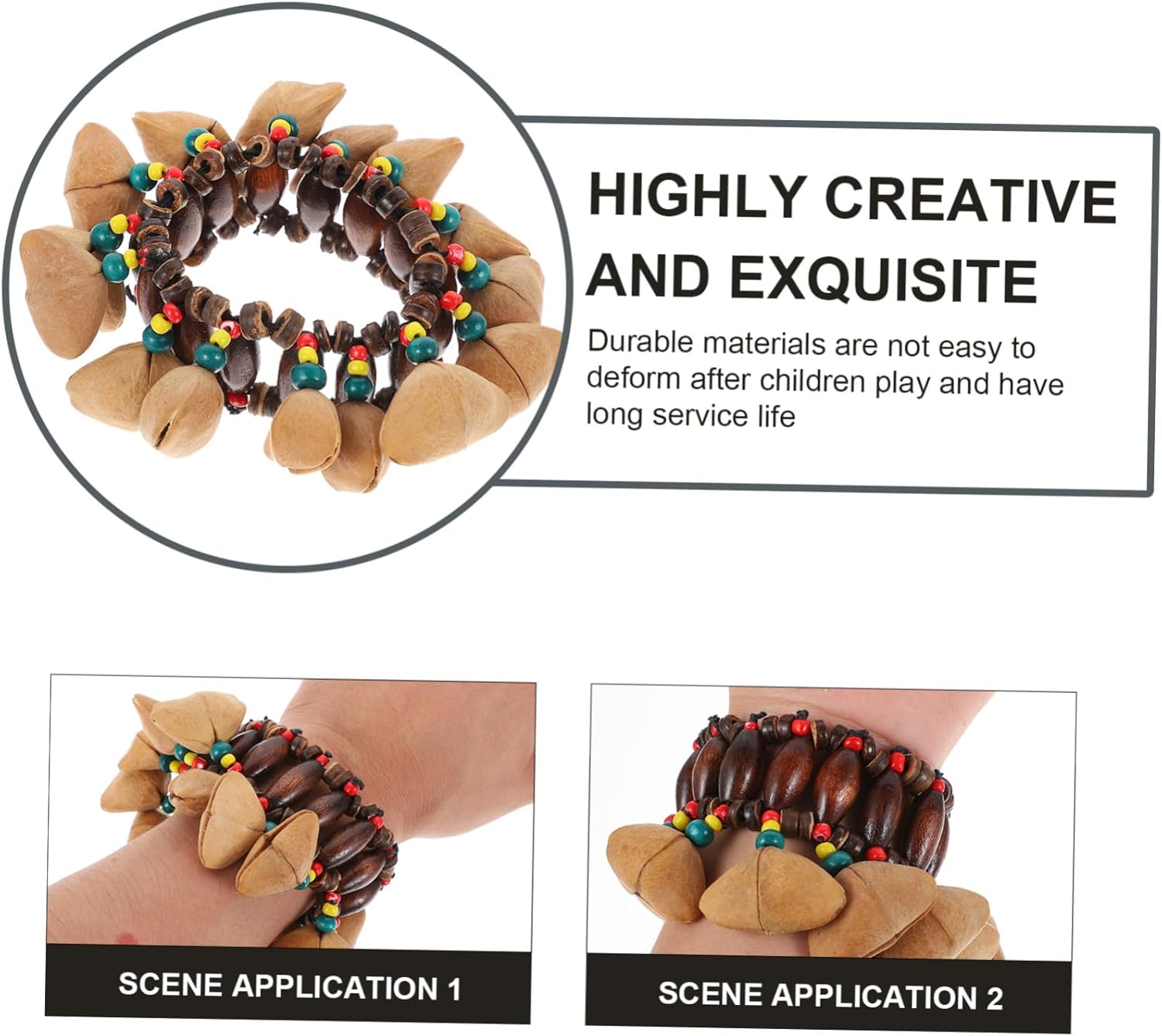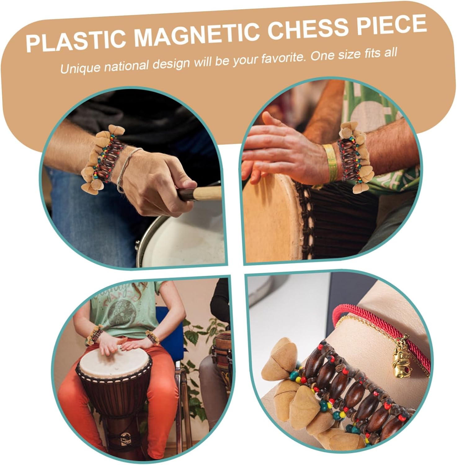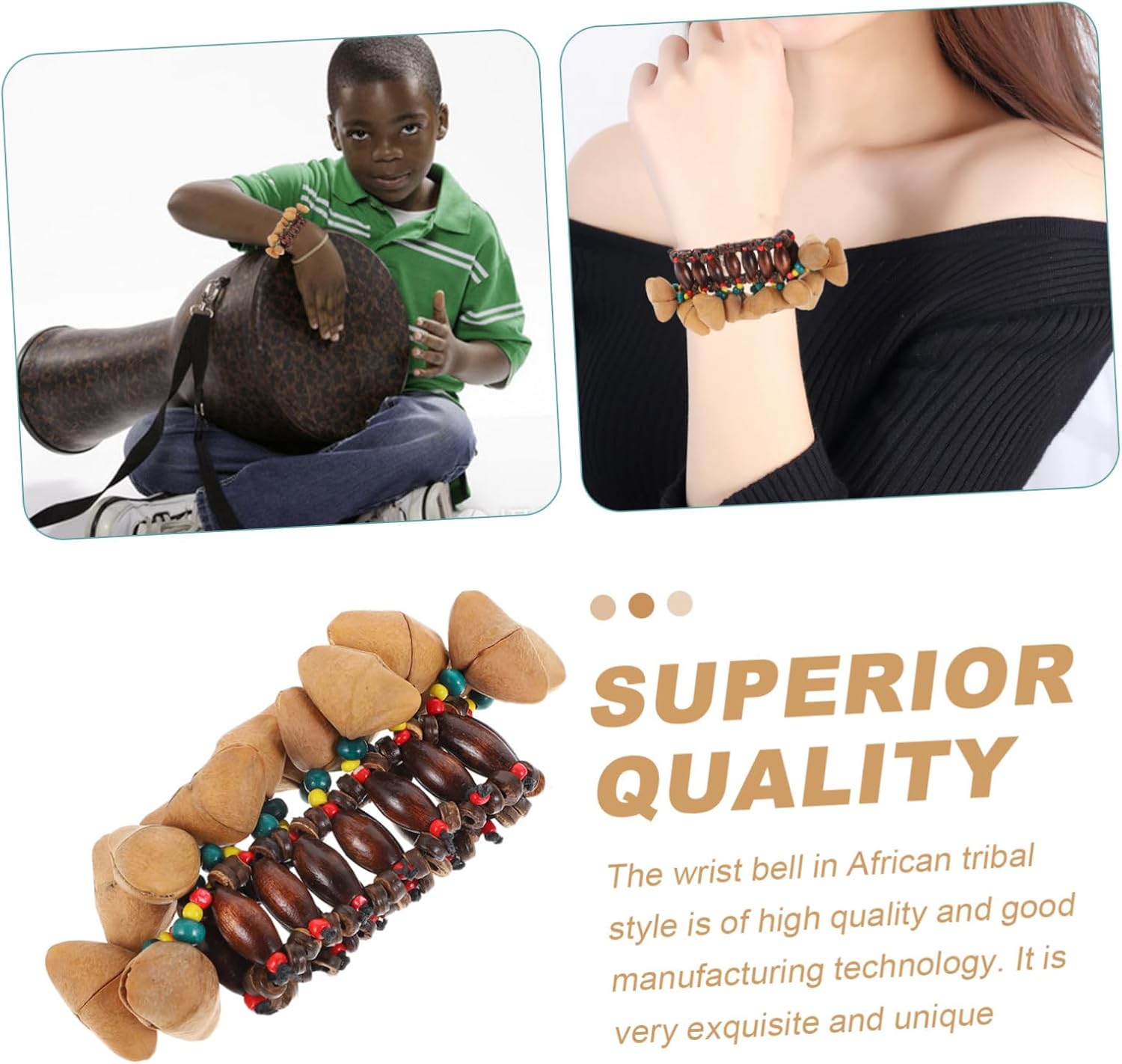 Bracciale - la struttura è semplice ed è molto comodo da indossare e da togliere, tamburo da polso, braccialetto a campana, tamburo africano - usa il campanello per produrre un suono chiaro che crea un'atmosfera allegra, strumento a percussione con campana africana - pregevole fattura e bell'aspetto ne garantiscono popolarità e funzionalità, campana africana, tamburo giocattolo africano - realizzato in materiale resistente e pratico, campana con braccialetto a conchiglia - Suono davvero bello per accompagnare il tamburo, design etnico speciale sarà il tuo preferito, campanello