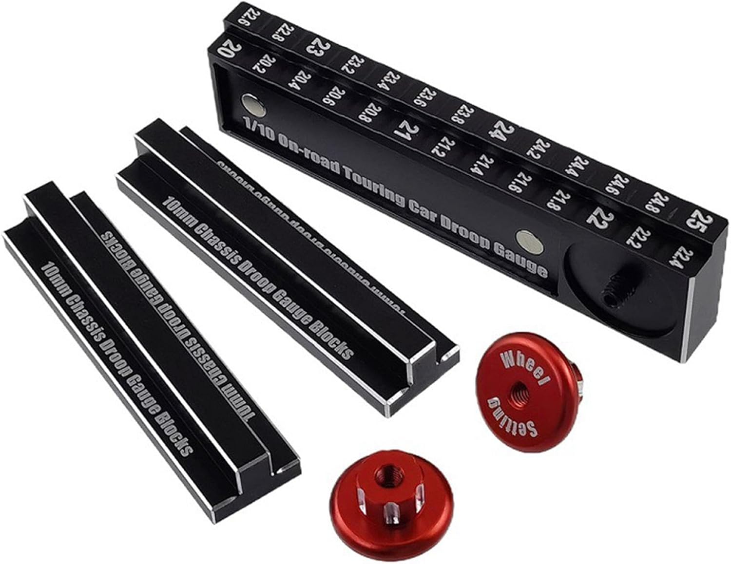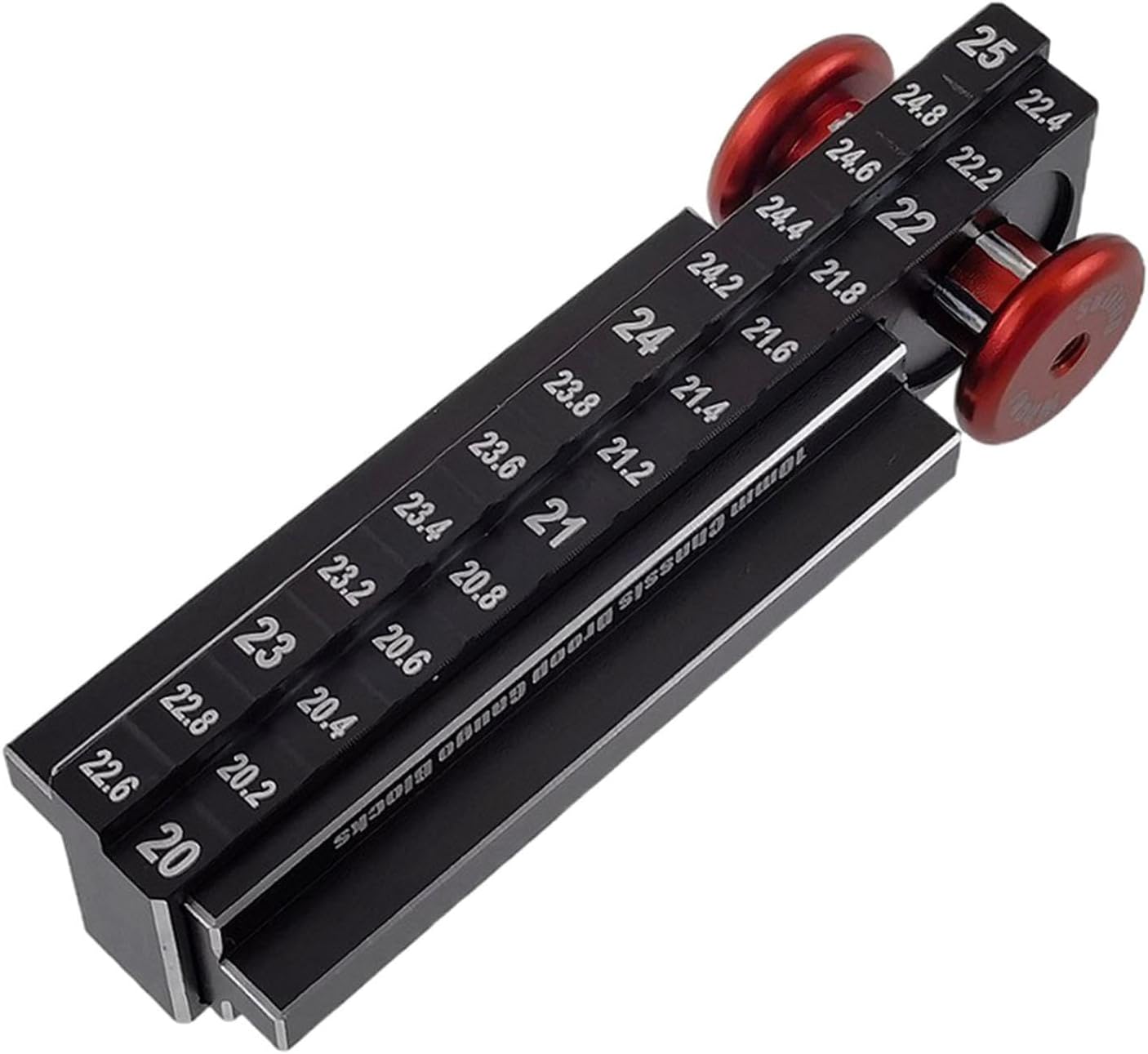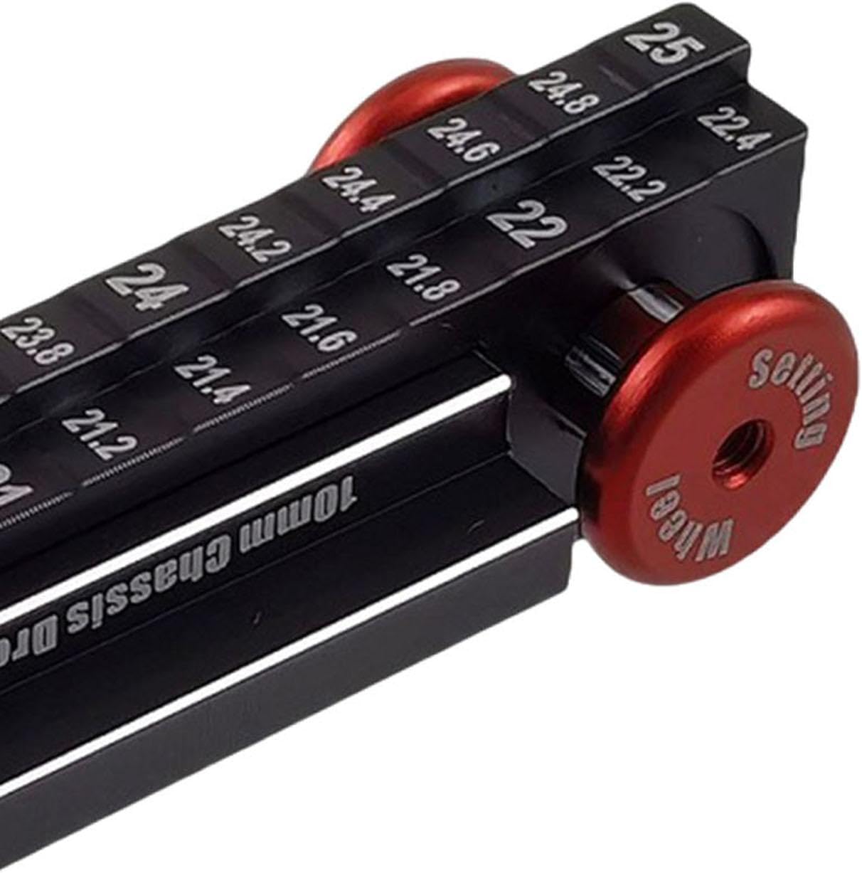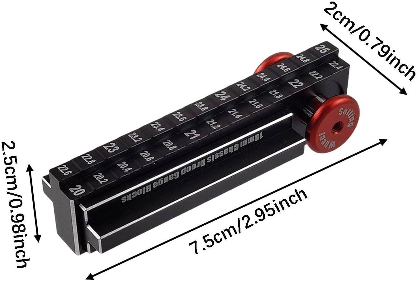 Regolazione precisa del telaio: consente regolazioni precise all'altezza del telaio e all'allineamento dell'asse per prestazioni e manovrabilità ottimali dell'auto RC Robusta struttura in lega di alluminio: Realizzato in lega di alluminio ad alta resistenza che garantisce durata pur rimanendo leggero per una facile movimentazione Design compatto e portatile: Misurando 7,5 x 2 x 2,5 cm, questo strumento ha una dimensione comoda per un facile trasporto alle gare e alle sessioni di manutenzione Funzionamento intuitivo: Facile da usare per regolare il telaio e gli assi delle tue auto telecomandate. Adatto a principianti e hobbisti esperti,Scala 1:10: appositamente progettato per l'uso con modellini di auto telecomandate in scala 1:10, che lo rendono uno strumento essenziale per la corretta manutenzione del veicolo.