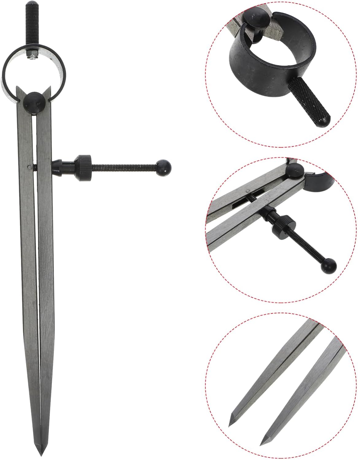 Strumento per disegnare cerchi: lo strumento presenta misurazioni e contrassegni precisi, che lo rendono adatto per attività di lavorazione del legno e di disegno che richiedono precisione e comoda bussola Calibri per marcatura: che tu sia un professionista o un hobbista, questo strumento è una preziosa aggiunta tuo kit di strumenti per tutte le tue esigenze di misurazione e marcatura, bussola in pelle Scriba in metallo: questa bussola è adatta sia ai professionisti che agli appassionati del fai da te e rivolge a un'ampia di utenti con diversi livelli di abilità ed esigenze, calibri di spaziatura Bussola in metallo: il raggio garantisce misurazioni accurate, consentendo marcature e tagli precisi, bussola a matita Bussola in pelle multifunzione: la scala di facile lettura e il meccanismo di regolazione fluido ne semplificano l'utilizzo e la regolazione in base alla misurazione desiderata, bussola a molla