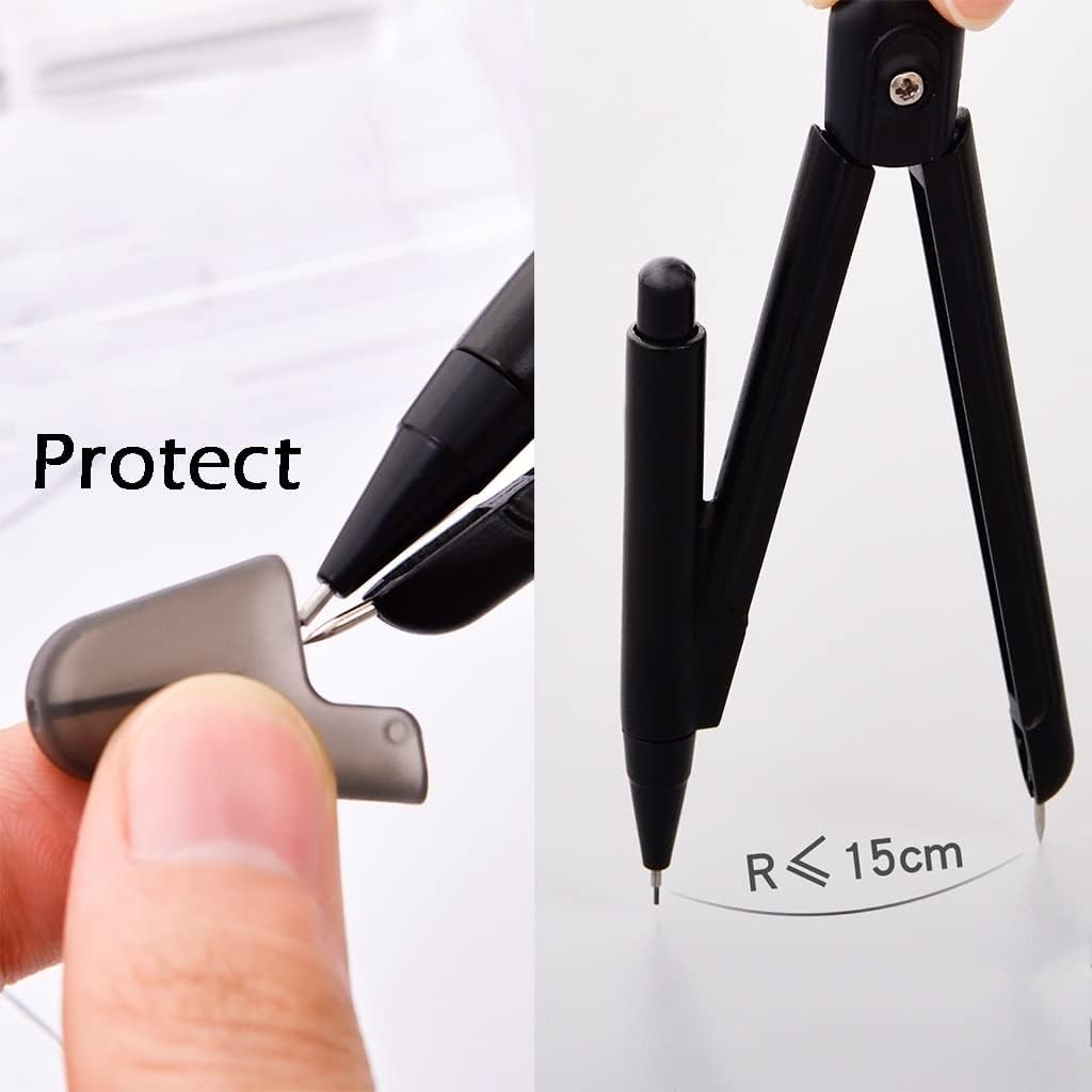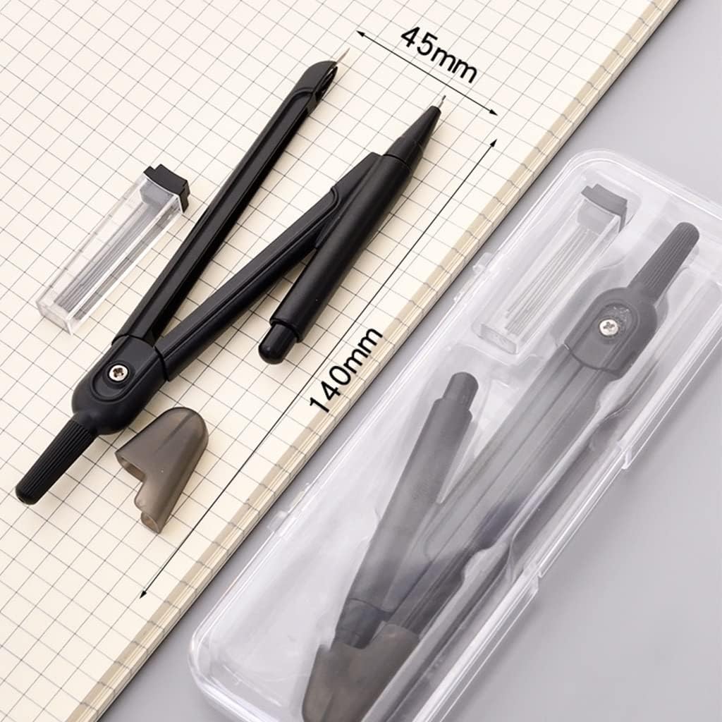 Ottimo per matematica, geometria, arte, disegno e misurazione, può essere utilizzato a scuola, in ufficio, a casa o in viaggio. Il pacchetto include: 1 bussola, 1 confezione di matite meccaniche di piombo. Diametro massimo: 11,8 / 30 cm. Compass impostato in un caso riutilizzabile per una facile portabilità e archiviazione. Utilizzato in classi di geometria, redazione, disegni architettonici, progettazione ingegneristica, tra cui progettazione meccanica e costruzione. Perfetto per l'uso a scuola, la lavorazione del legno o a casa.