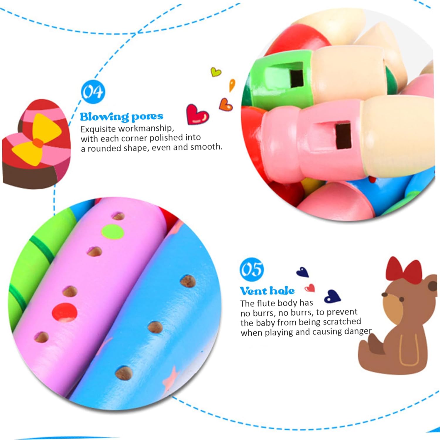 Materiali sicuri e non tossici: realizzato in legno naturale con vernice di alta qualità, il flauto è inodore, liscio e testato per soddisfare gli standard di sicurezza dell'esportazione per un gioco senza preoccupazioni. Educazione musicale precoce: progettato per bambini dai 3 anni in su, questo registratore introduce le basi del suono, del ritmo e della melodia, incoraggiando lo sviluppo musicale precoce. Sviluppo delle abilità motorie fini: il design a 6 fori aiuta i bambini a coordinare le dita e la respirazione, migliorando la coordinazione occhio-mano e la destrezza delle dita durante il gioco. Stimola più sensi: con colori vivaci e toni chiari, questo strumento coinvolge i sensi visivi, uditivi e tattili, promuovendo l'espressione creativa e la crescita sensoriale. Compatto, leggero e portatile: lungo circa 8 pollici, è facile da tenere in mano e da giocare per le mani piccole, perfetto per aule, attività familiari o intrattenimento in viaggio.
