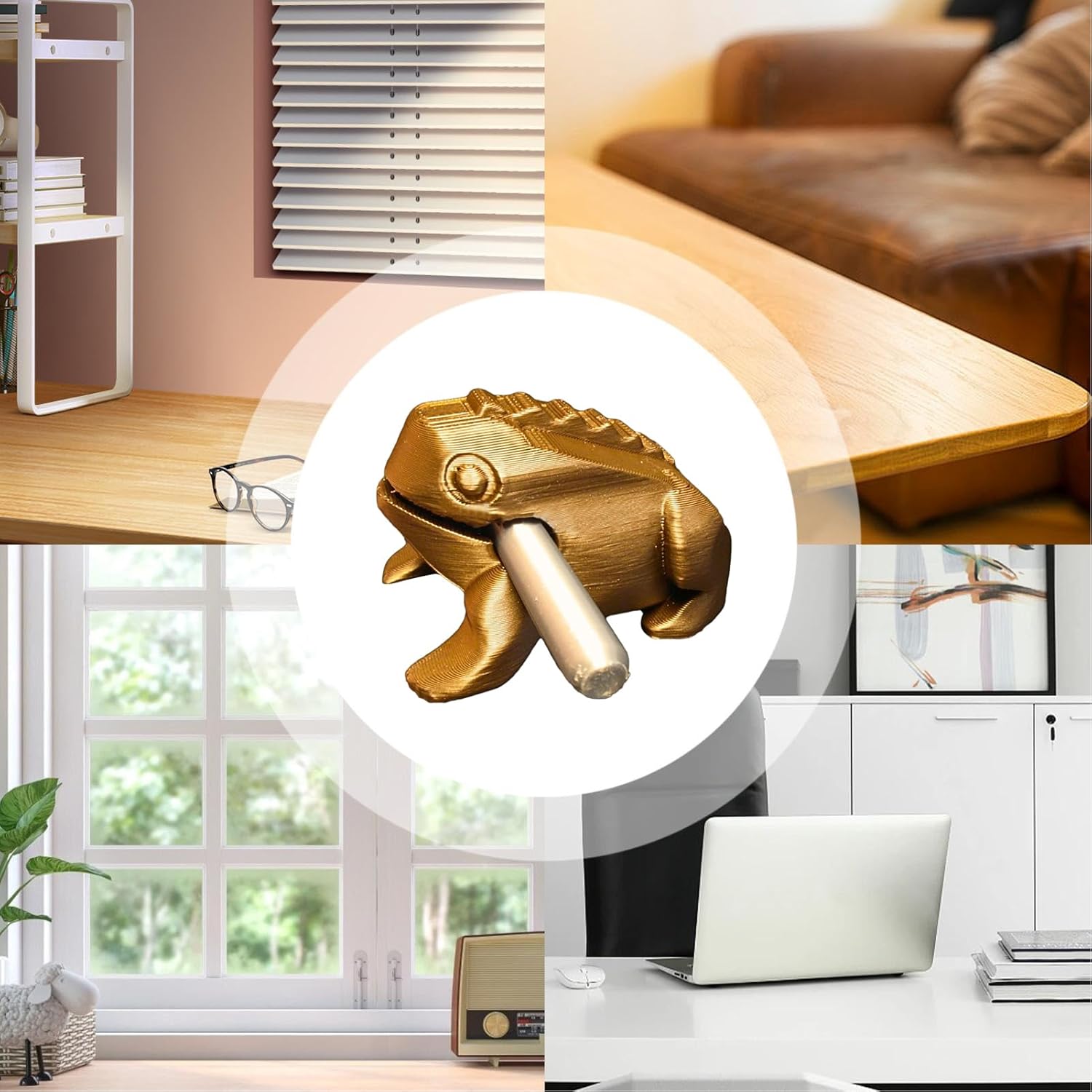 Arredamento musicale affascinante: Strumento a percussione con forma a rana 3D che valorizza l'atmosfera dello spazio aggiungendo espressioni vivide, per il gioco creativo e per ambienti d'arredamento domestico vivaci e allegri Design ottimizzato per spazi: Caratterizzato da un design compatto ma adattabile, è ideale per ambienti vari tra cui cortili, giardini o terrazzi, offrendo appeal visivo e divertimento interattivo adatto a case, appartamenti, camere da letto e balconi senza ingombri Costruzione Liscia e Robusta: Realizzati con un telaio robusto, questi strumenti a percussione sono progettati per resistere all'usura, fornendo durabilità a lungo termine e superfici levigate che renogni esperienza di esecuzione confortevole Suono Chiaro e Nitido: Produce note cristalline che replicano suoni ambientali naturali, offrendo un modo coinvolgente per rilassarsi e ridurre lo stress, adatto per studi yoga, ambienti domestici o sessioni musicali informali con amici Scelta Eccellente per Regali: Il kit di percussioni musicali rappresenta un'opzione pregevole per riunioni familiari ed eventi sociali, consentendo di creare suoni armoniosi che aumentano relax e gioia. È per meditazione, compleanni, feste di casa, vacanze e altro, rendendolo un regalo premuroso per , amici o colleghi. Questo strumento a percussione favorisce momenti di condivisione e è ideale come per occasioni speciali.