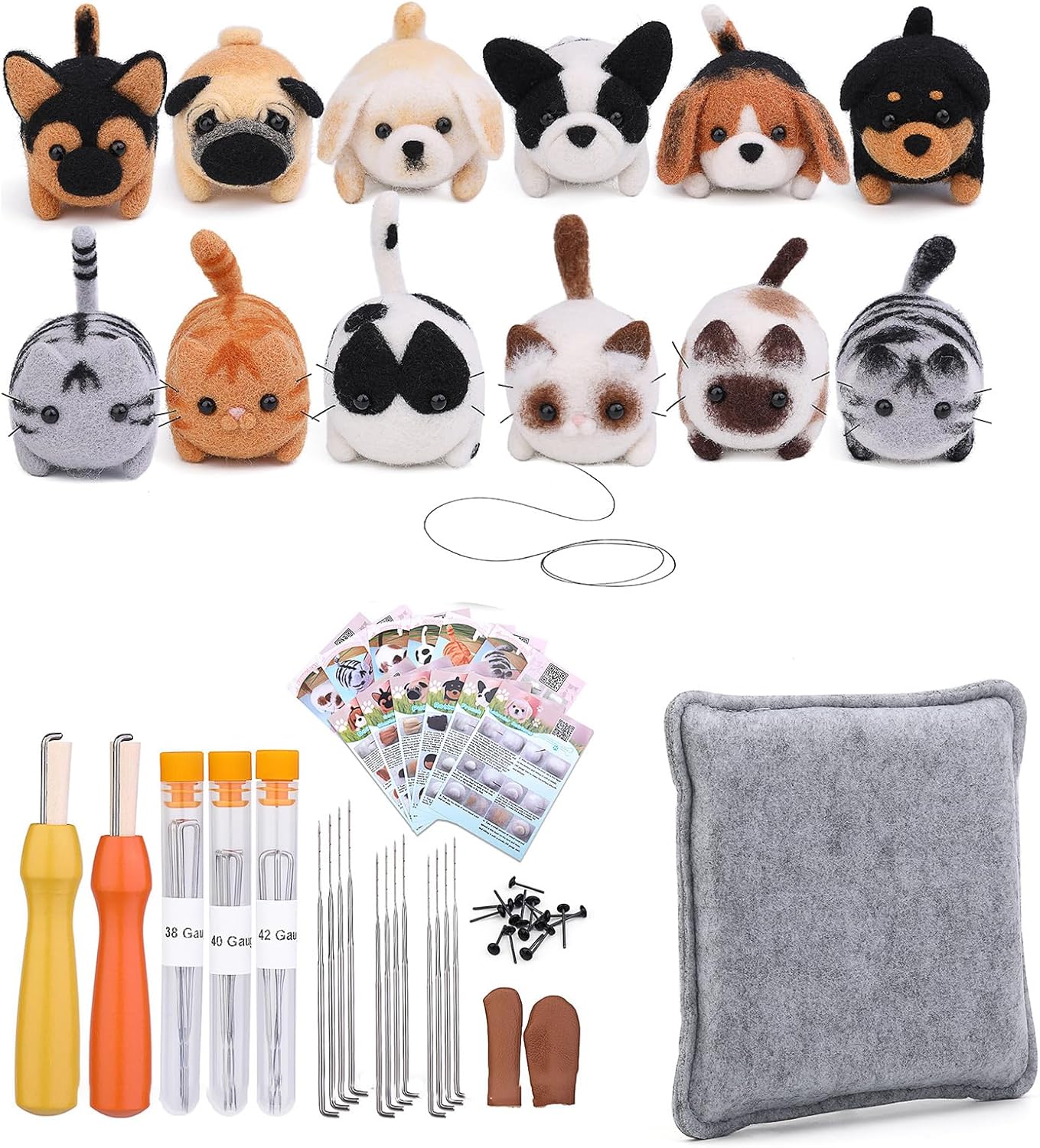 È possibile realizzare decorazioni per giocattoli animali in feltro e con il tuo amico o la tua famiglia. Regalo di festa per hobbisti esperti, principianti per Natale, compleanno, Ringraziamento e festival Il set per infeltrimento con aghi per animali contiene: ago per infeltrimento calibro 38, ago per infeltrimento calibro 40, ago per infeltrimento calibro 42 (4 pezzi per dimensione, con tubo per ago), filato in lana colorata, tampone per infeltrimento, 2 manici in legno, 6 diverse istruzioni, paio di culle per dita, occhio Le istruzioni passo passo sono semplici e facili da seguire con le immagini per guidarti. Adatto per famiglie, amici o principianti e chiunque ami l'infeltrimento ad ago o l'infeltrimento. L'ago per infeltrimento verticale per quanto possibile, evitare di inserire l'ago nel tampone obliquamente Ago per infeltrimento di diverse dimensioni, è possibile utilizzare diversi aghi in base alle proprie esigenze. La nostra fornitura di infeltrimento in lana è realizzata in metallo e legno, punta affilata dell'ago, buona durata, non facile da rompere, resistente alla corrosione e resiste all'uso quotidiano Ideale per progetti di infeltrimento ad ago, giocattoli per infeltrimento di animali, pittura di lana, creazione di gioielli, creazione di sapone, portachiavi, decorazioni per ciondoli per borse, regalo di Natale, regalo di compleanno, riempitivi per calze di Natale e così via