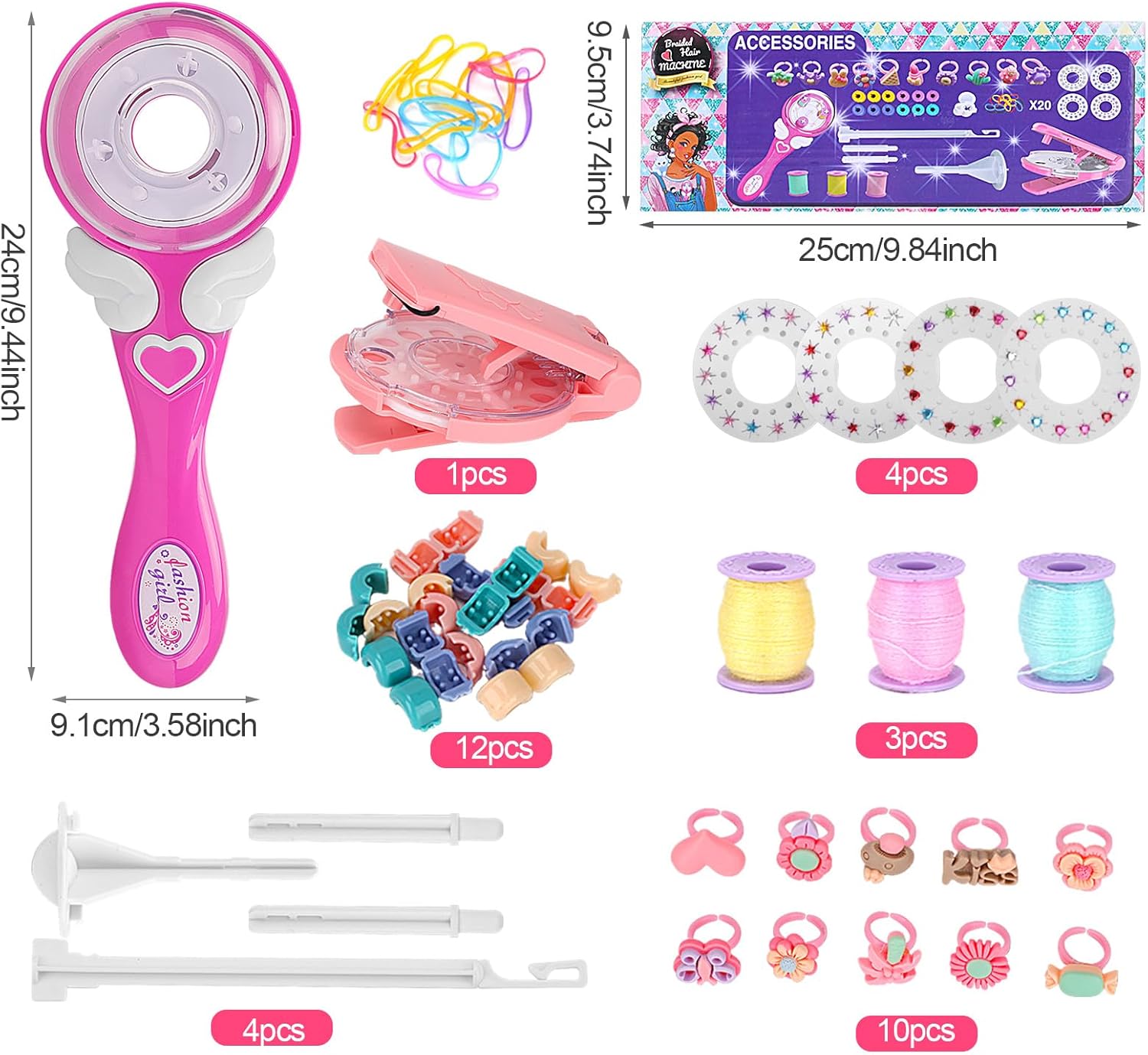 Sicurezza e alta qualità: realizzati con materiali di protezione ambientale di alta qualità, facili, non tossici e insapori. Questa acconciatura è molto adatta a lavoratori diversi. Hair Diamond Machine: incluso un kit completo per la decorazione dei capelli dei bambini. Il set contiene un set di 1 * capelli, 1 * ricci, 3 * linea, 10 * anello, 10 * parrucchiere, strumento ausiliario, macchina per parrucchiere, 20 * elastico. Bellissimo packaging: rosa all'esterno, con elementi come ali dell'amore, manici lucidi e bellissime scatole trasparenti. (Batterie non incluse) La treccia per capelli è automaticamente adatta ai bambini: facile da usare, un nuovo ed elegante strumento in vimini. Puoi creare la tua acconciatura attraverso diversi semplici passaggi, in modo completamente automatico e ancora più conveniente. Regali speciali per ragazze: questo accessorio per capelli è adatto a bambini dai 4 ai 12 anni. Questi diamanti colorati possono essere usati ripetutamente dalle ragazze e acquistare questa acconciatura con strass, in modo che la ragazza si diverta in modo creativo.